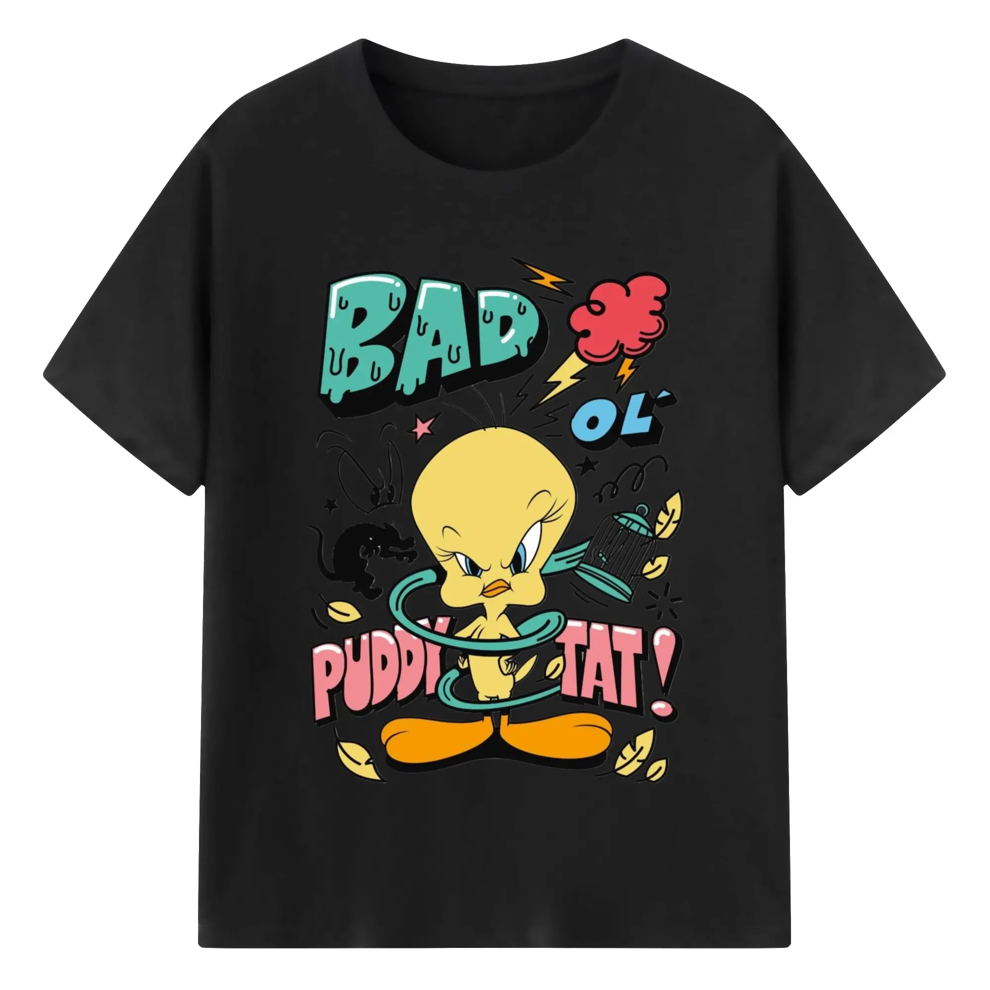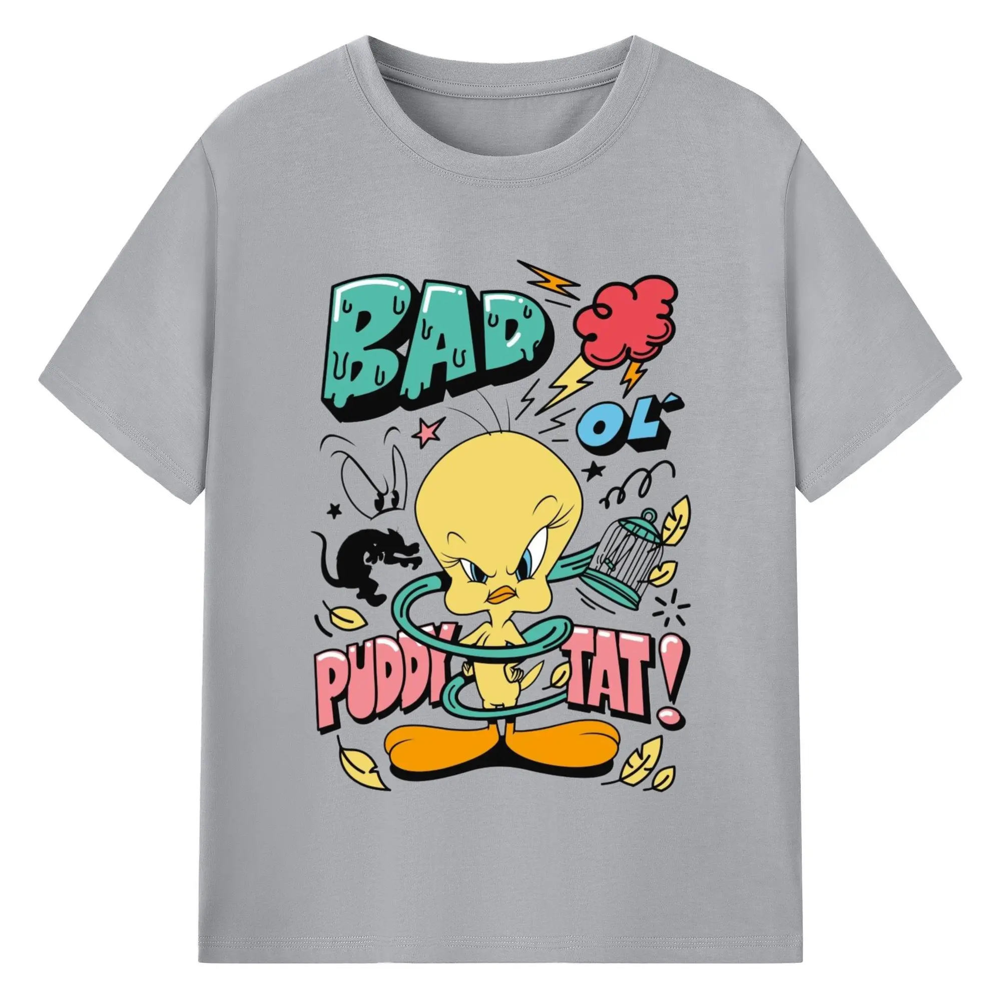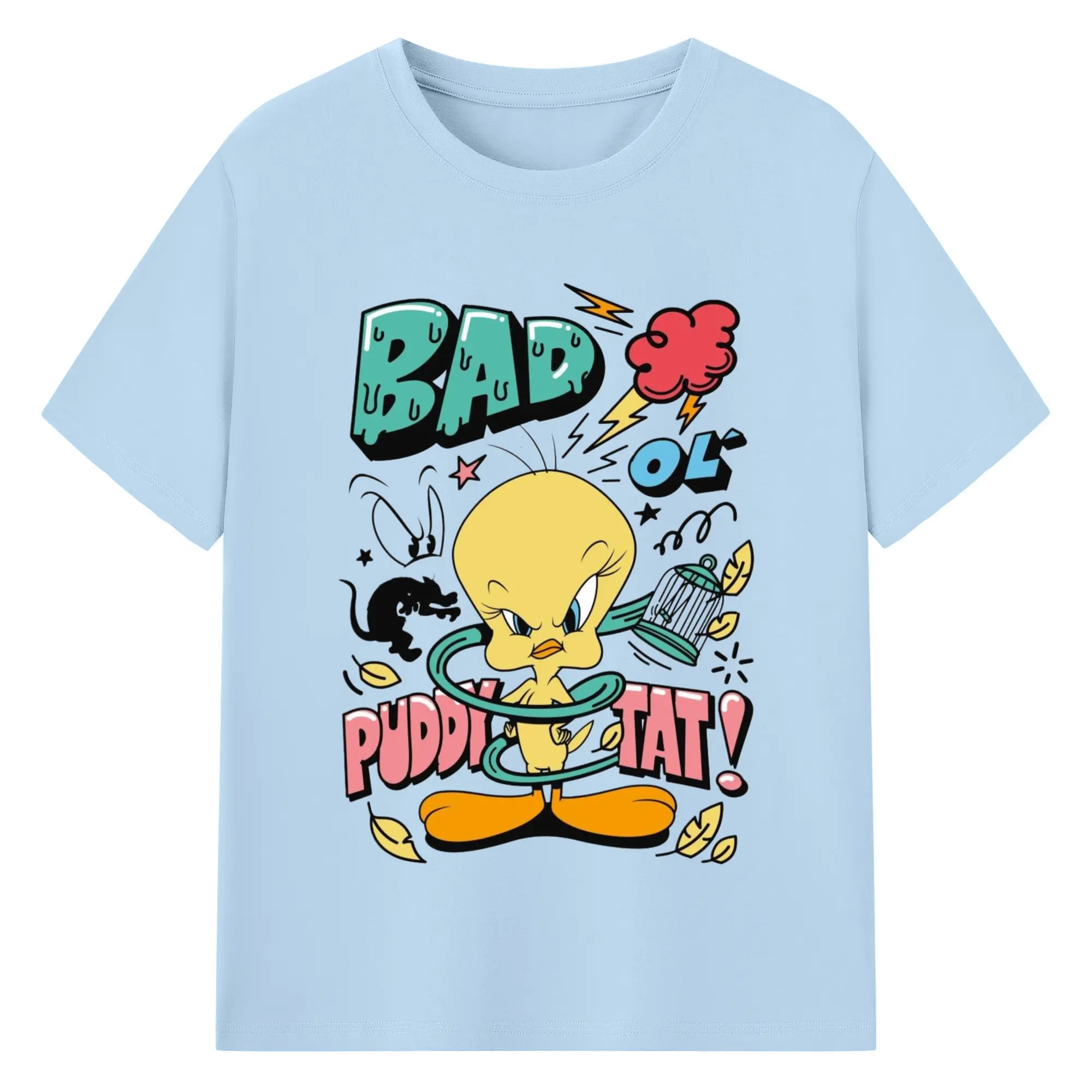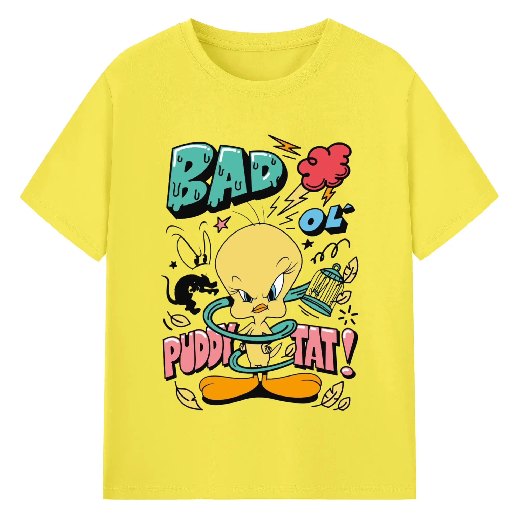 Tweety Bird cartoon graphic t-shirt - 180g Cotton T-Shirt With Front Heat Transfer Print – Soft, Lightweight, Fitted Design – Comfortable Casual Wear For Sports & Everyday Use