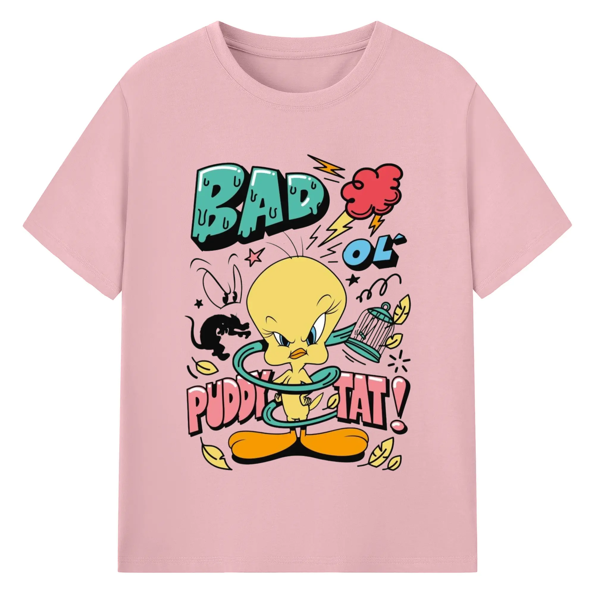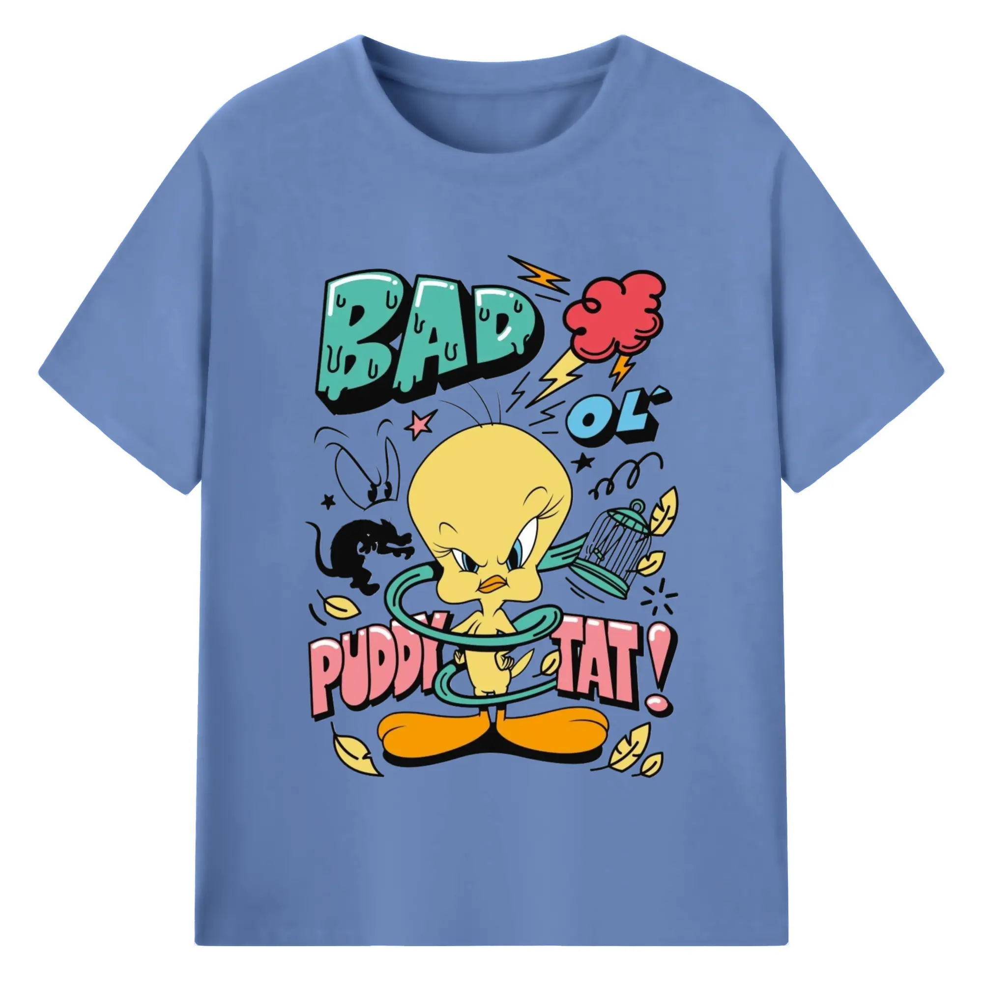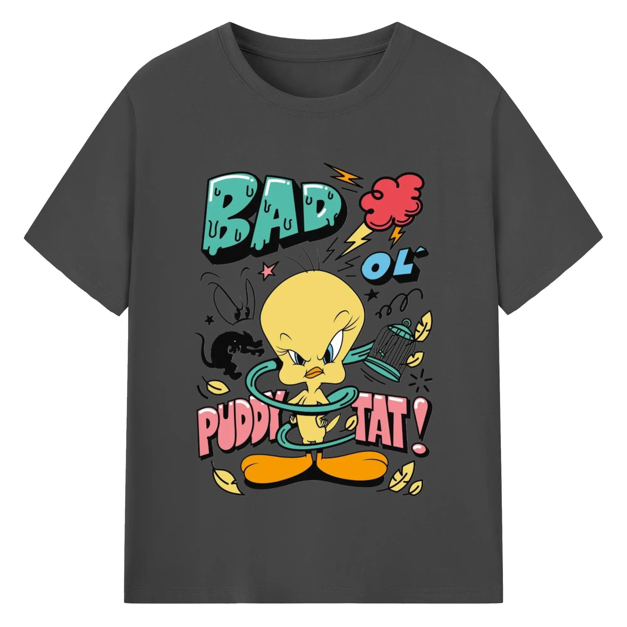 Tweety Bird cartoon graphic t-shirt - 180g Cotton T-Shirt With Front Heat Transfer Print – Soft, Lightweight, Fitted Design – Comfortable Casual Wear For Sports & Everyday Use