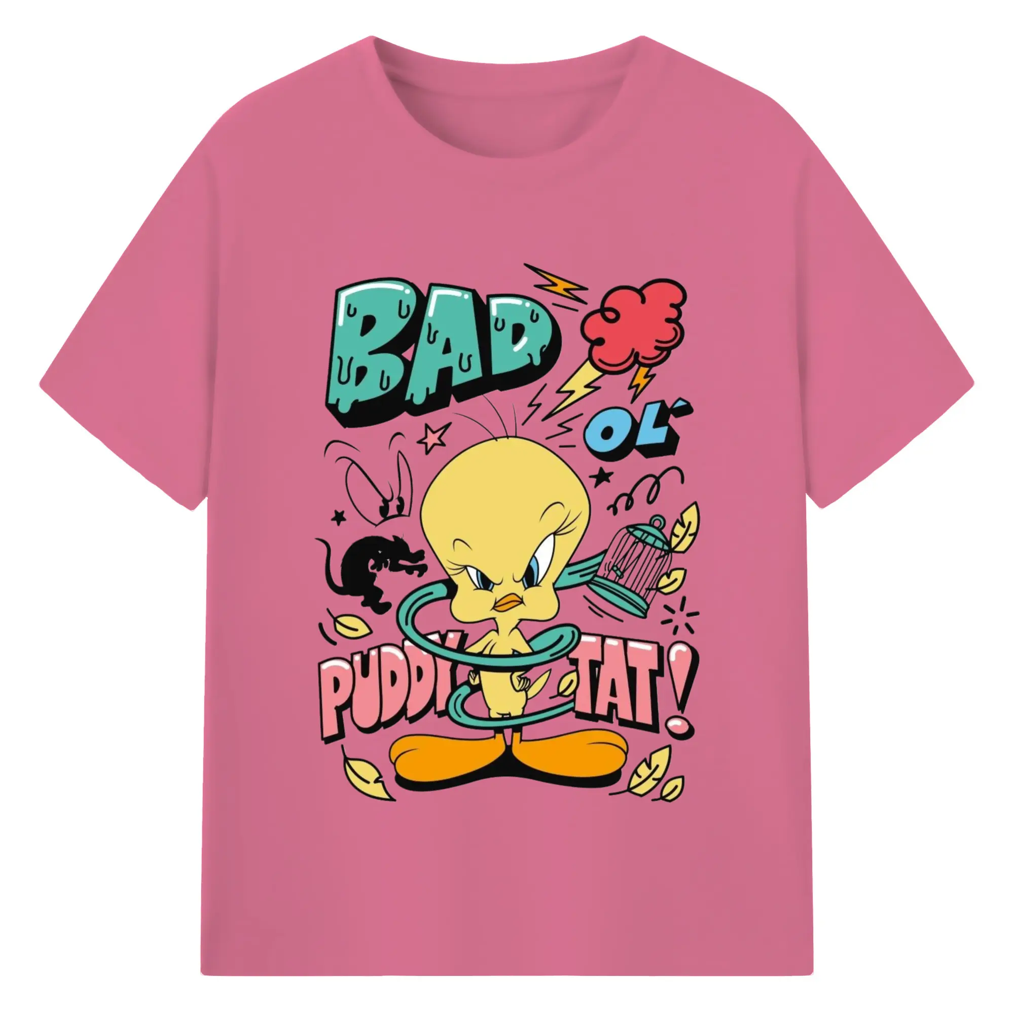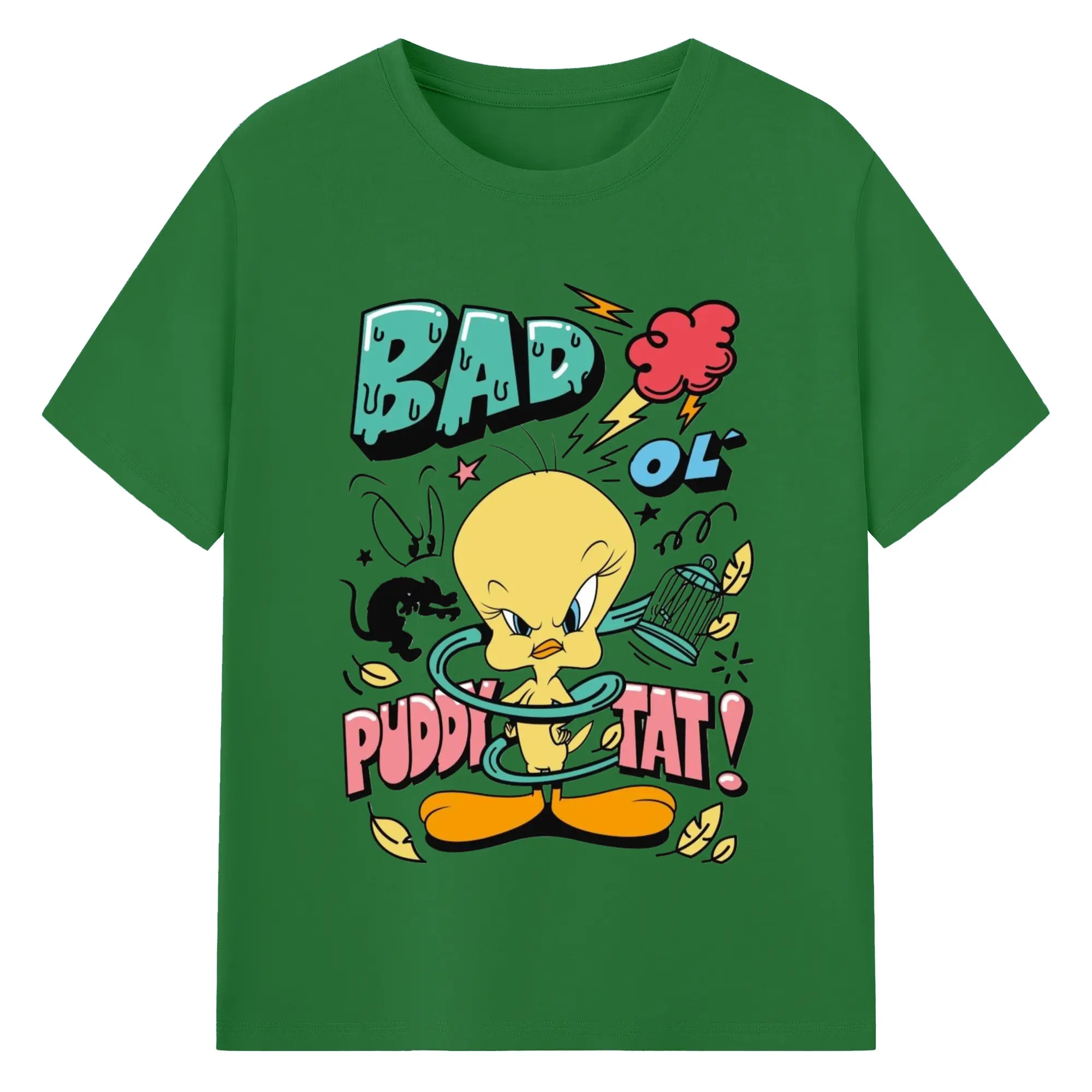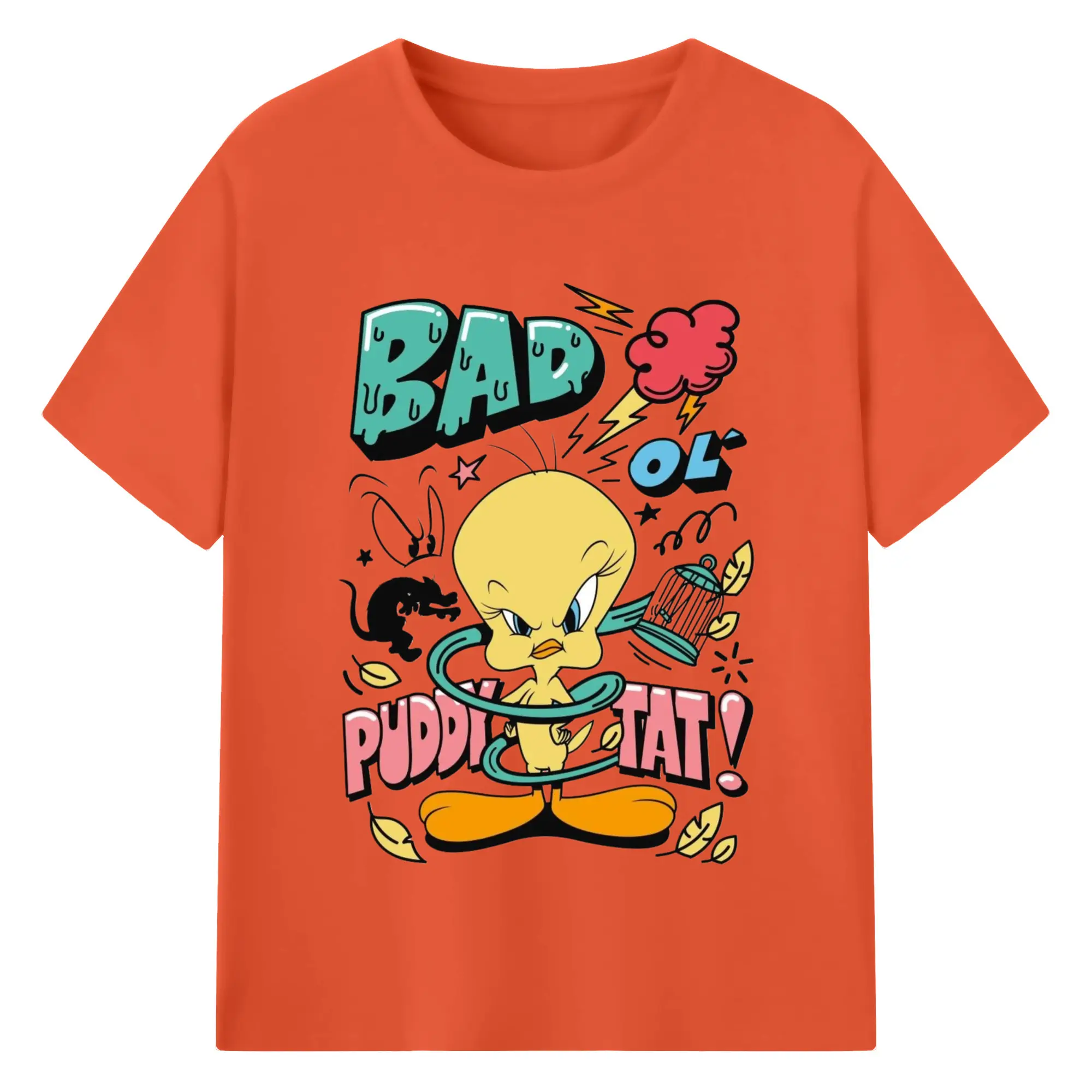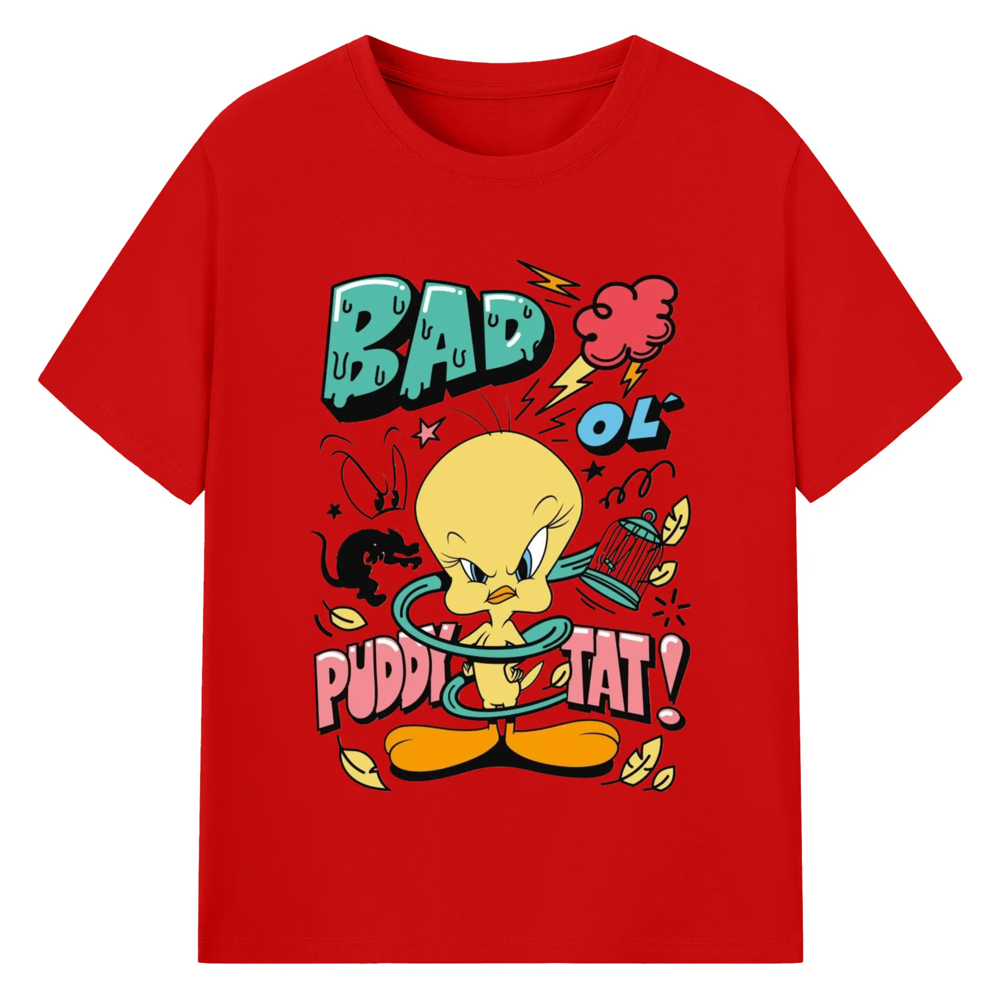 Tweety Bird cartoon graphic t-shirt - 180g Cotton T-Shirt With Front Heat Transfer Print – Soft, Lightweight, Fitted Design – Comfortable Casual Wear For Sports & Everyday Use