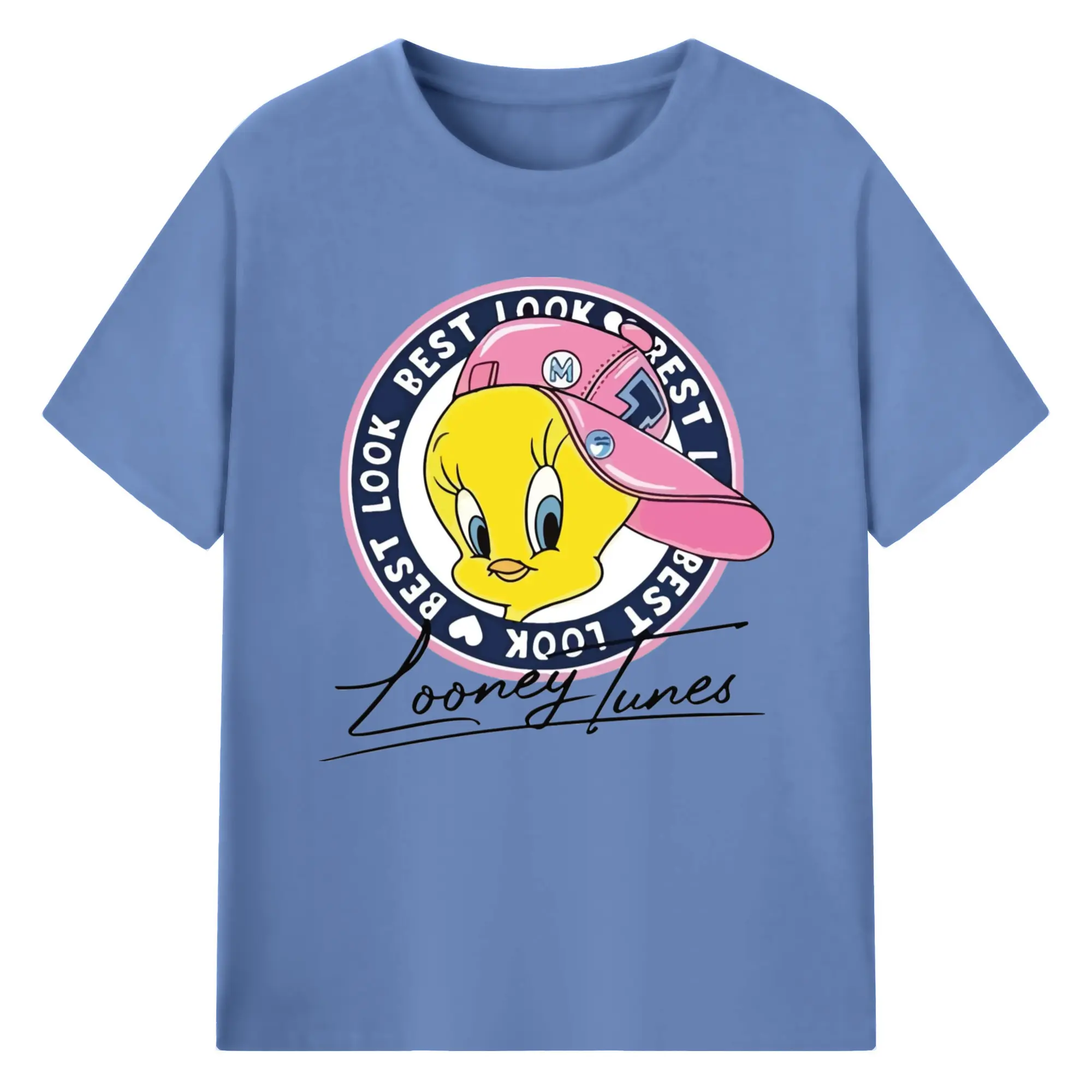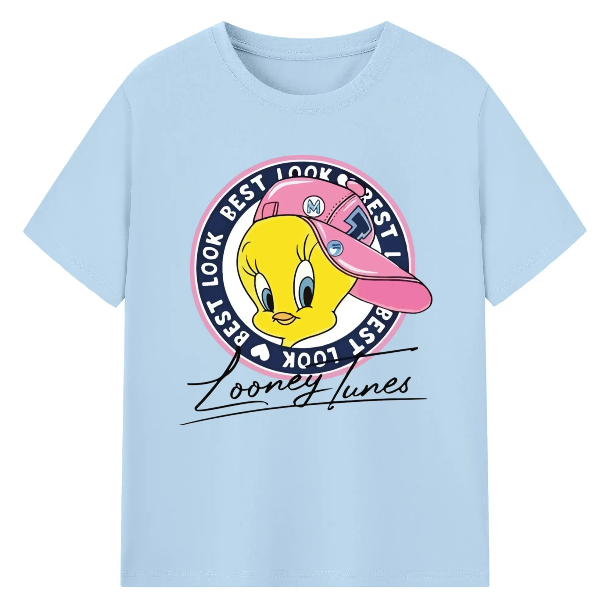 Tweety bird face t-shirts - 180g Cotton T-Shirt With Front Heat Transfer Print – Soft, Lightweight, Fitted Design – Comfortable Casual Wear For Sports & Everyday Use