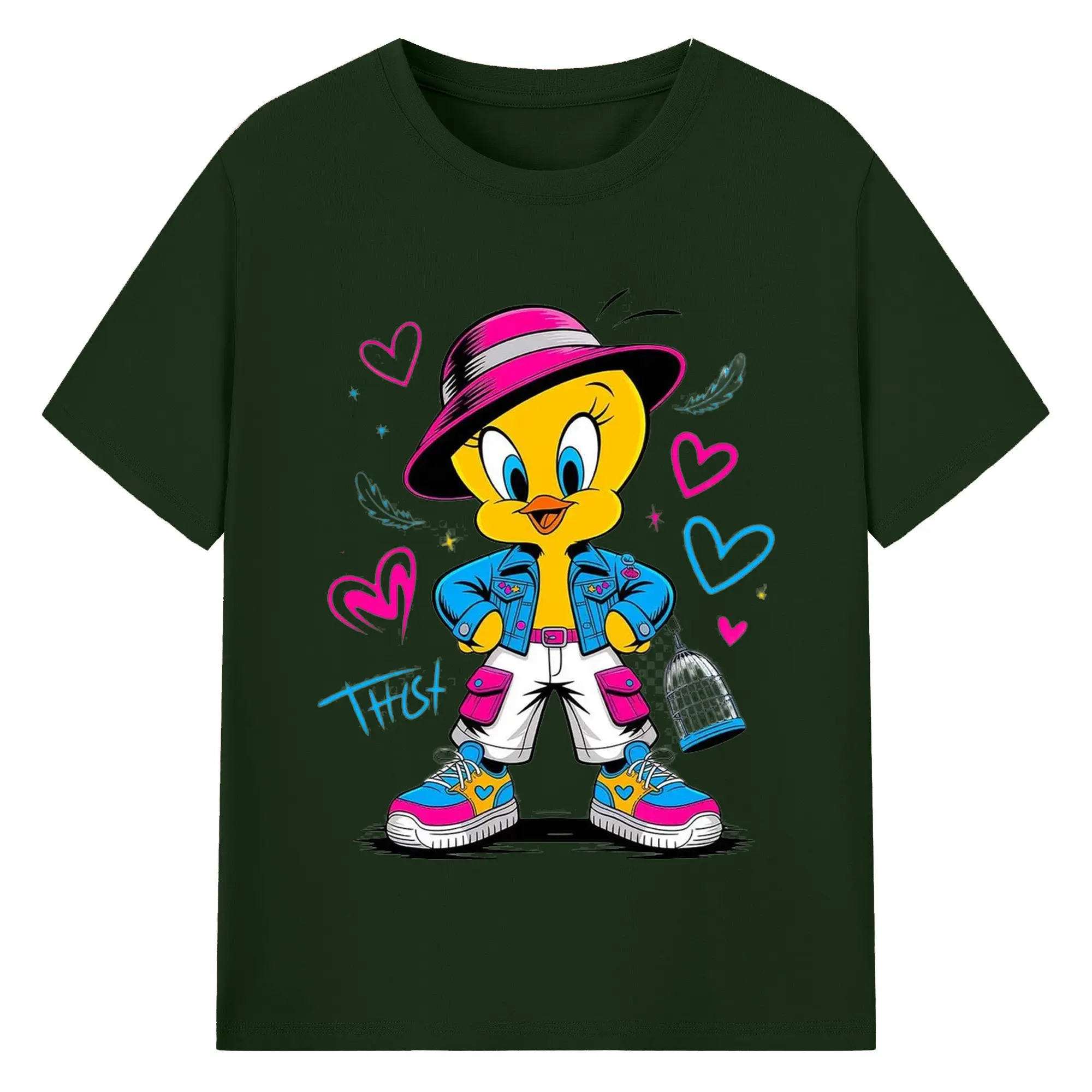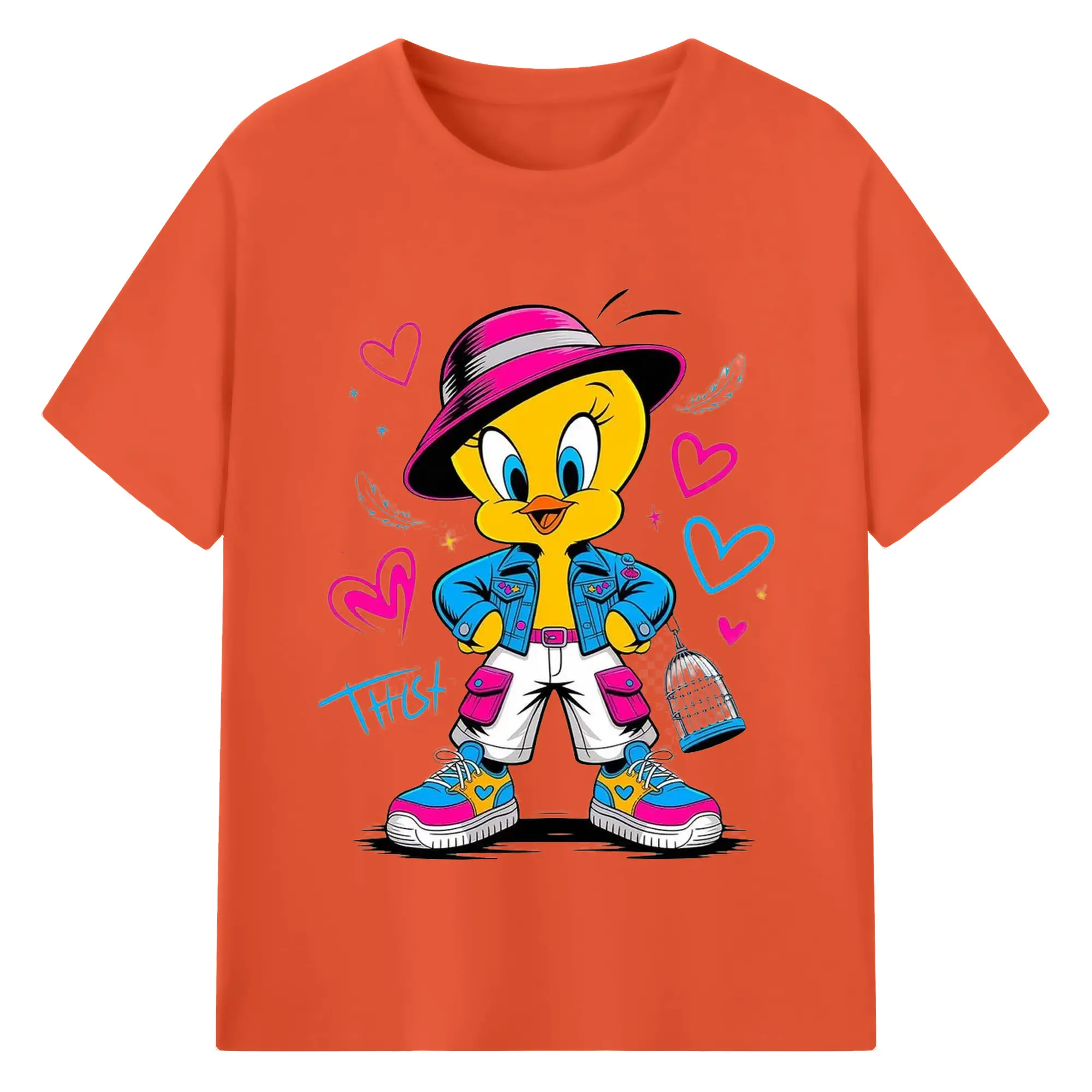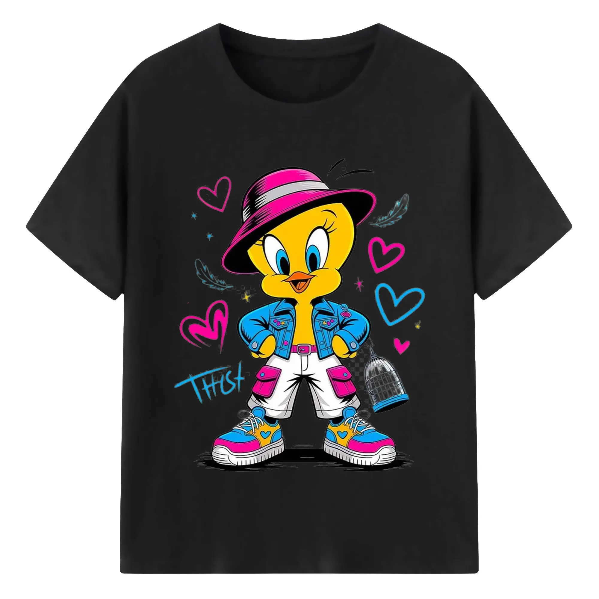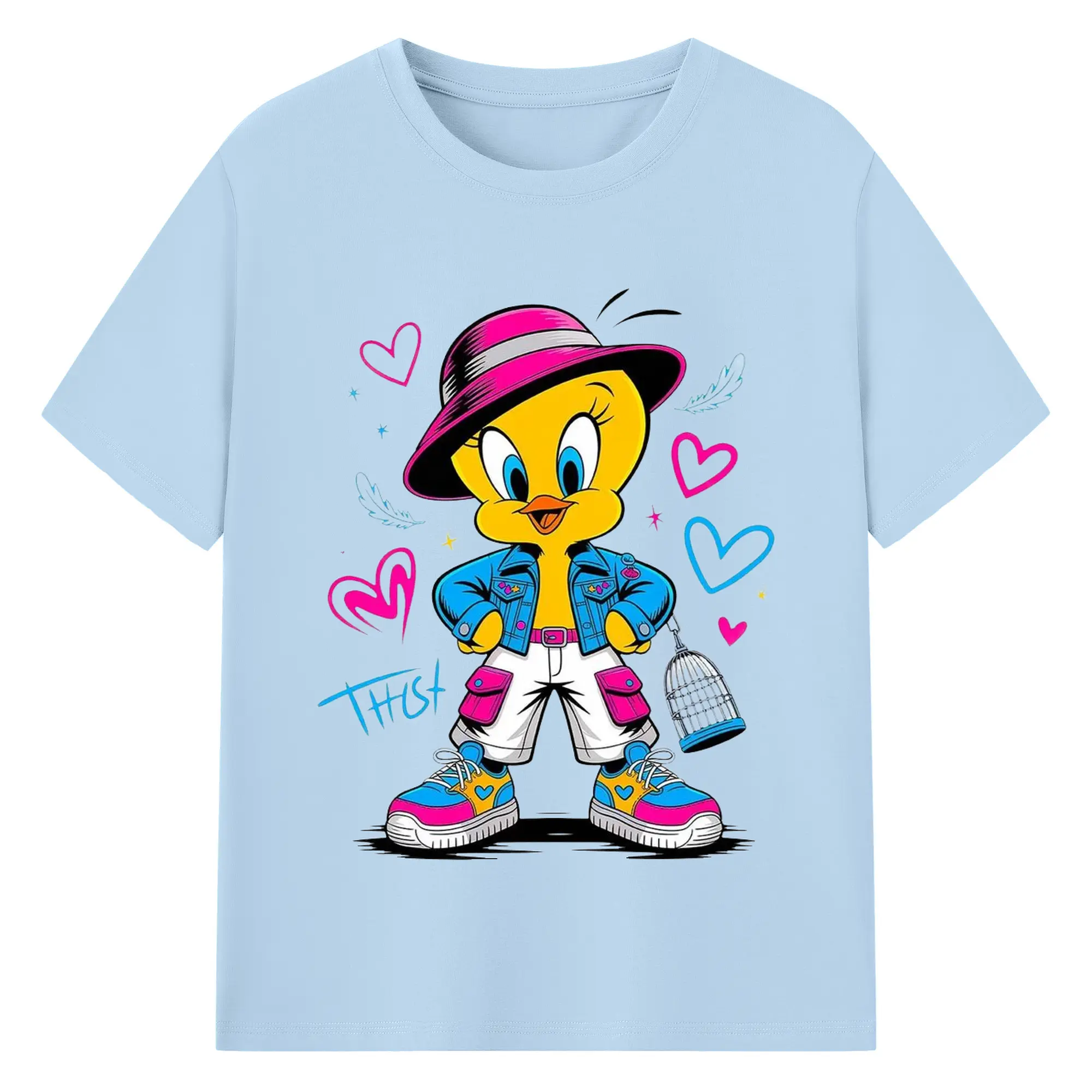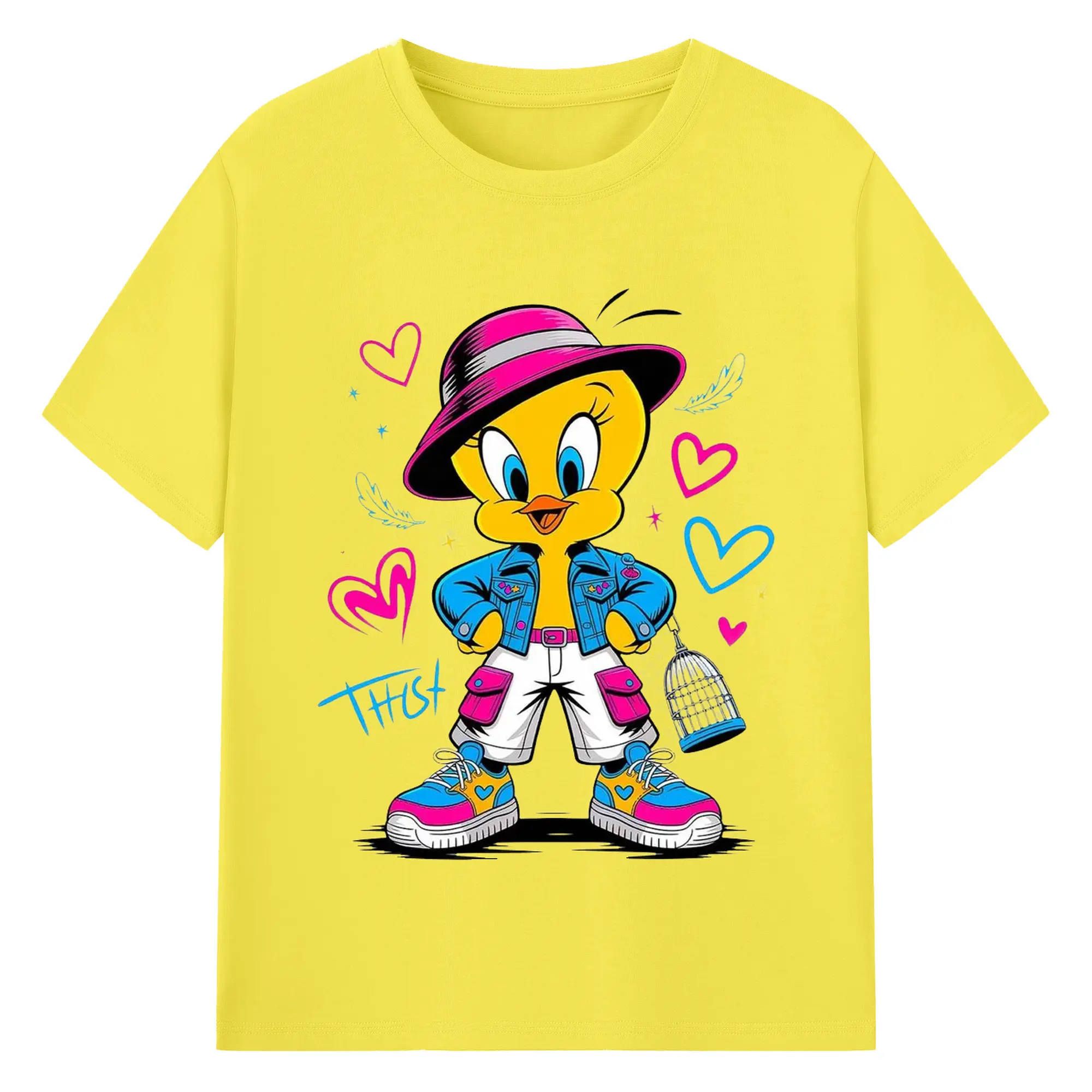 Tweety Bird graphic t-shirt - 180g Cotton T-Shirt With Front Heat Transfer Print – Soft, Lightweight, Fitted Design – Comfortable Casual Wear For Sports & Everyday Use