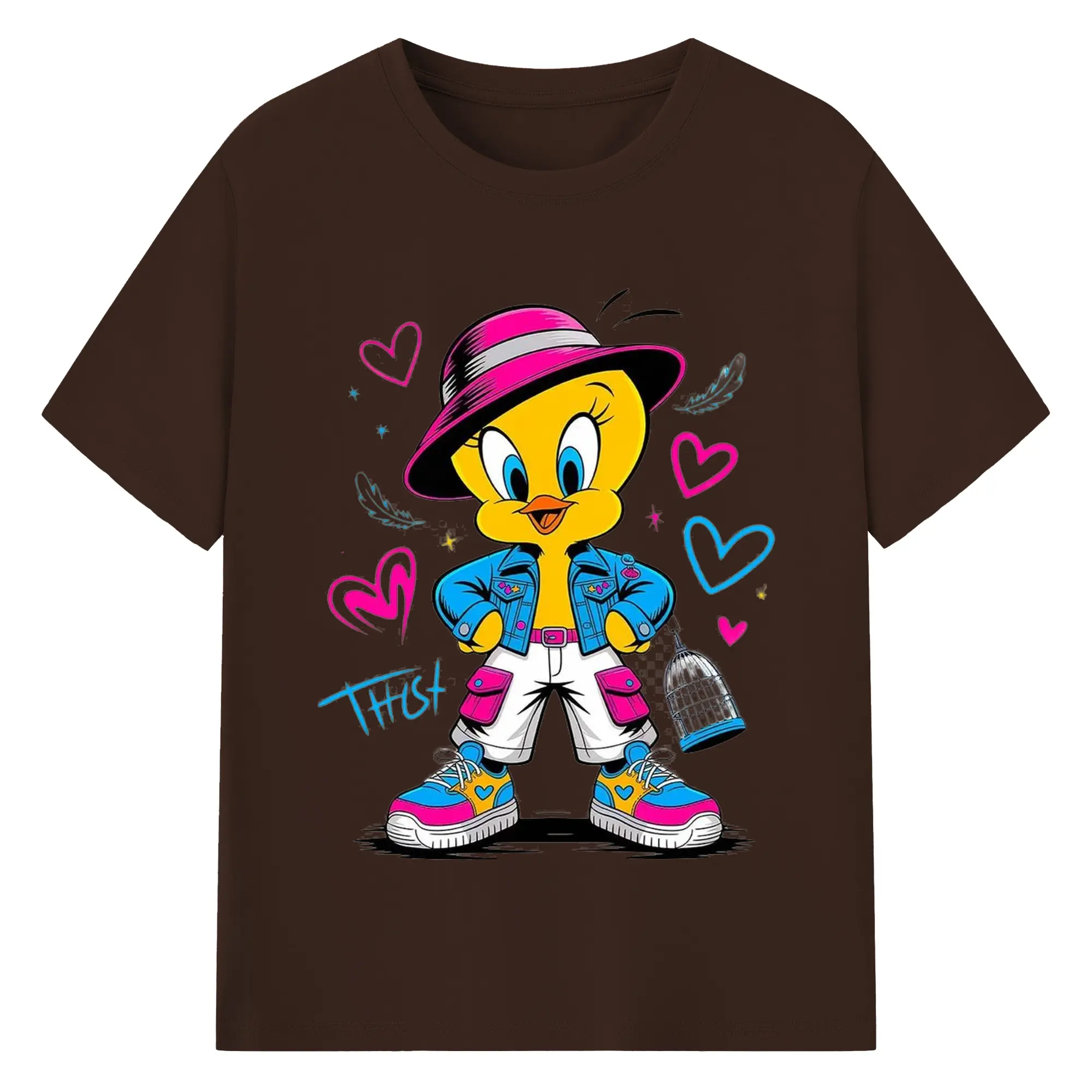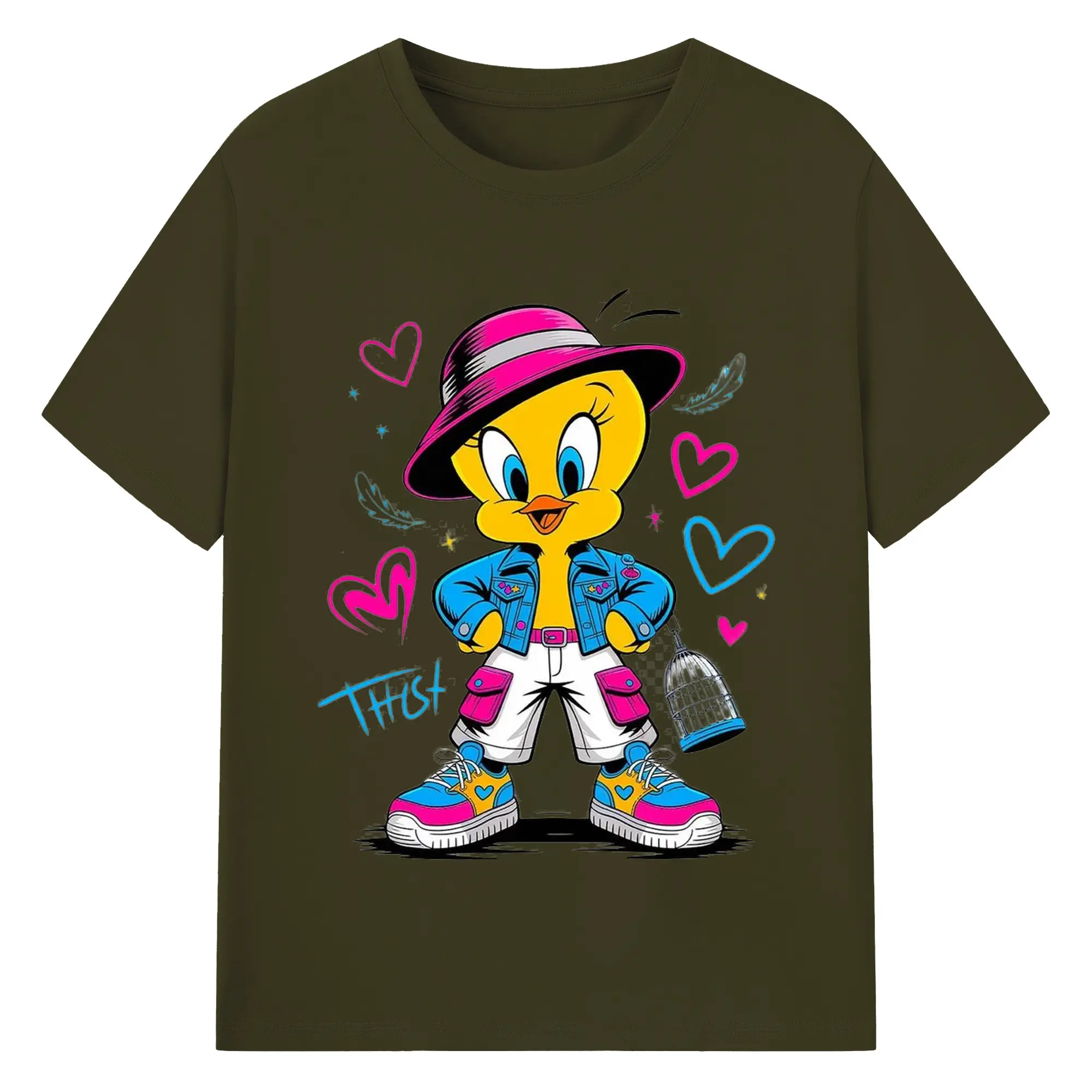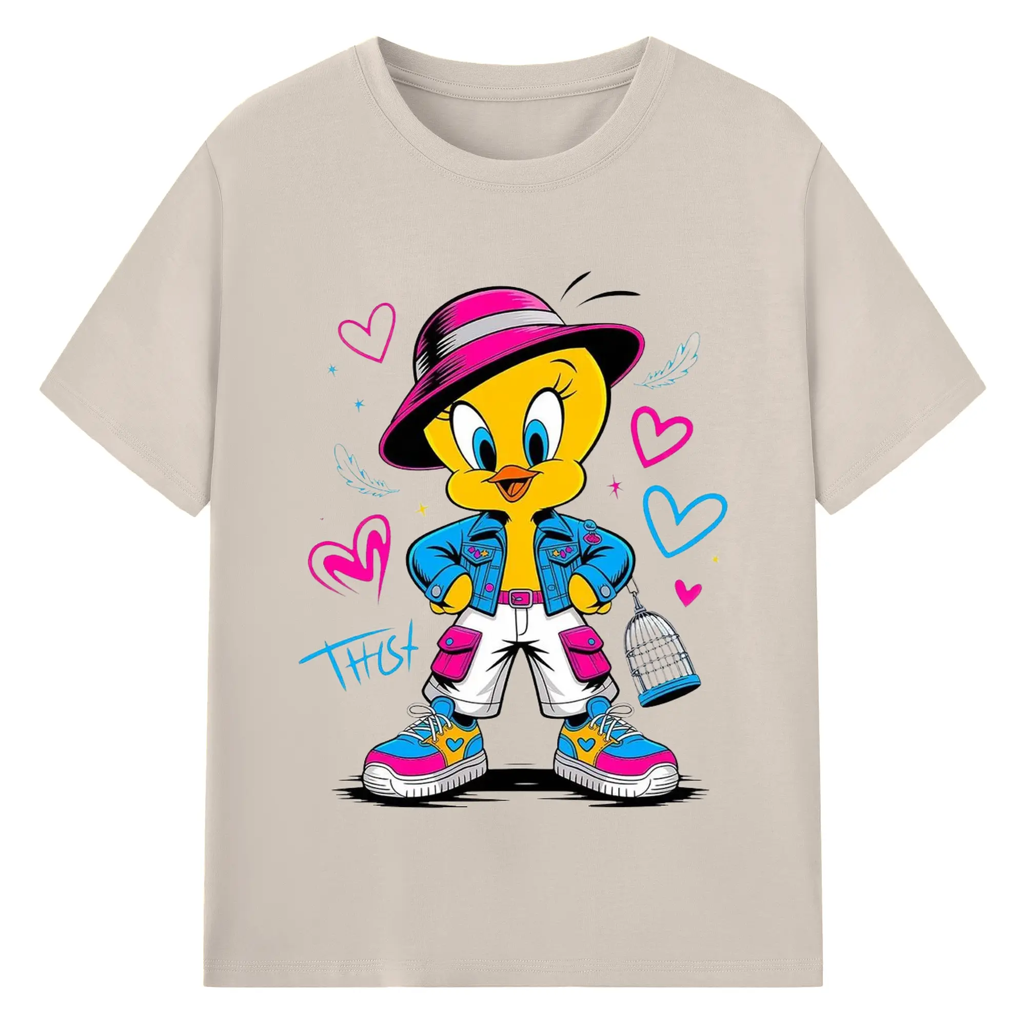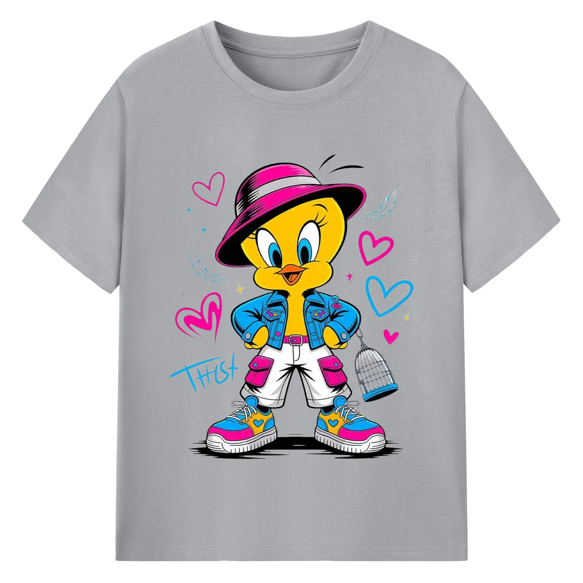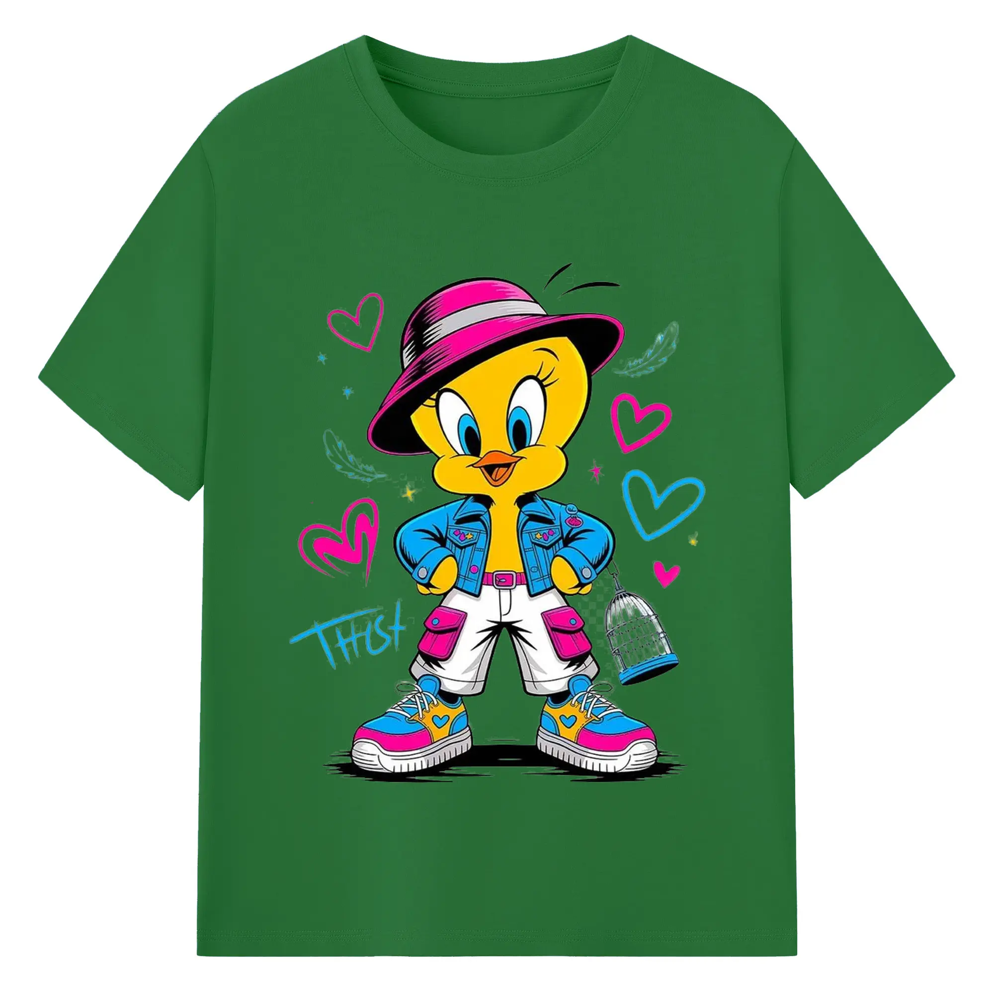 Tweety Bird graphic t-shirt - 180g Cotton T-Shirt With Front Heat Transfer Print – Soft, Lightweight, Fitted Design – Comfortable Casual Wear For Sports & Everyday Use