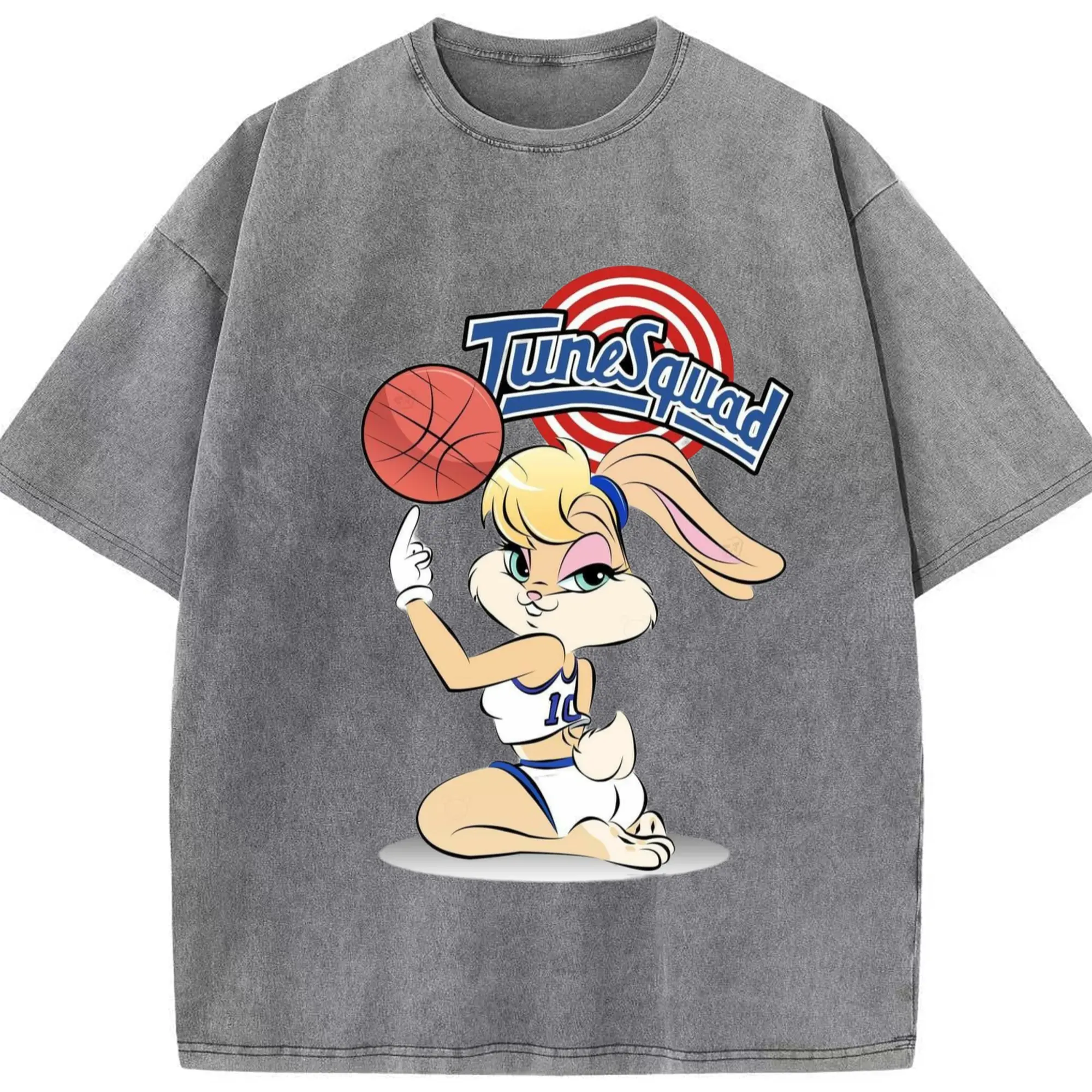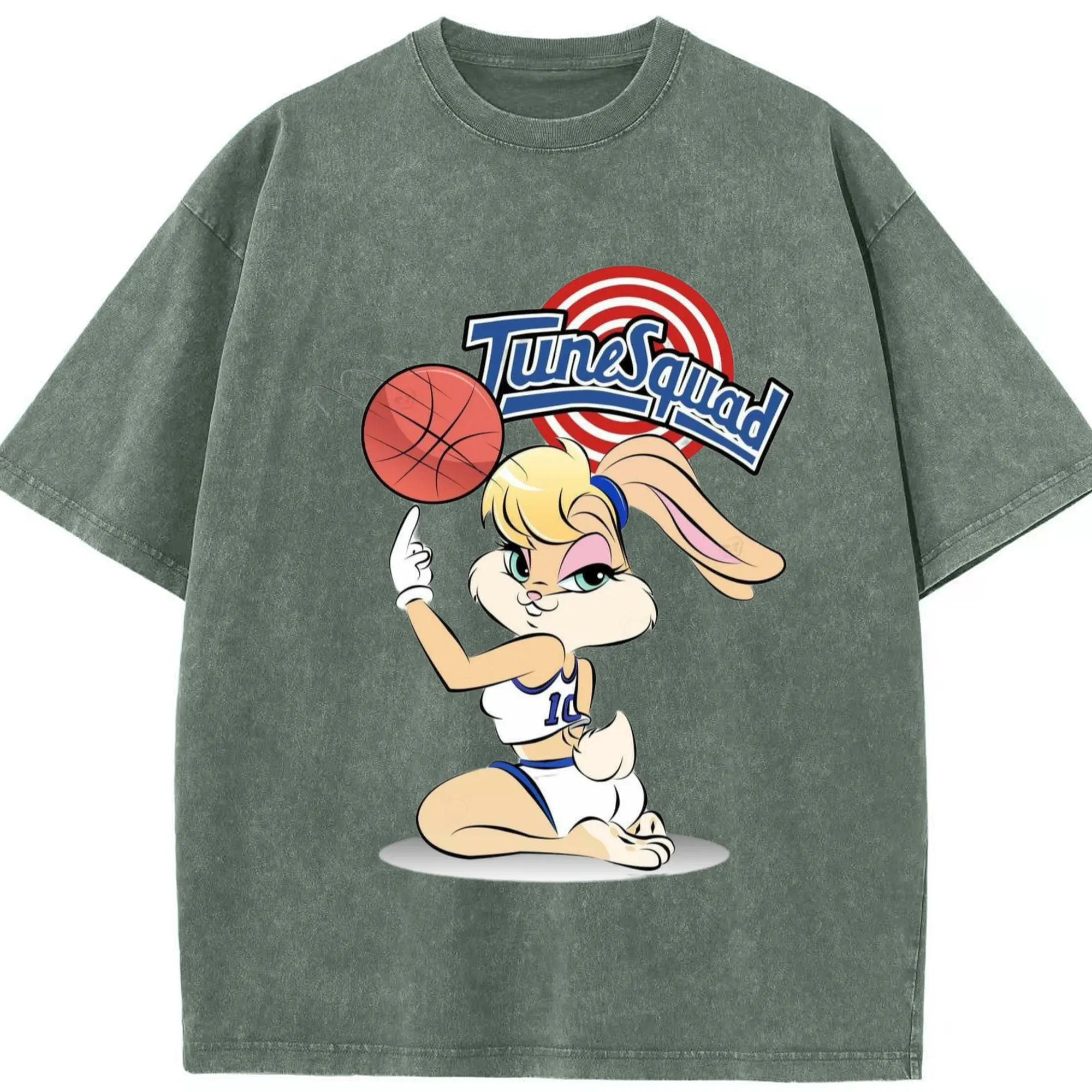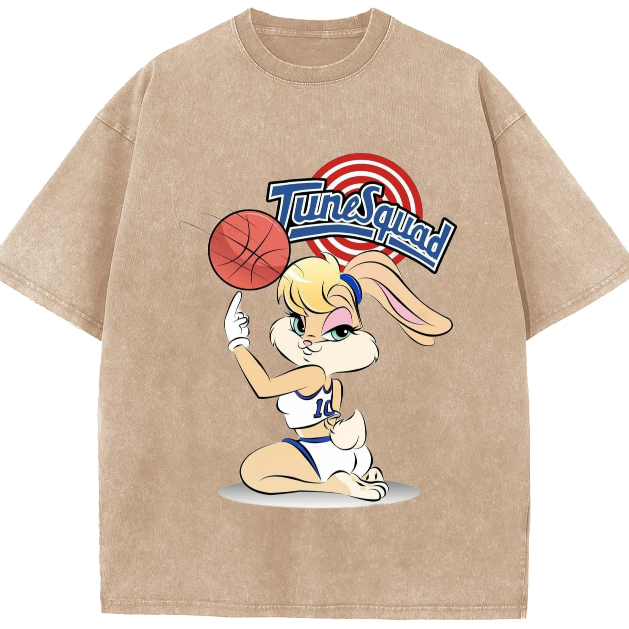 Vintage lola bunny basketball shirt - Washed Vintage Look 230g Cotton Oversized T-Shirt With Front Heat Transfer Print – Soft, Lightweight, Stylish Fit – Comfortable Casual Wear For Sports & Everyday Use