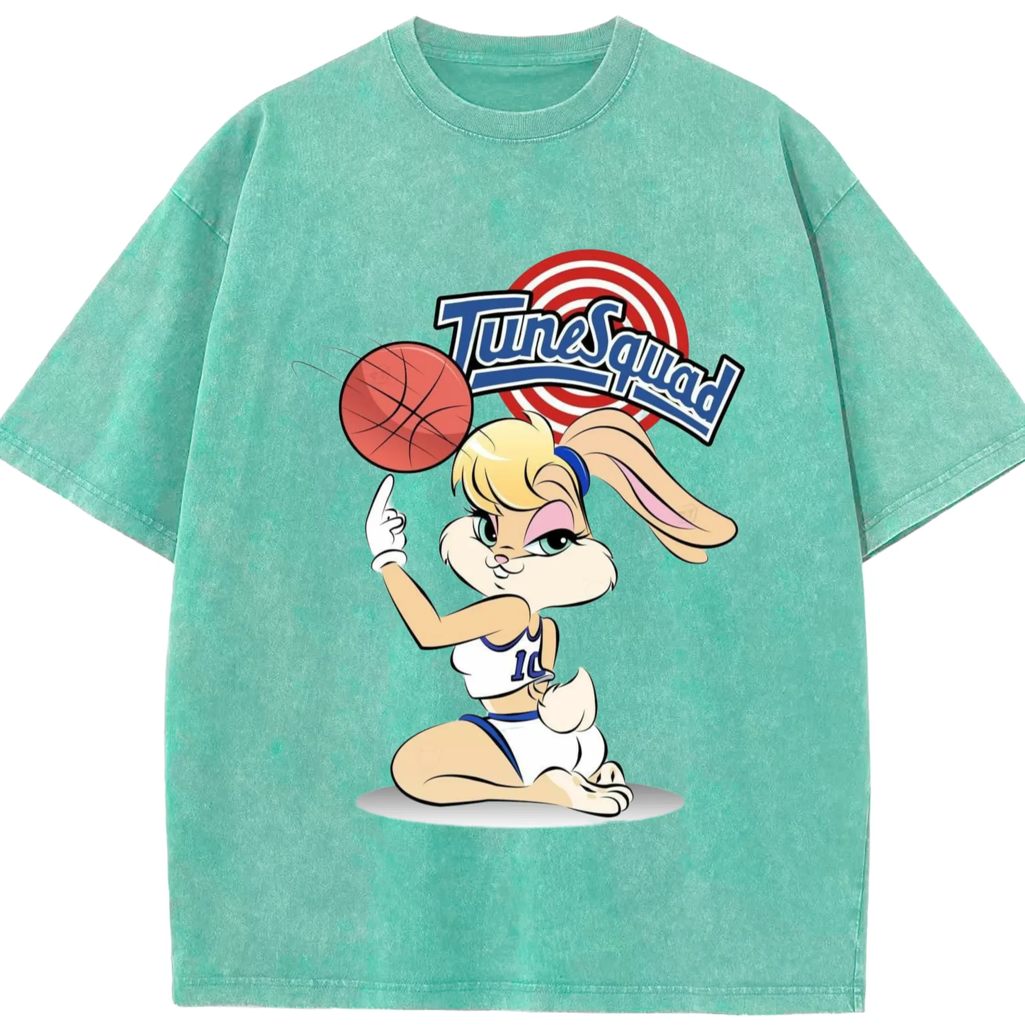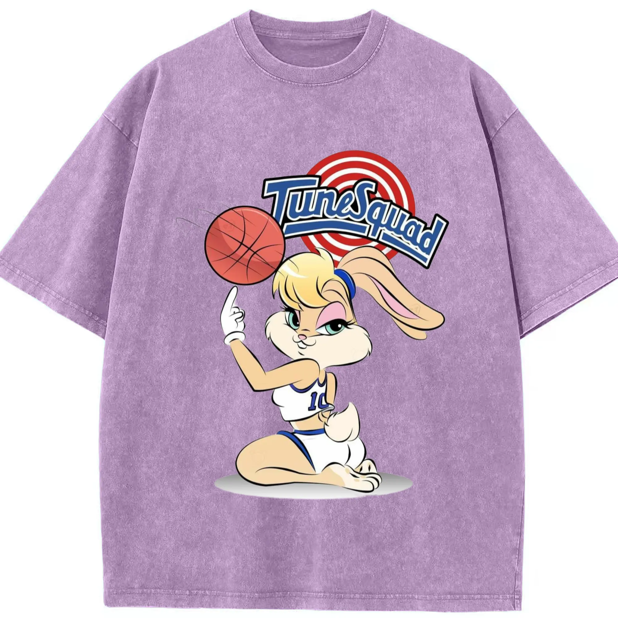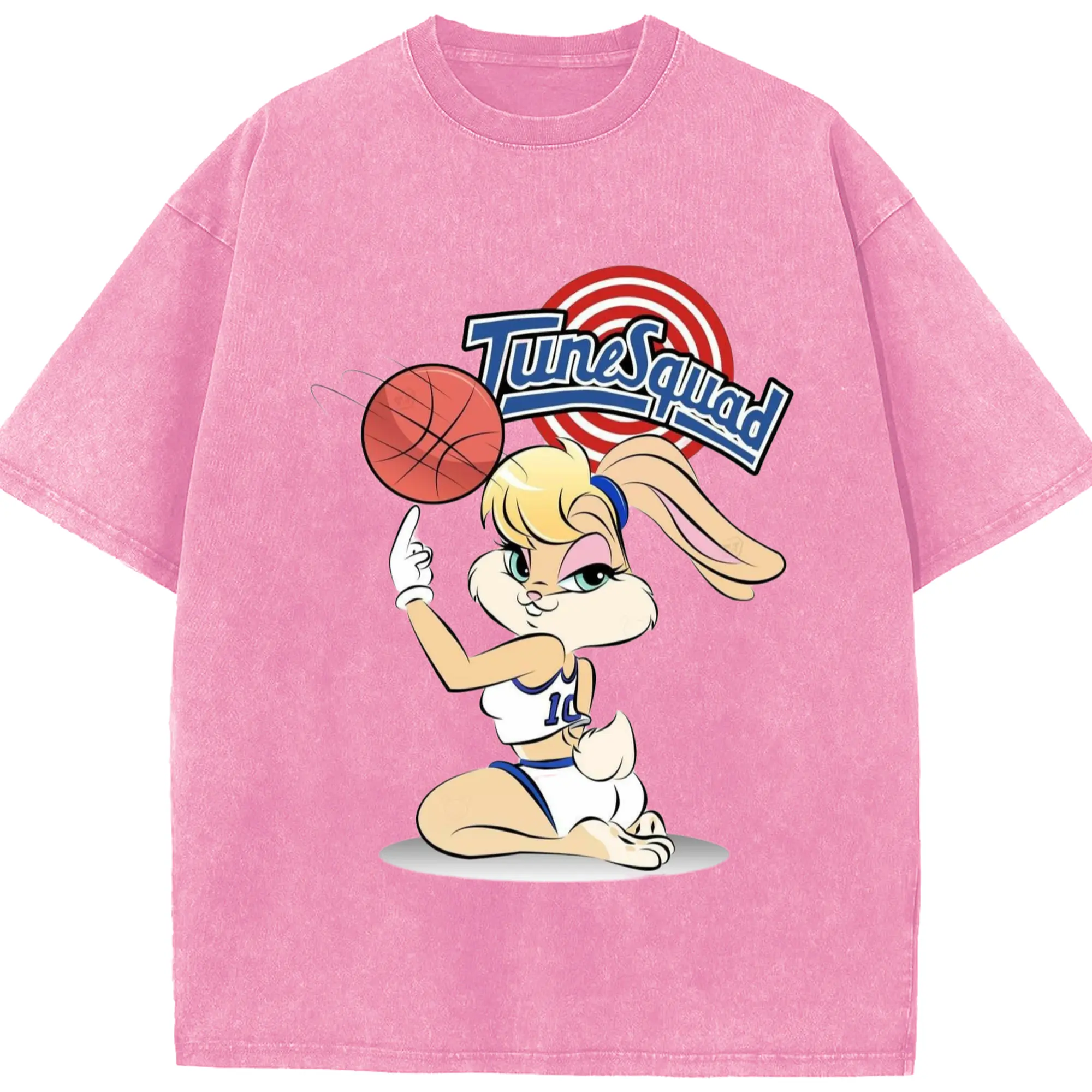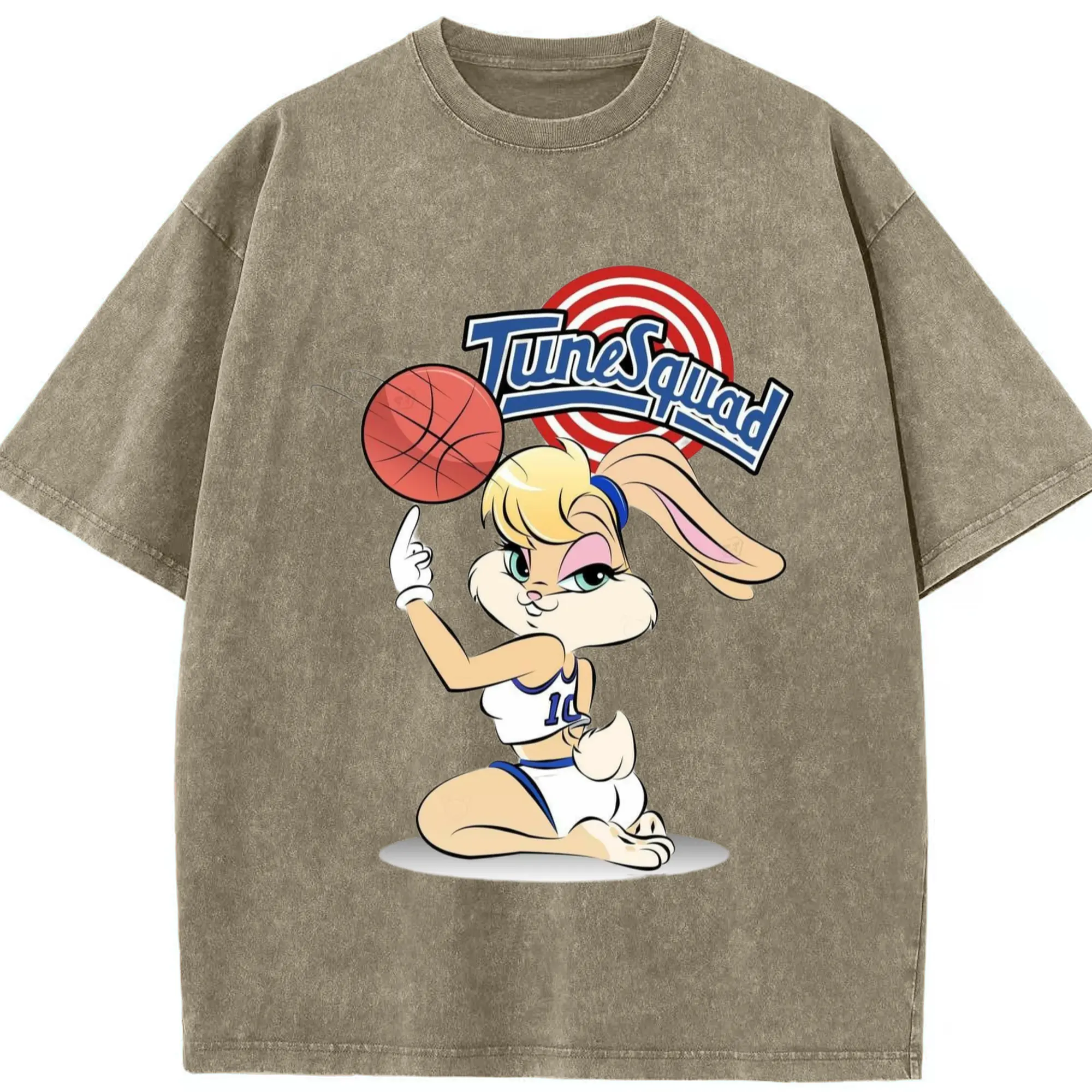 Vintage lola bunny basketball shirt - Washed Vintage Look 230g Cotton Oversized T-Shirt With Front Heat Transfer Print – Soft, Lightweight, Stylish Fit – Comfortable Casual Wear For Sports & Everyday Use