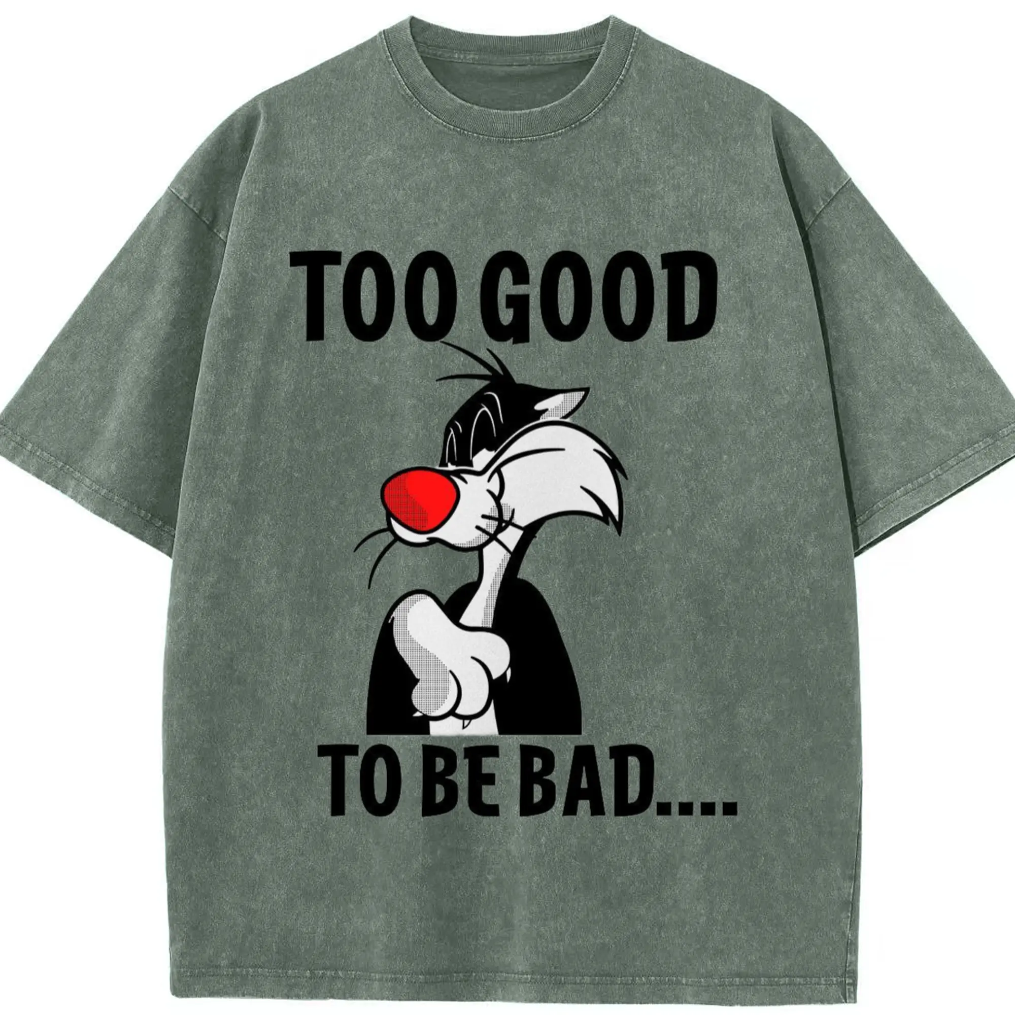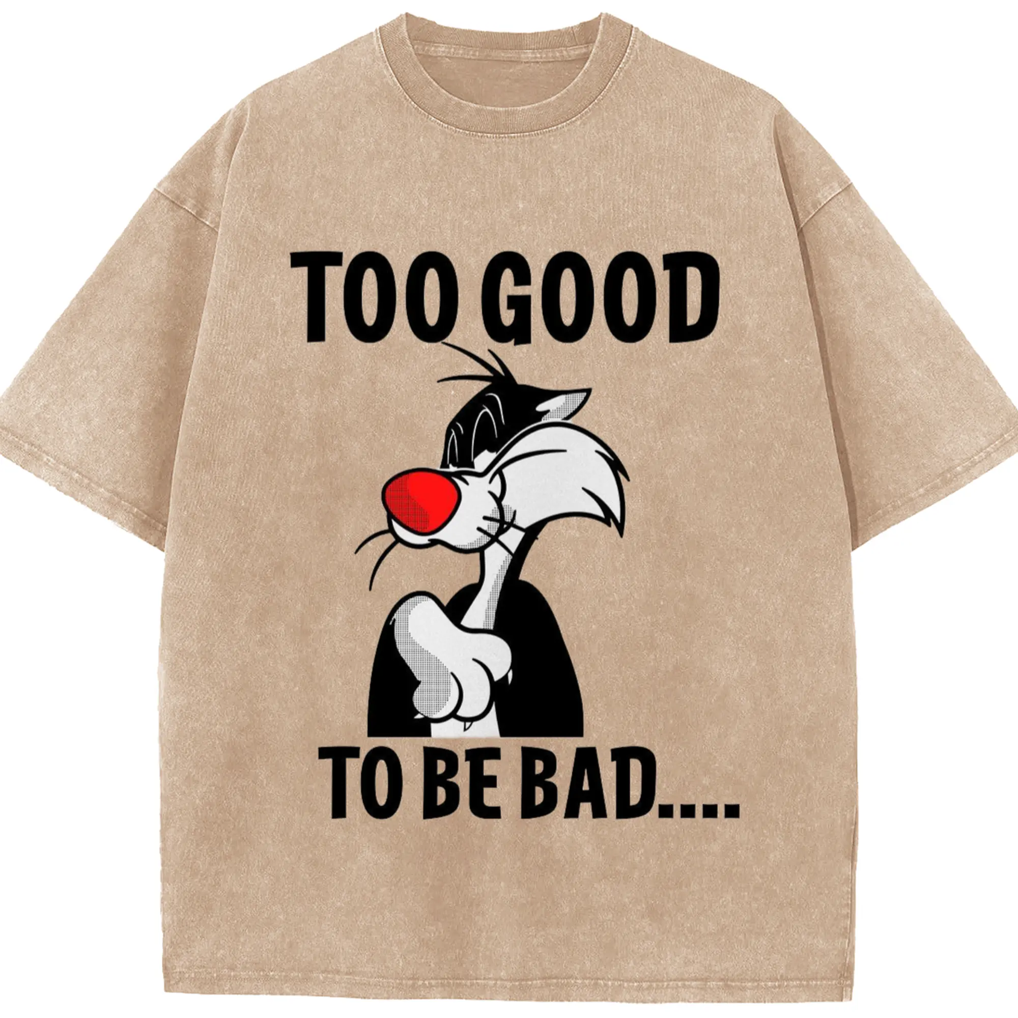 Vintage sylvester cat t shirt​ - Washed Vintage Look 230g Cotton Oversized T-Shirt With Front Heat Transfer Print – Soft, Lightweight, Stylish Fit – Comfortable Casual Wear For Sports & Everyday Use