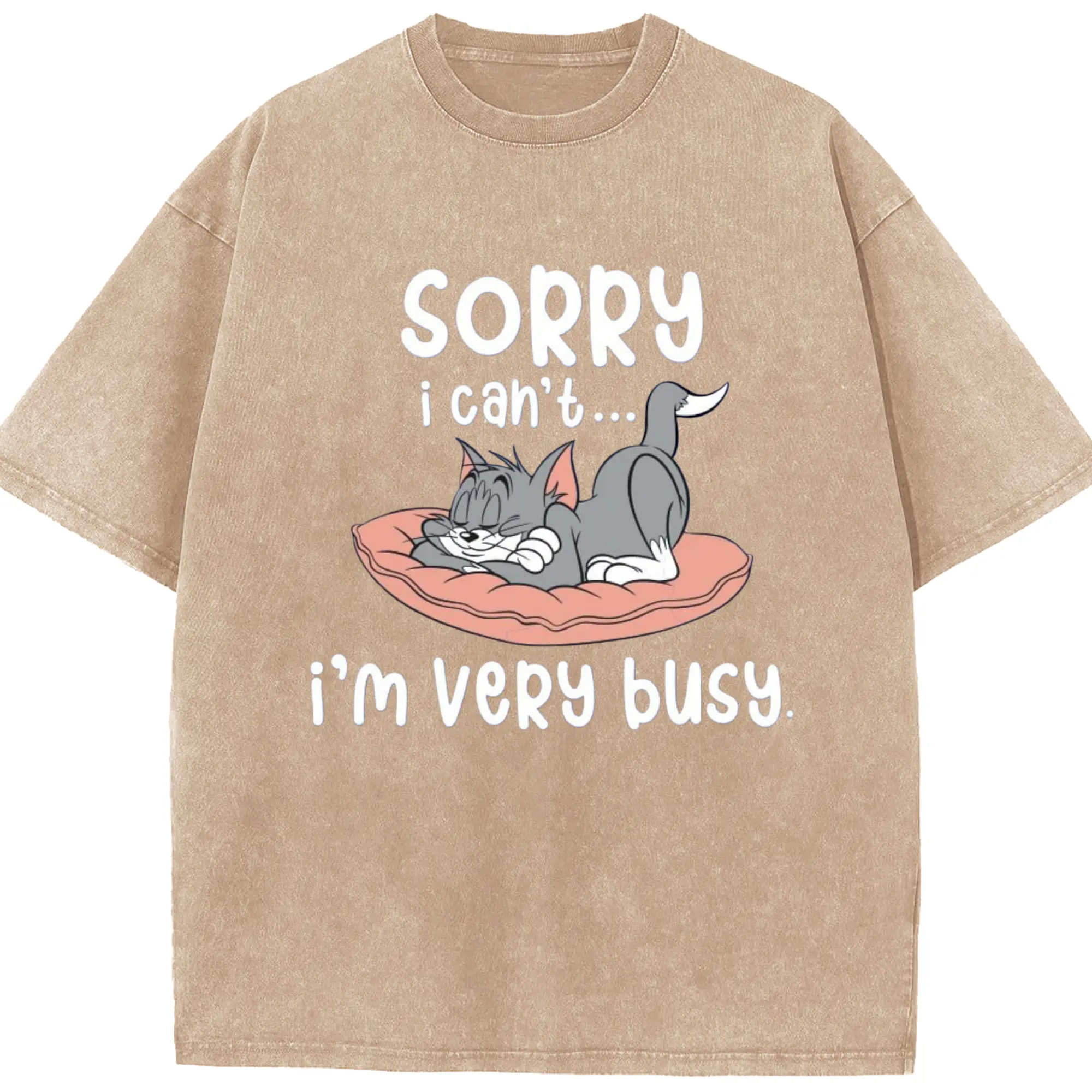 Vintage tom and jerry, tom shirt - Washed Vintage Look 230g Cotton Oversized T-Shirt With Front Heat Transfer Print – Soft, Lightweight, Stylish Fit – Comfortable Casual Wear For Sports & Everyday Use