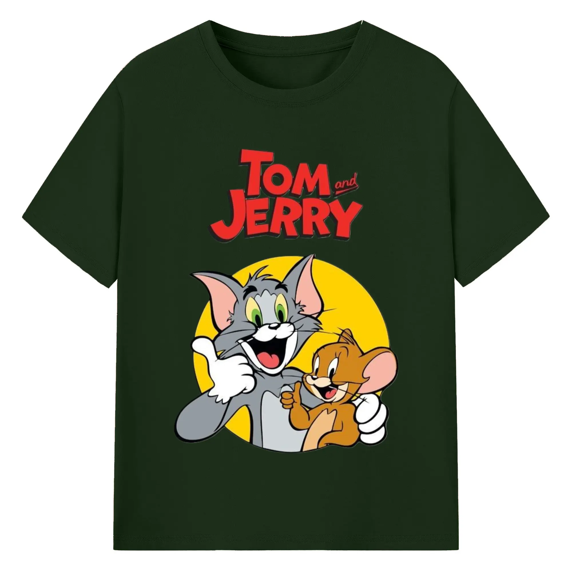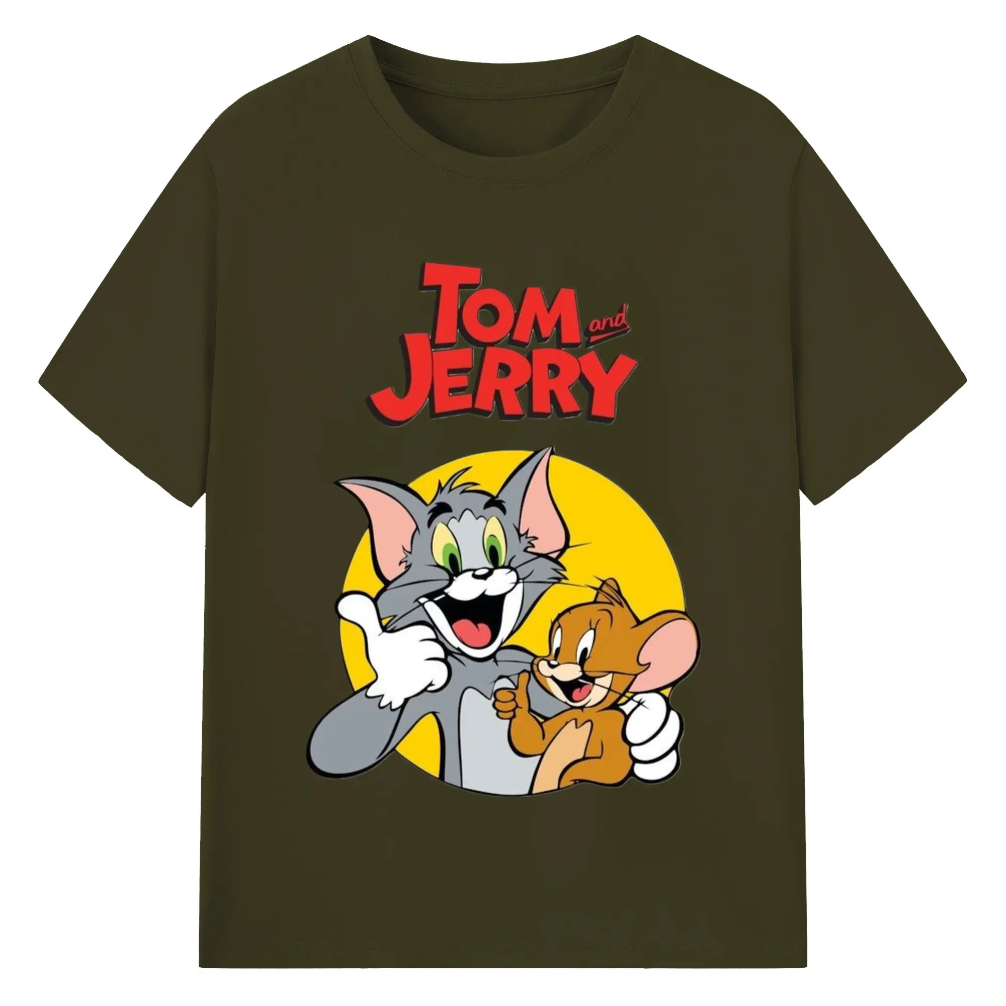 Vintage tom and jerry t-shirt - 180g Cotton T-Shirt With Front Heat Transfer Print – Soft, Lightweight, Fitted Design – Comfortable Casual Wear For Sports & Everyday Use