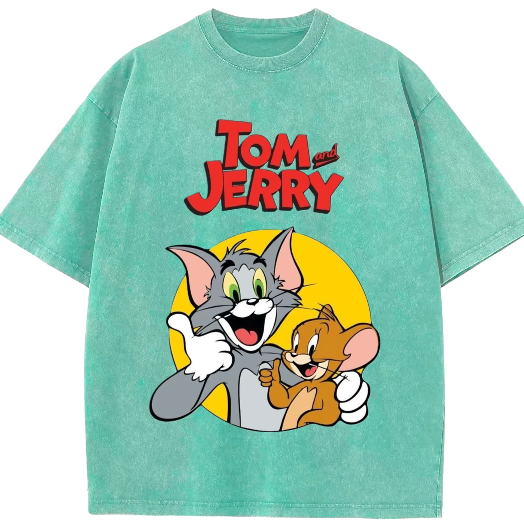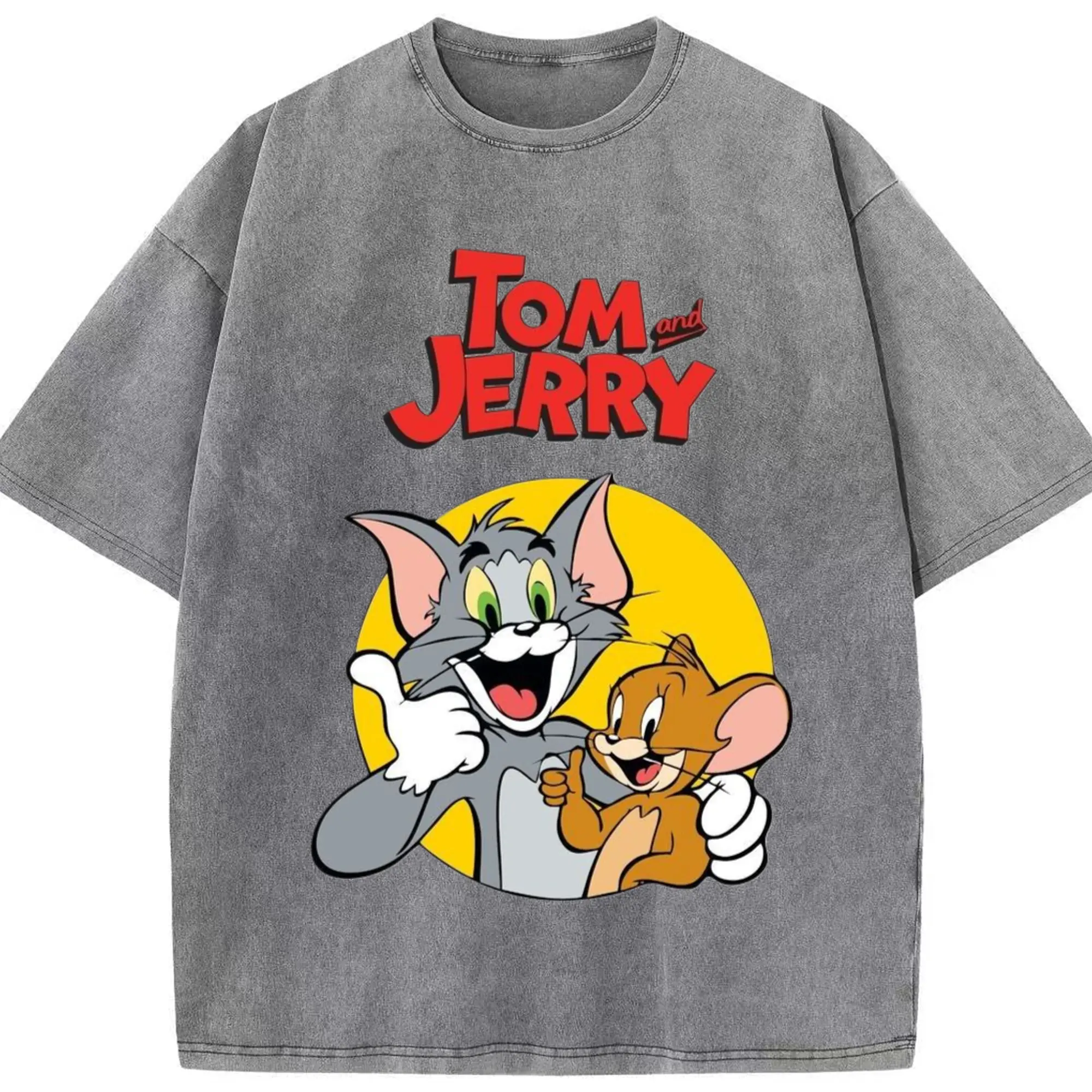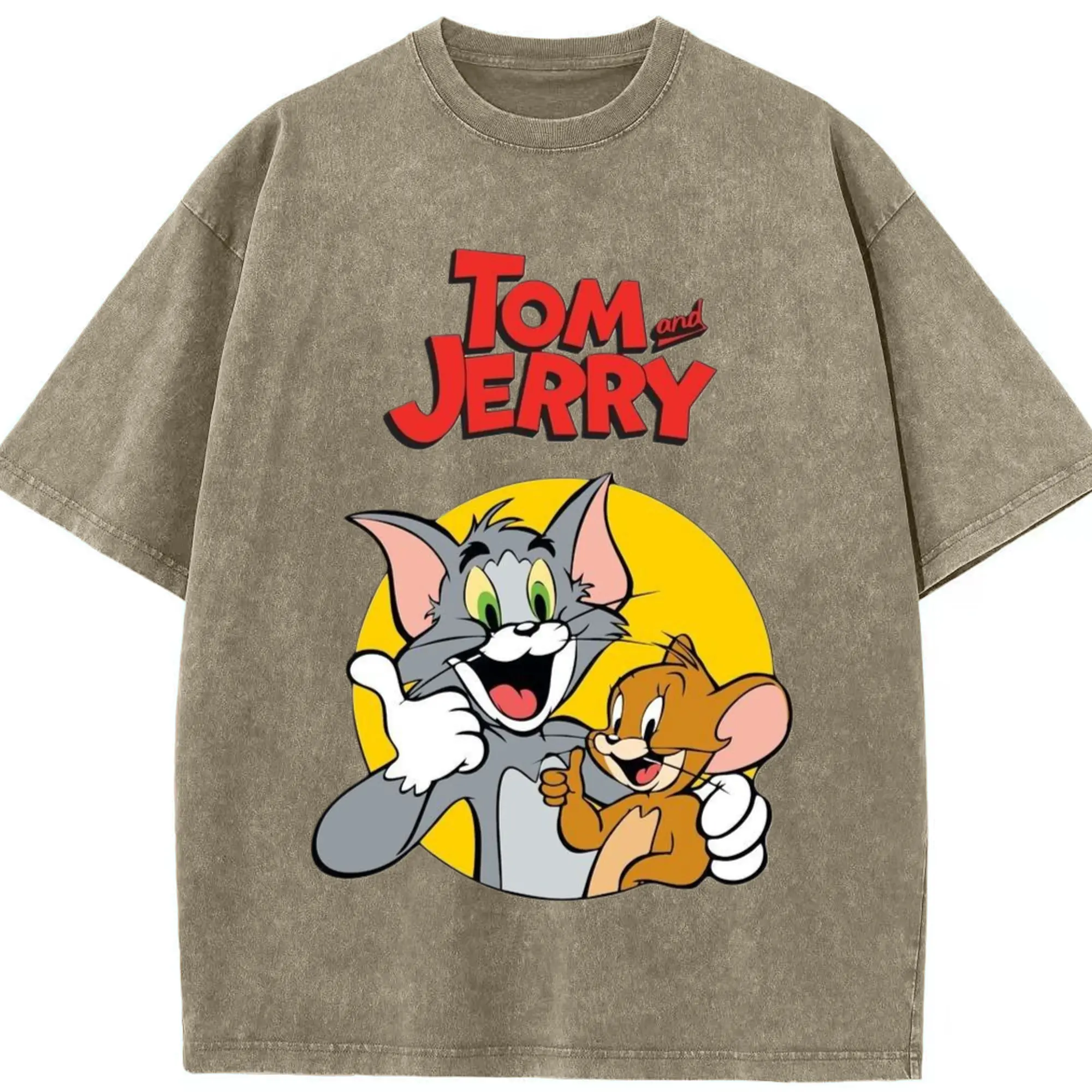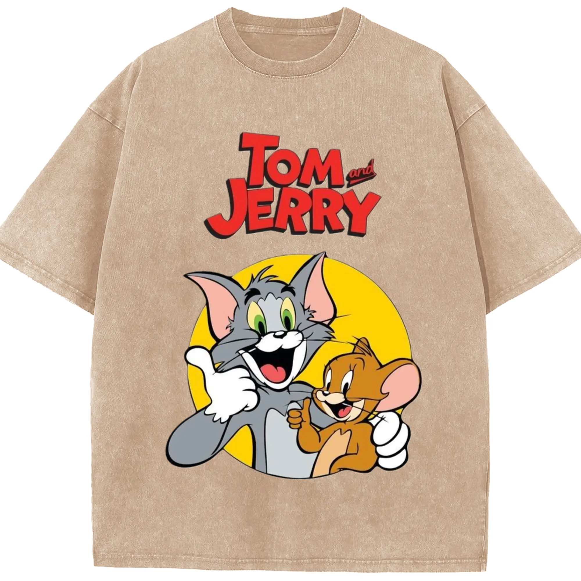 Vintage tom and jerry t-shirt - Washed Vintage Look 230g Cotton Oversized T-Shirt With Front Heat Transfer Print – Soft, Lightweight, Stylish Fit – Comfortable Casual Wear For Sports & Everyday Use