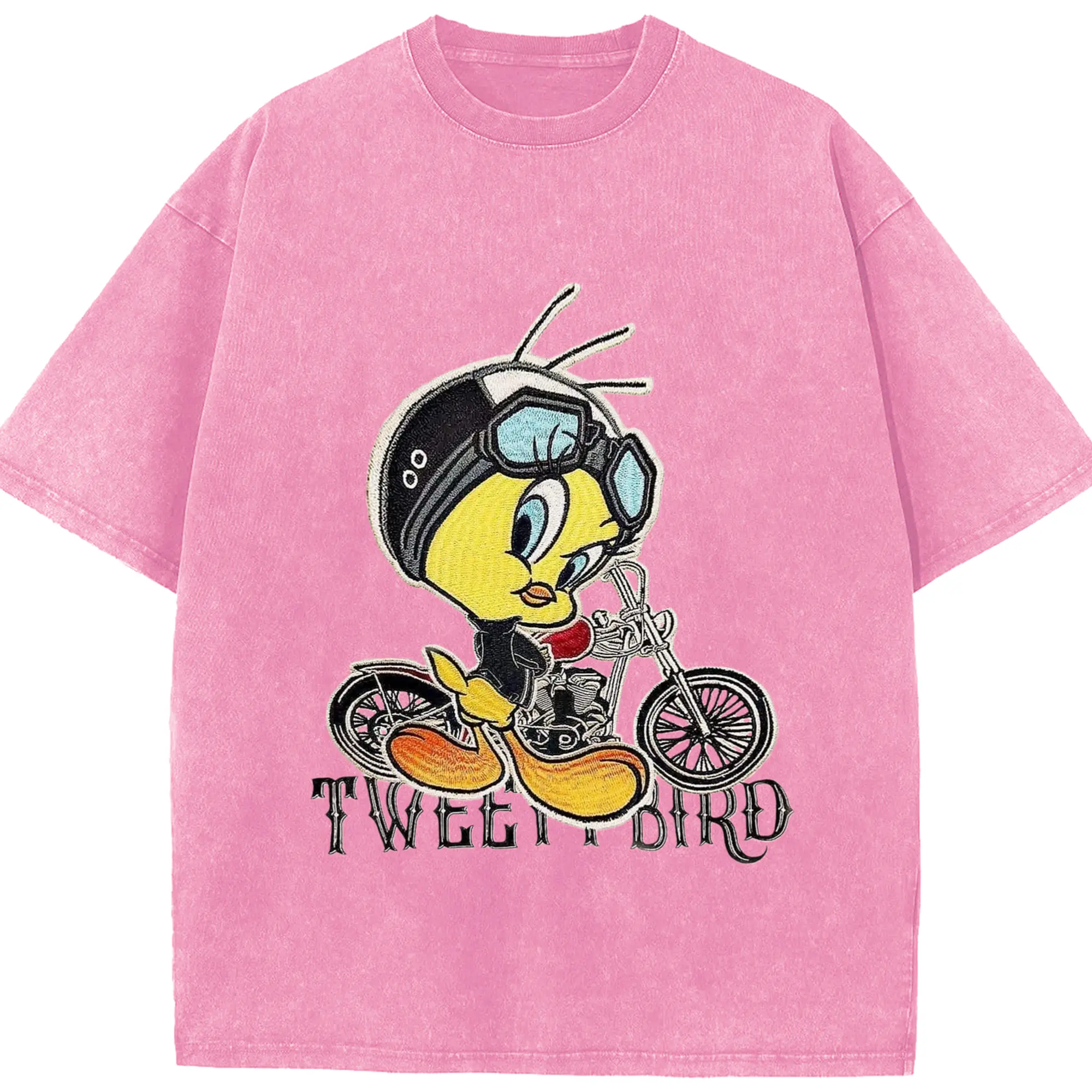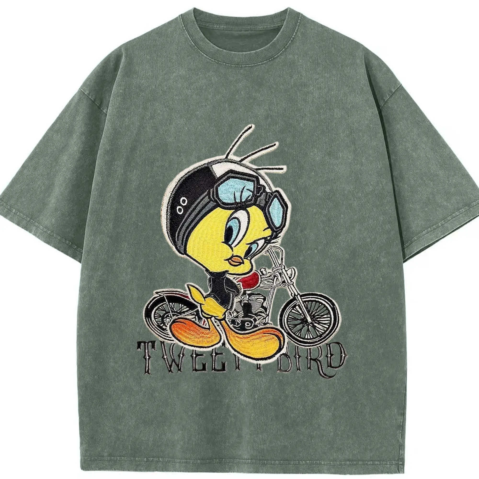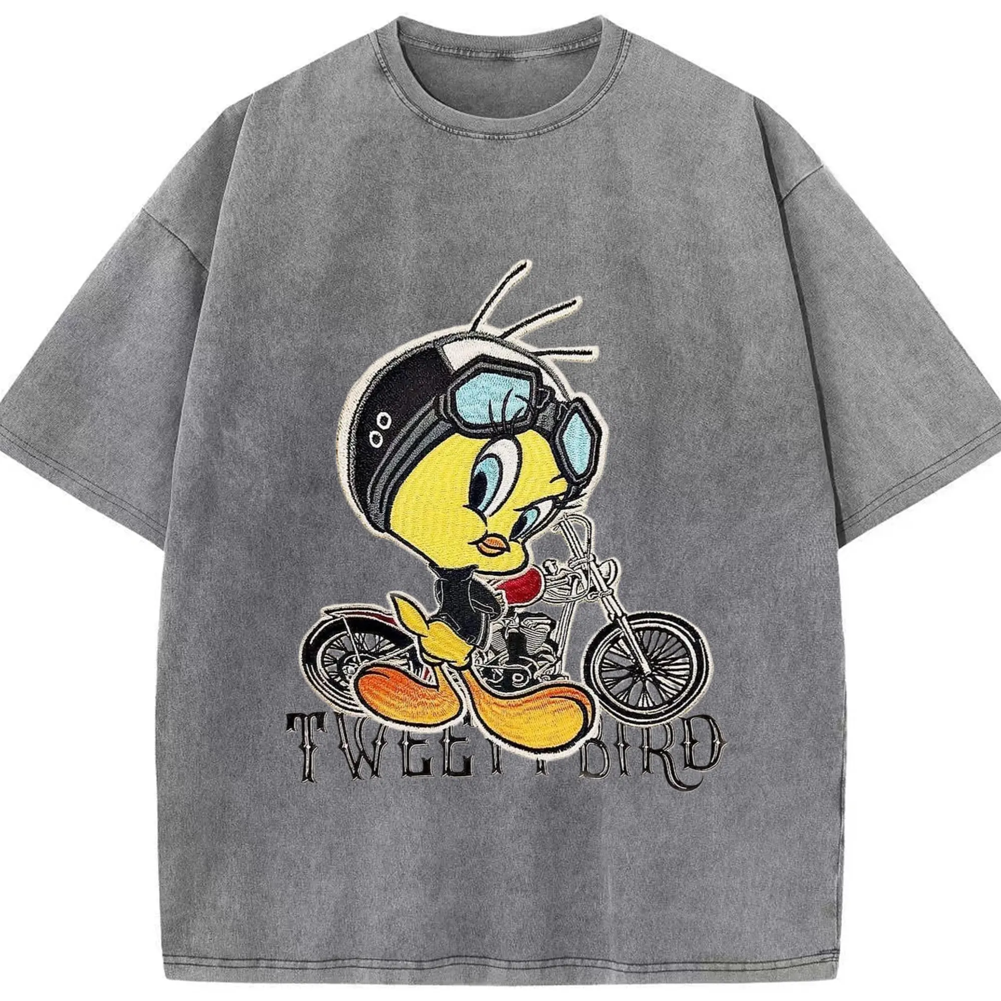 Vintage tweety bird shirt - Washed Vintage Look 230g Cotton Oversized T-Shirt With Front Heat Transfer Print – Soft, Lightweight, Stylish Fit – Comfortable Casual Wear For Sports & Everyday Use