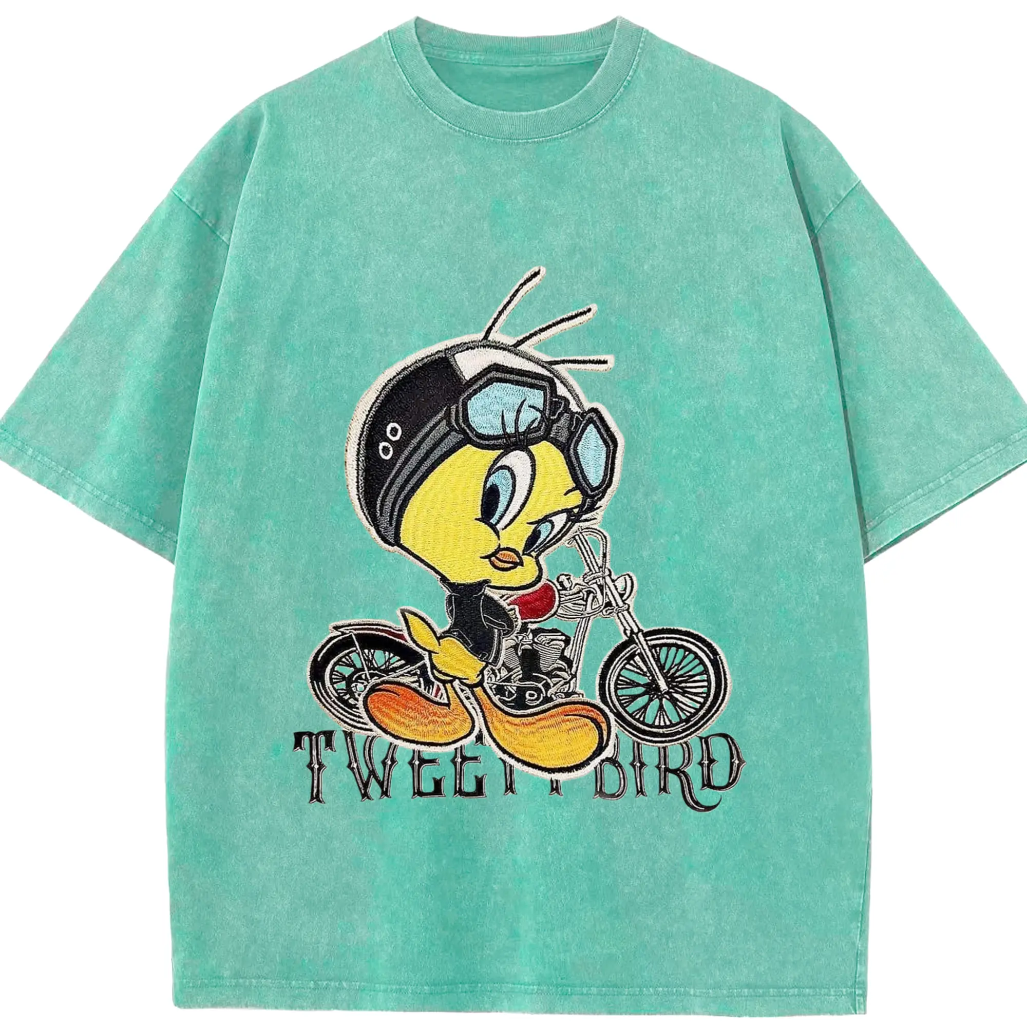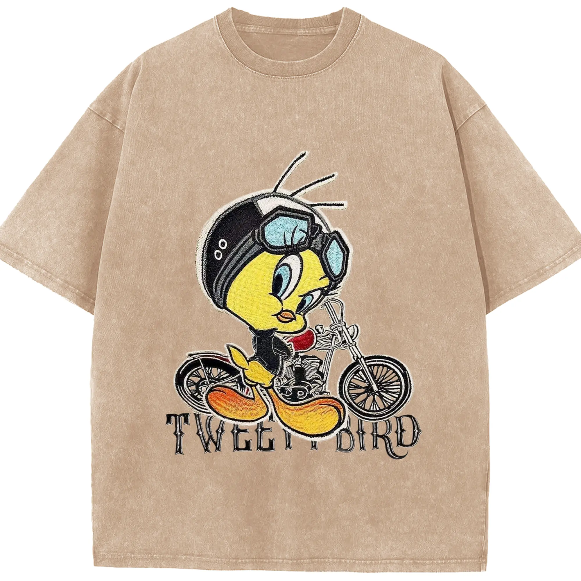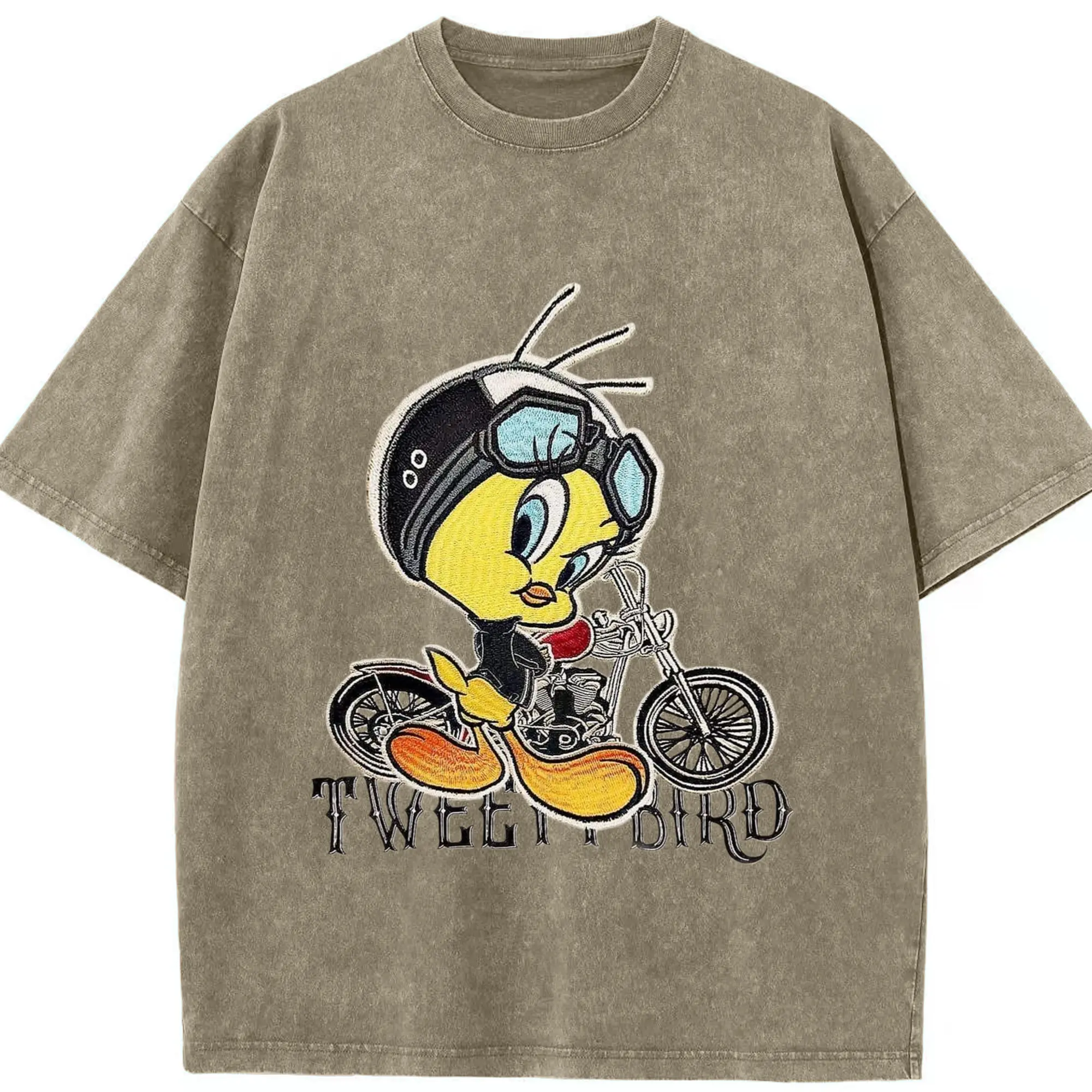 Vintage tweety bird shirt - Washed Vintage Look 230g Cotton Oversized T-Shirt With Front Heat Transfer Print – Soft, Lightweight, Stylish Fit – Comfortable Casual Wear For Sports & Everyday Use