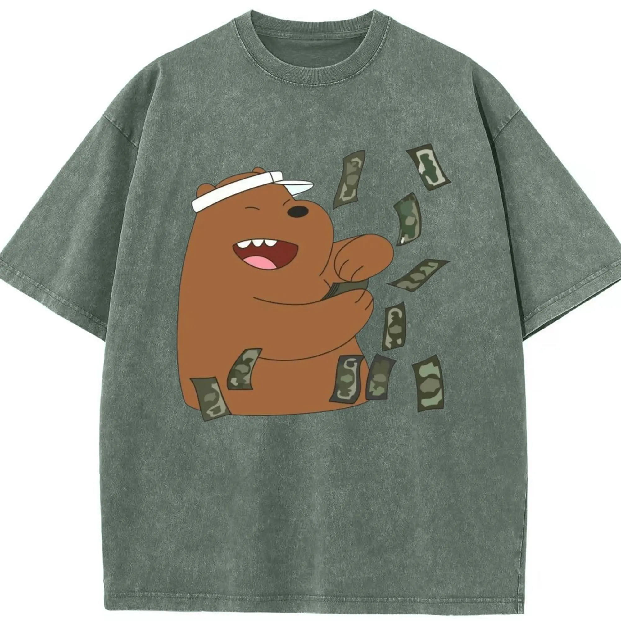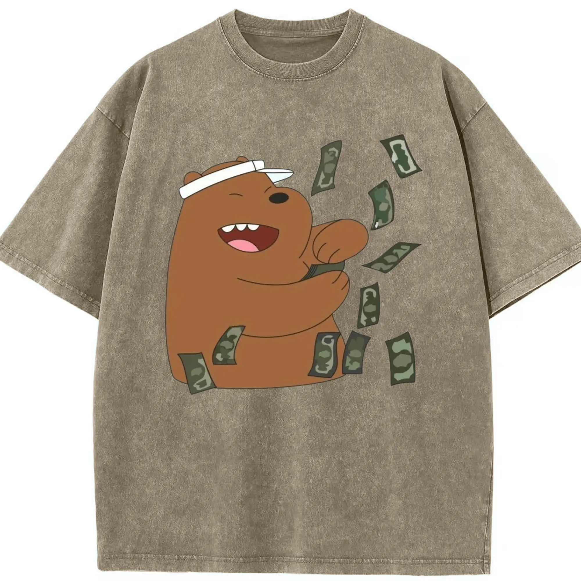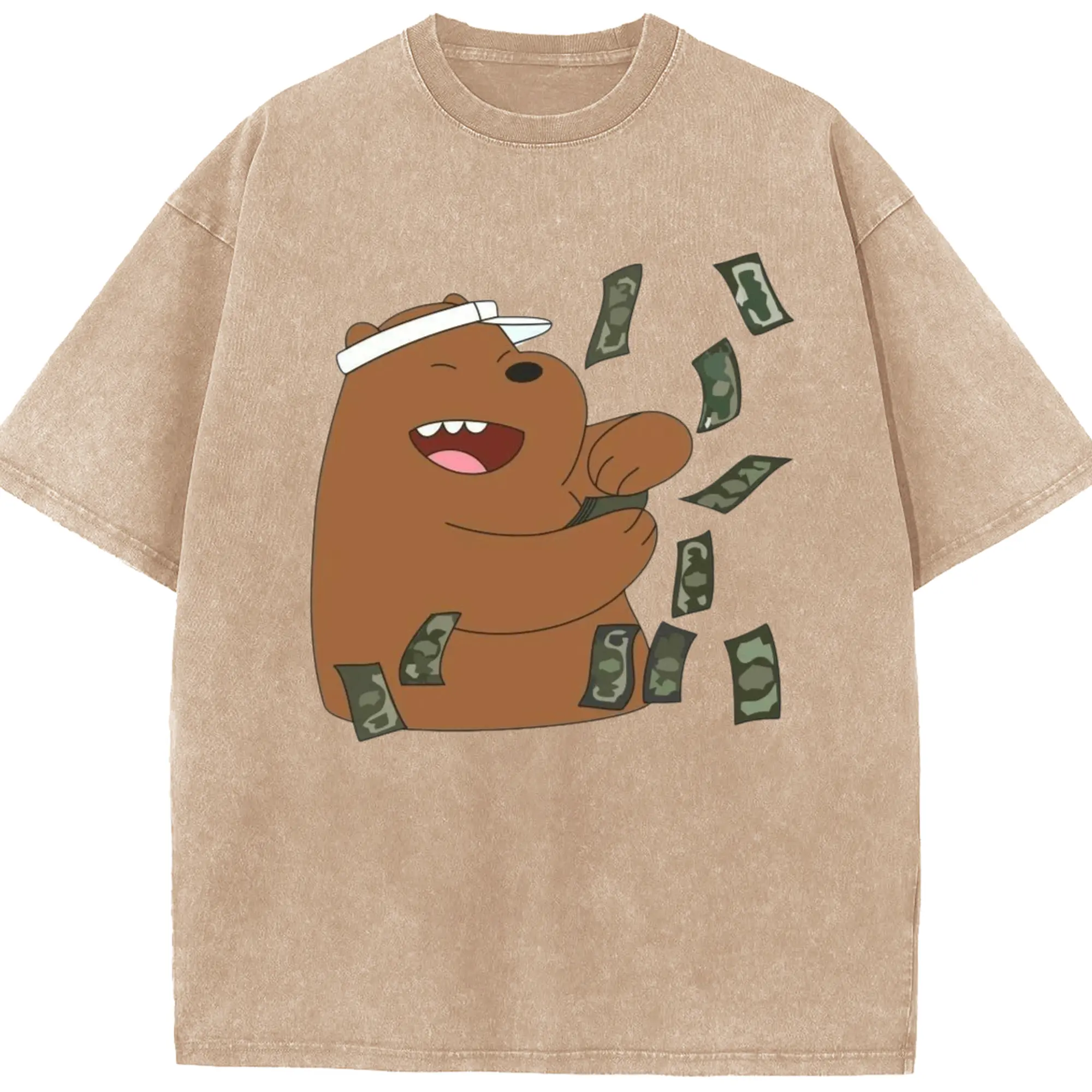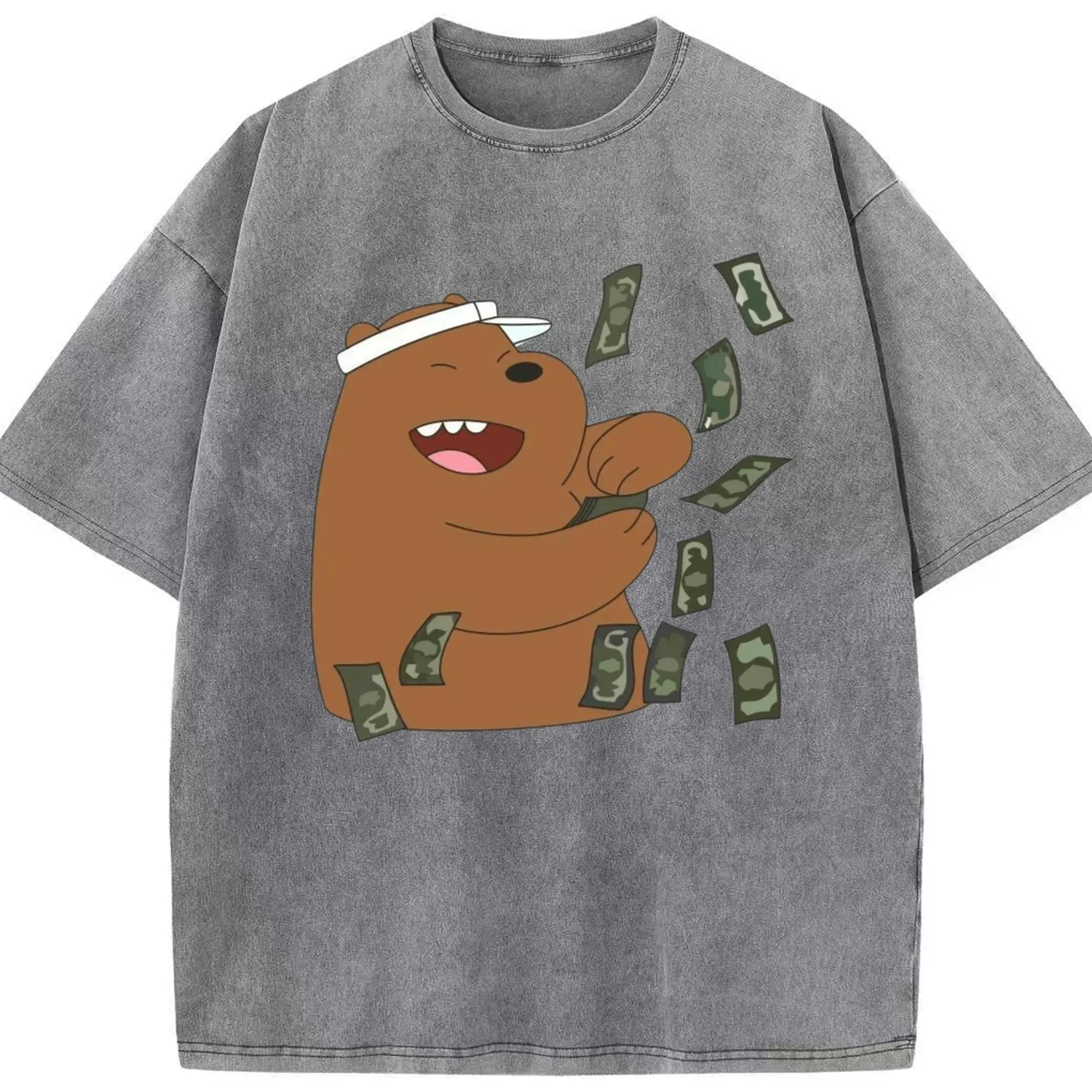 We Bare Bears Grizzly graphic tee - Washed Vintage Look 230g Cotton Oversized T-Shirt With Front Heat Transfer Print – Soft, Lightweight, Stylish Fit – Comfortable Casual Wear For Sports & Everyday Use