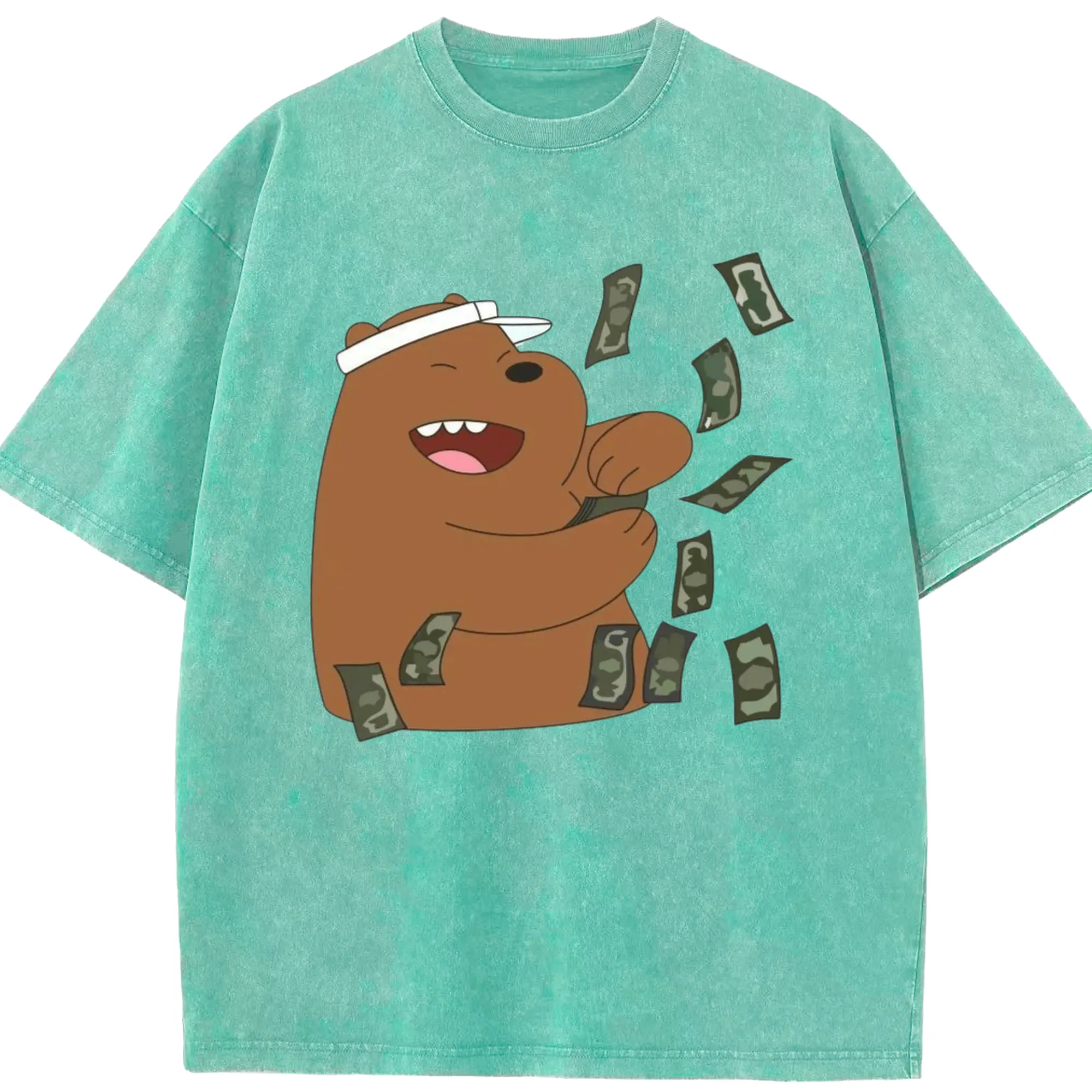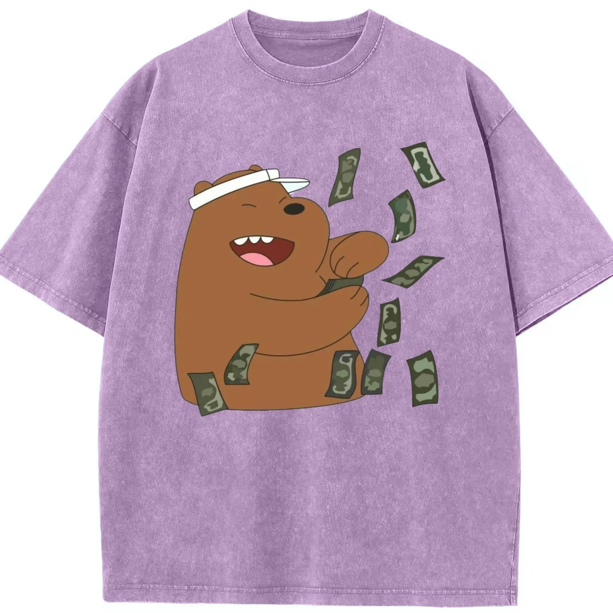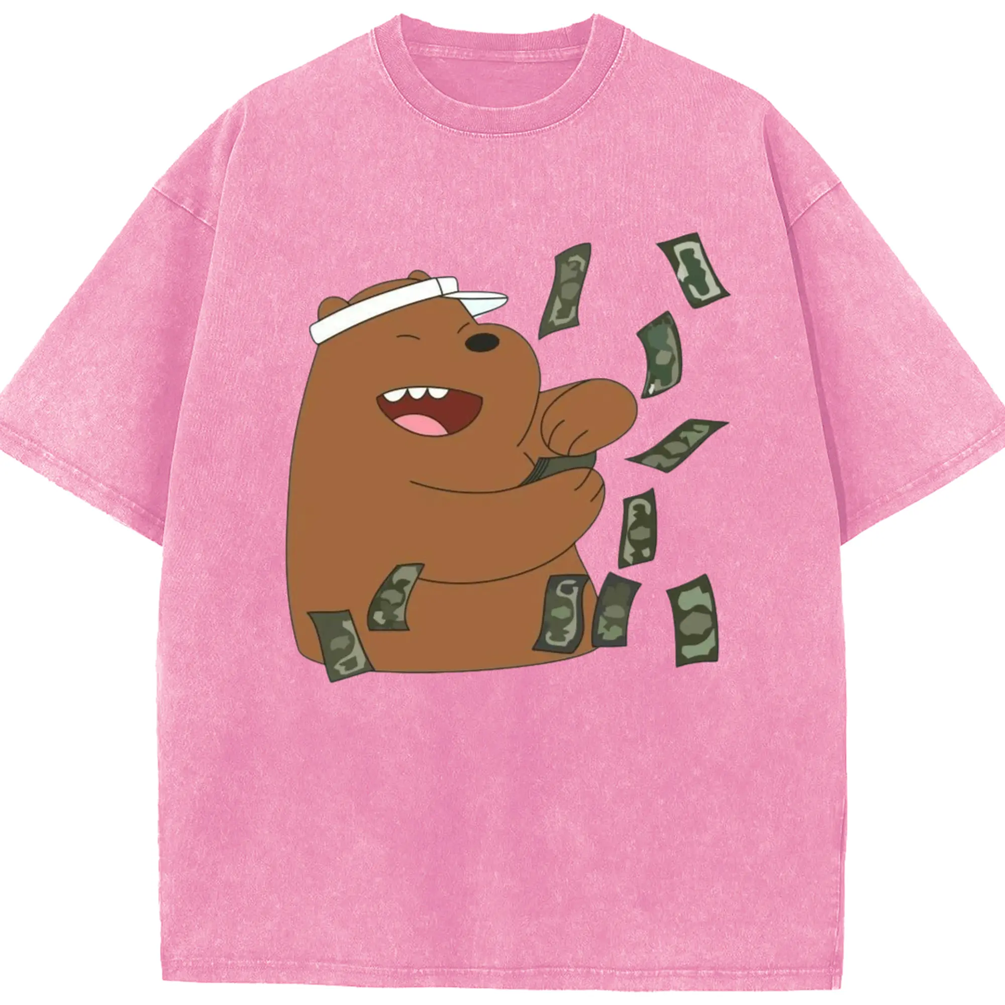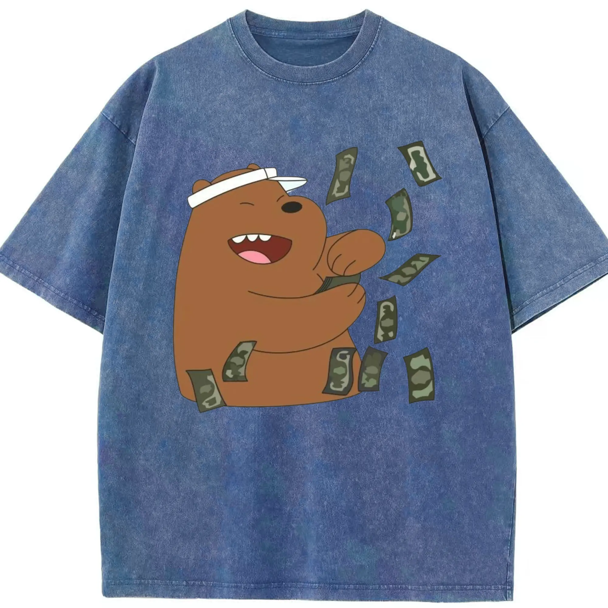 We Bare Bears Grizzly graphic tee - Washed Vintage Look 230g Cotton Oversized T-Shirt With Front Heat Transfer Print – Soft, Lightweight, Stylish Fit – Comfortable Casual Wear For Sports & Everyday Use