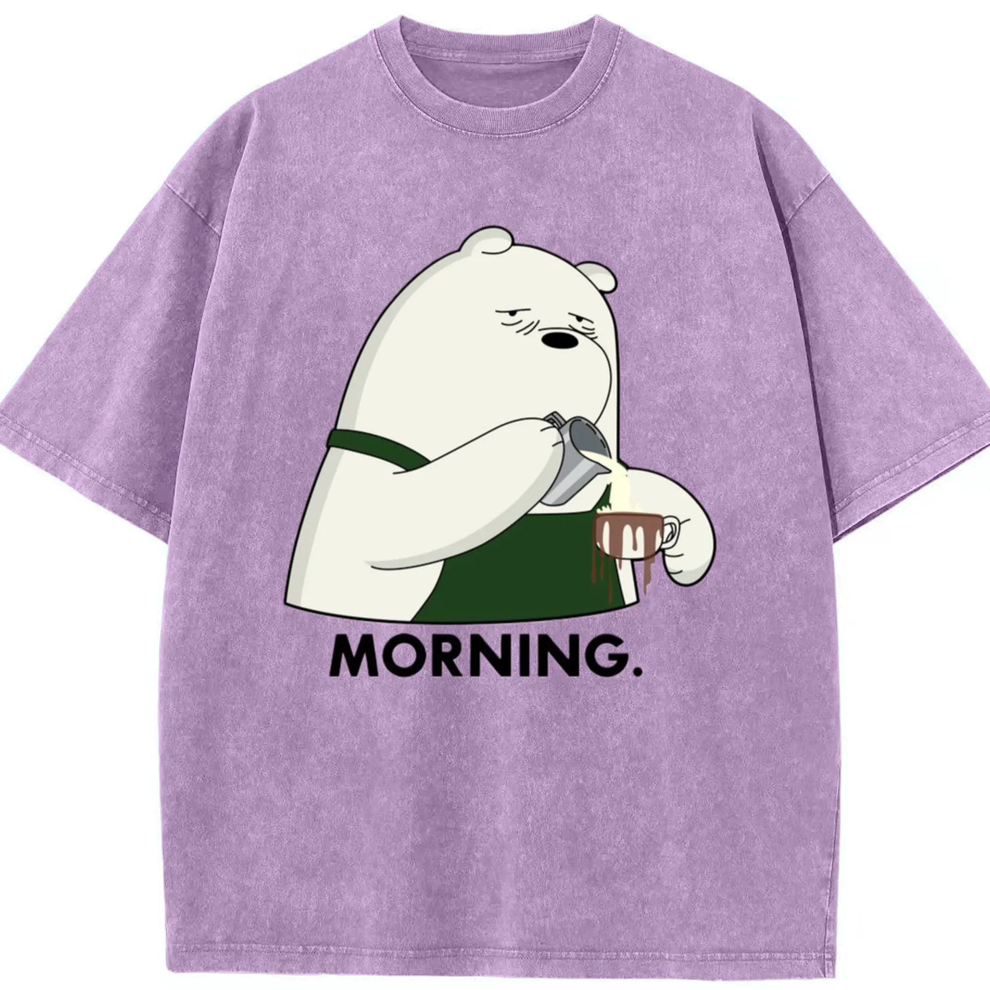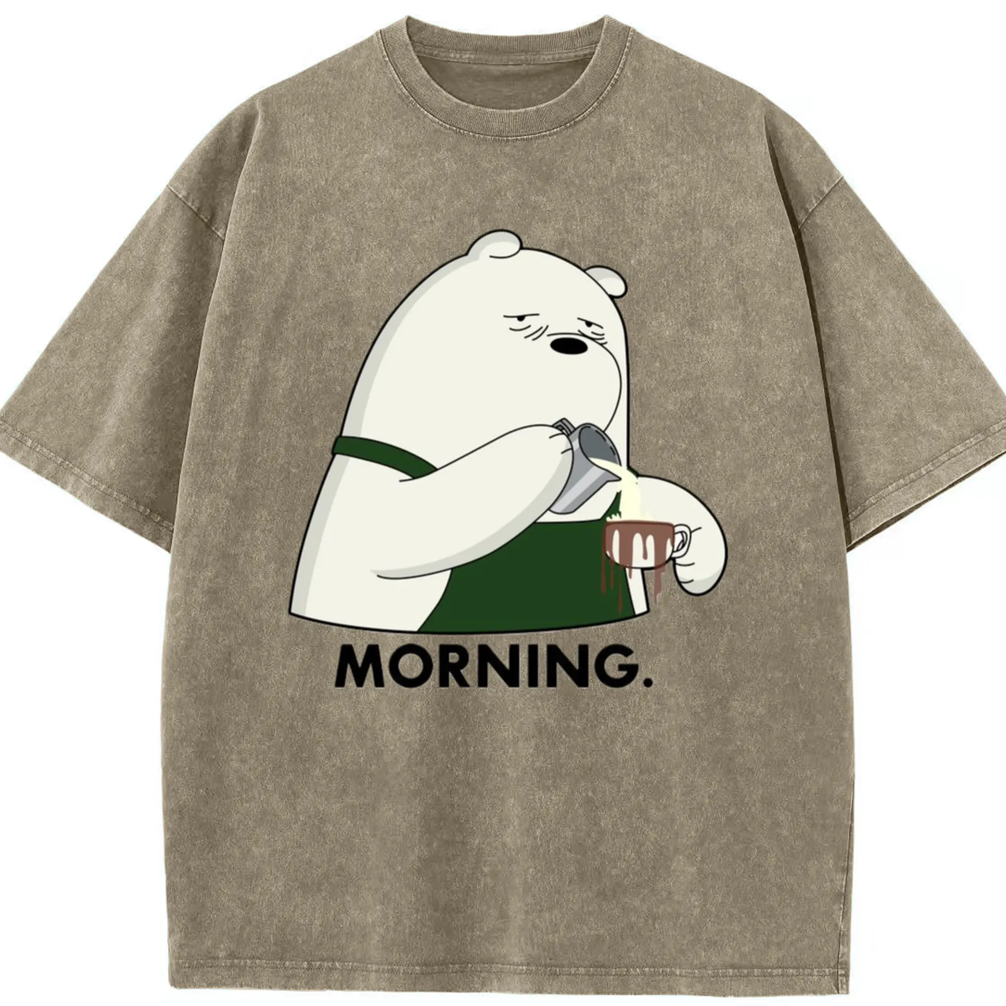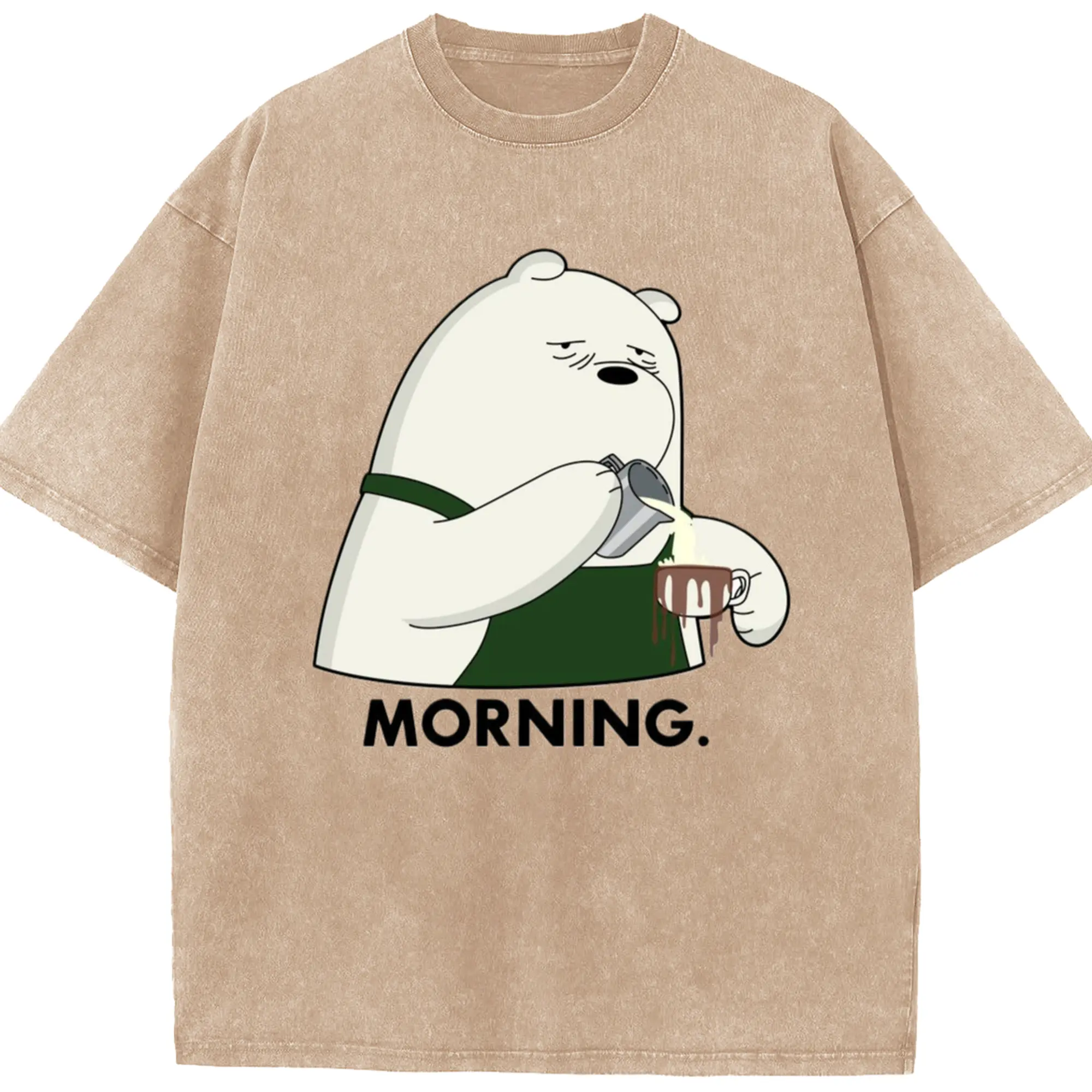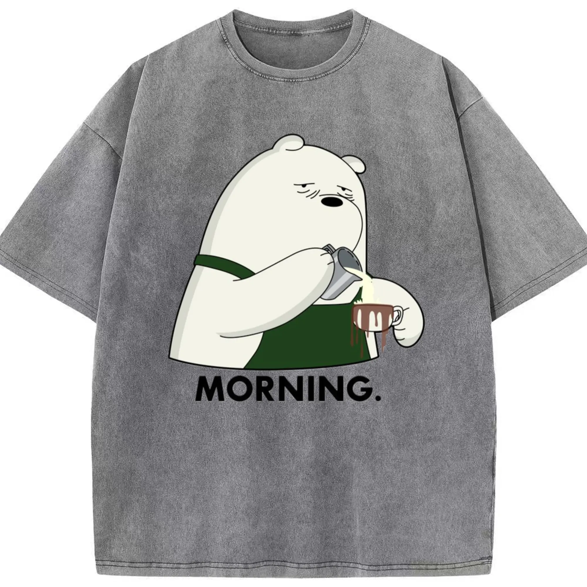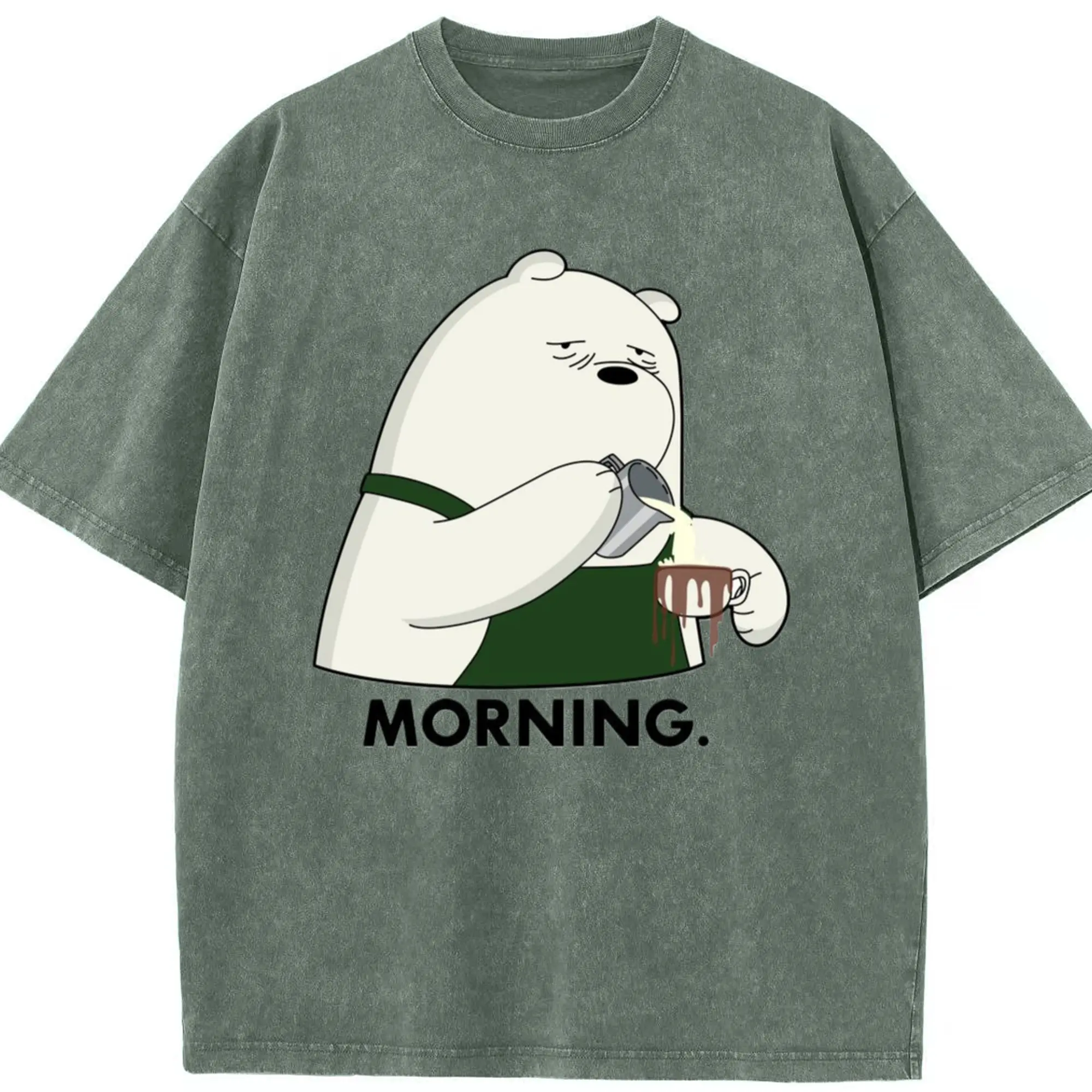 We Bare Bears Ice Bear face T-Shirt - Washed Vintage Look 230g Cotton Oversized T-Shirt With Front Heat Transfer Print – Soft, Lightweight, Stylish Fit – Comfortable Casual Wear For Sports & Everyday Use