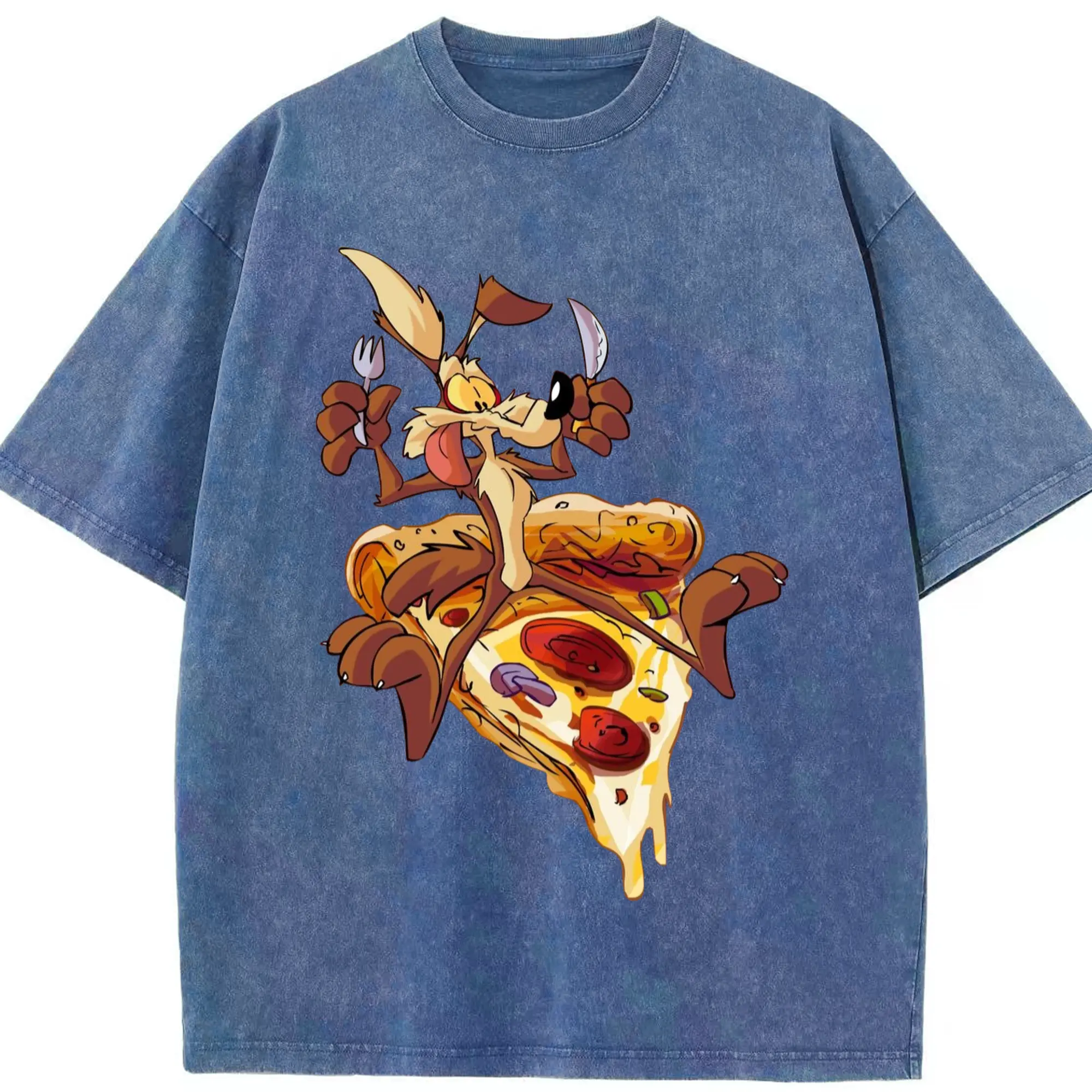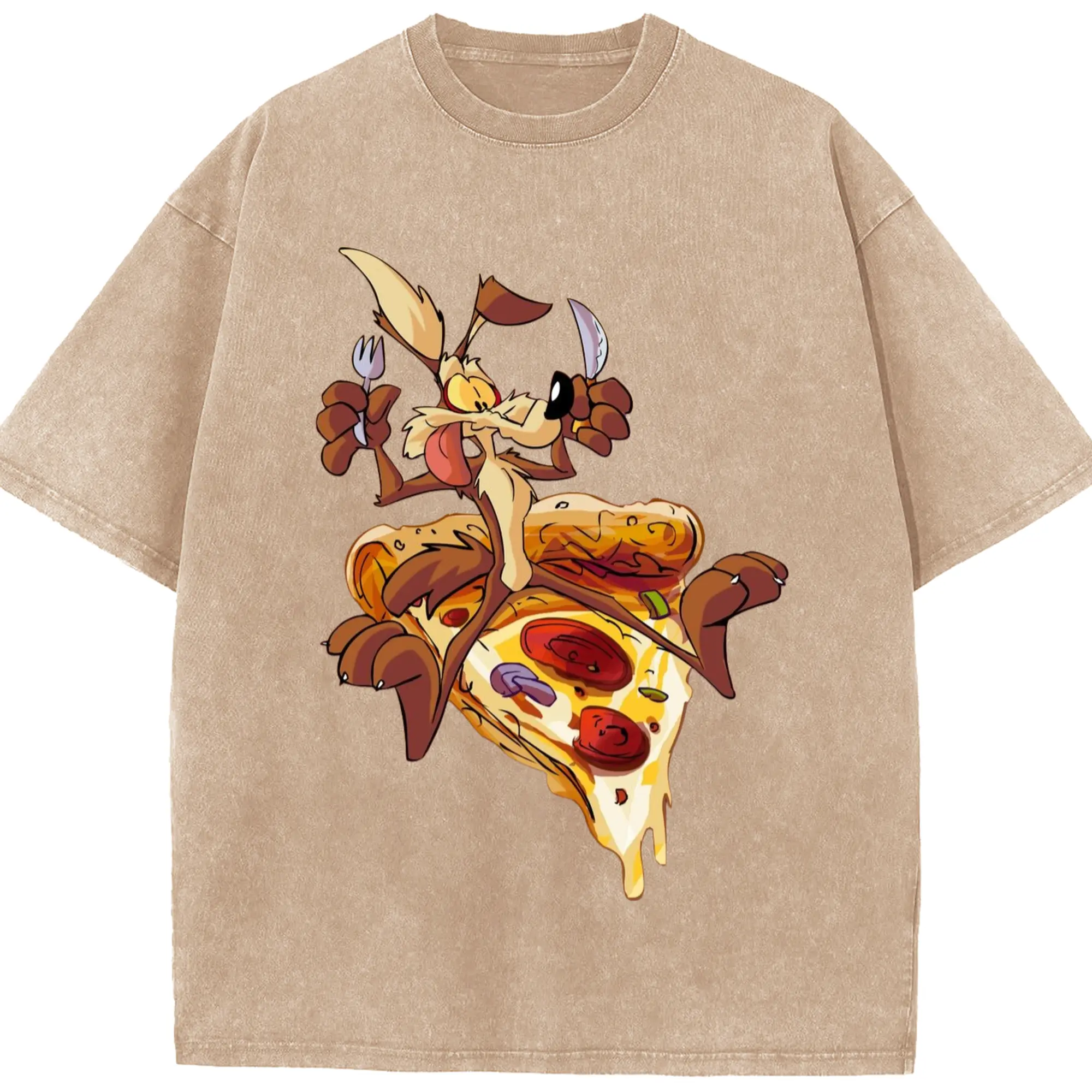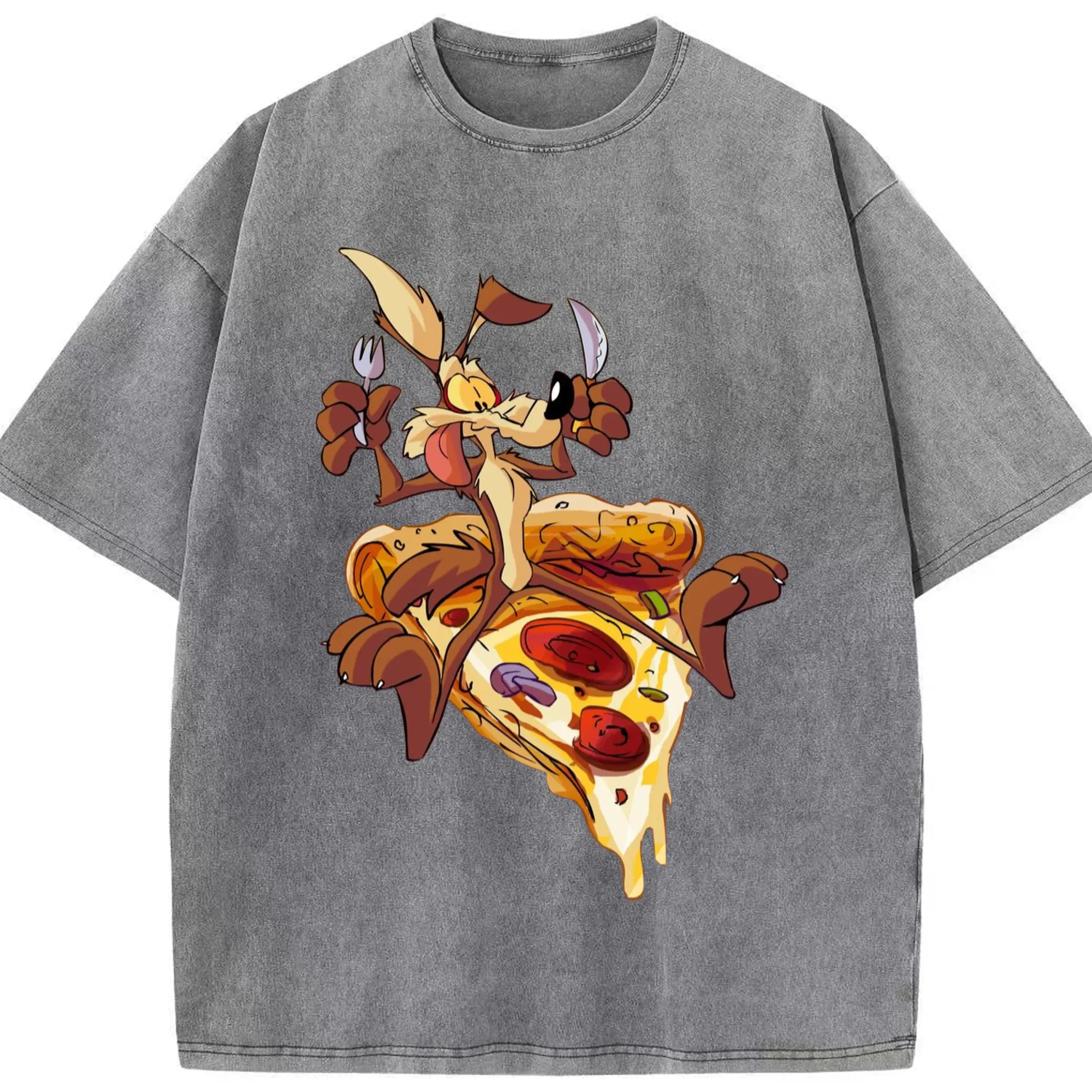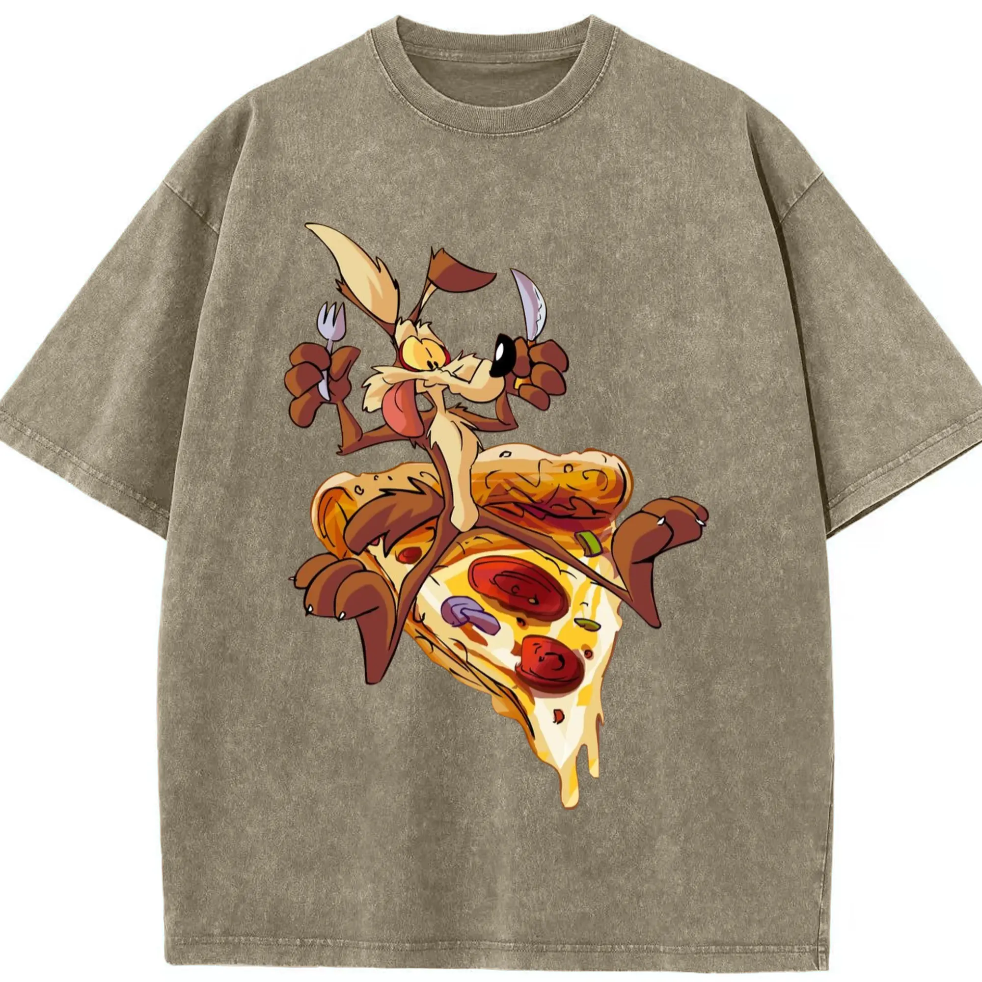 Wile e coyote funny tee - Washed Vintage Look 230g Cotton Oversized T-Shirt With Front Heat Transfer Print – Soft, Lightweight, Stylish Fit – Comfortable Casual Wear For Sports & Everyday Use