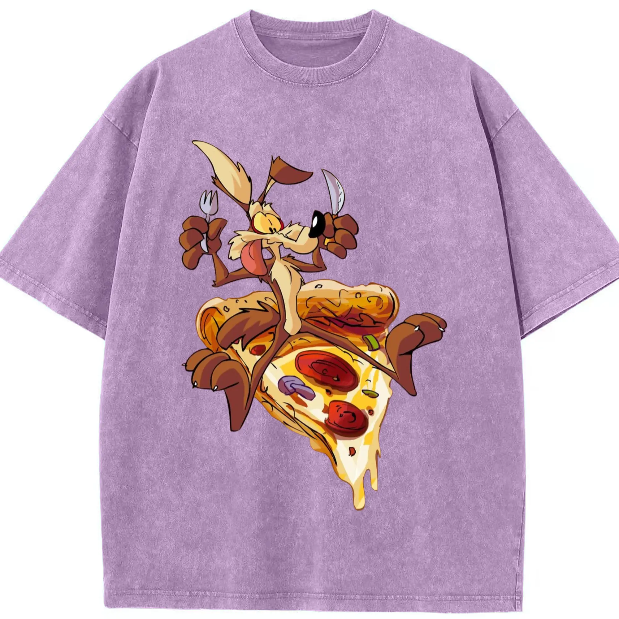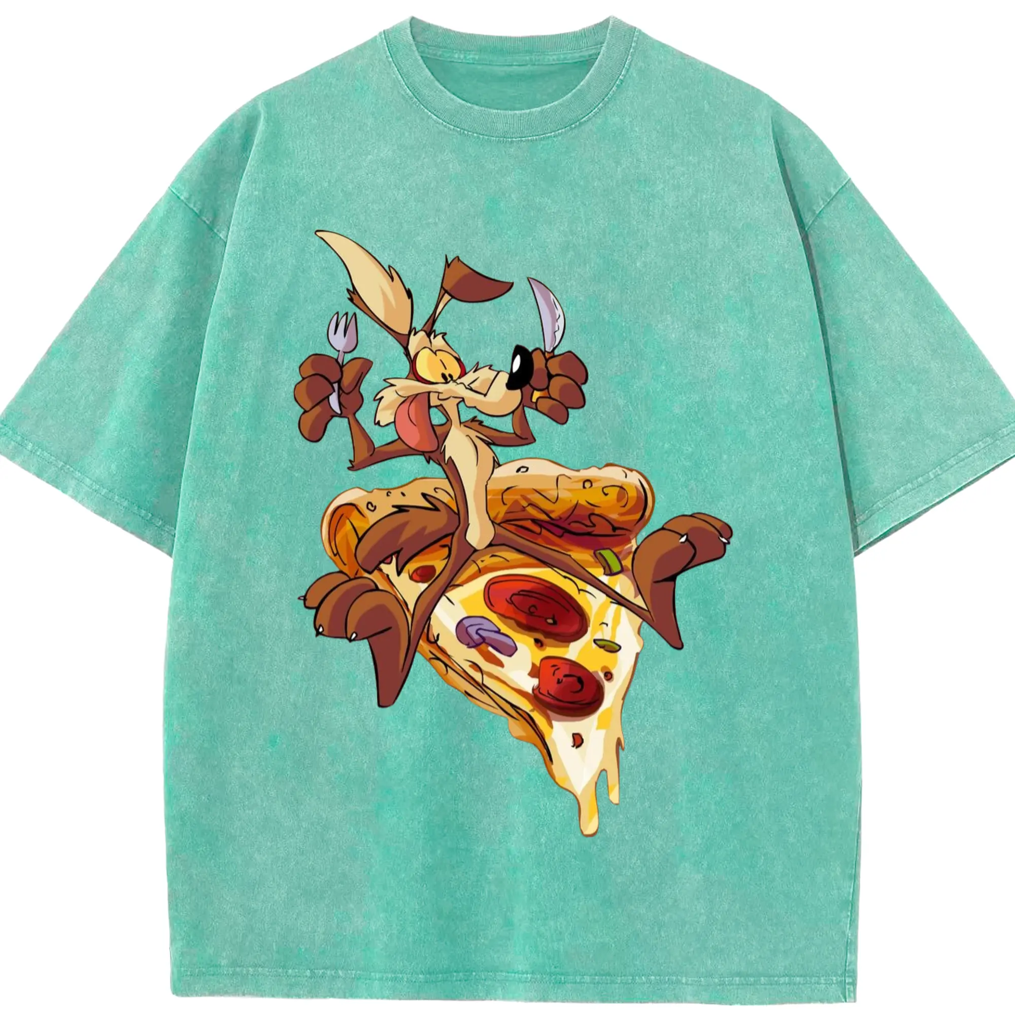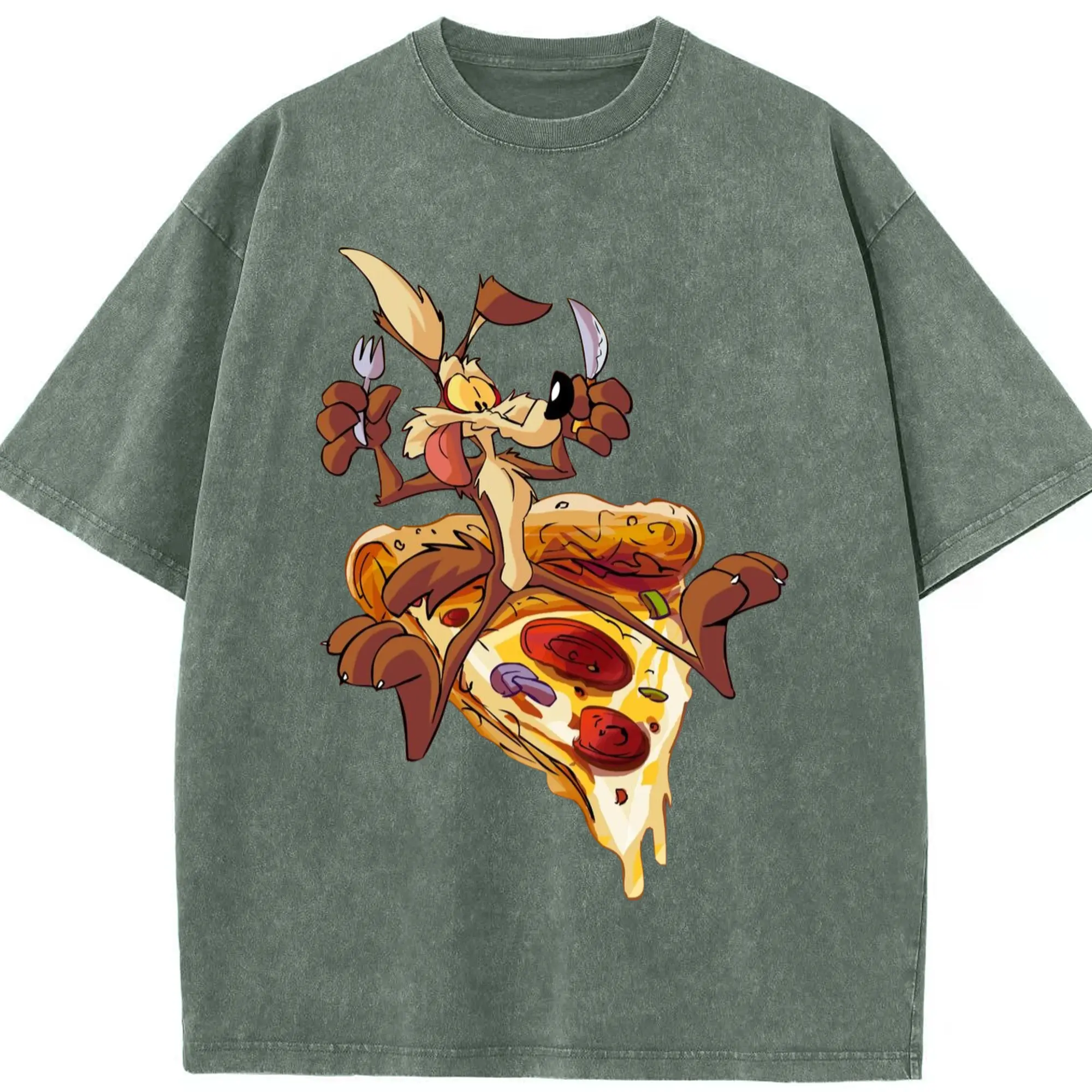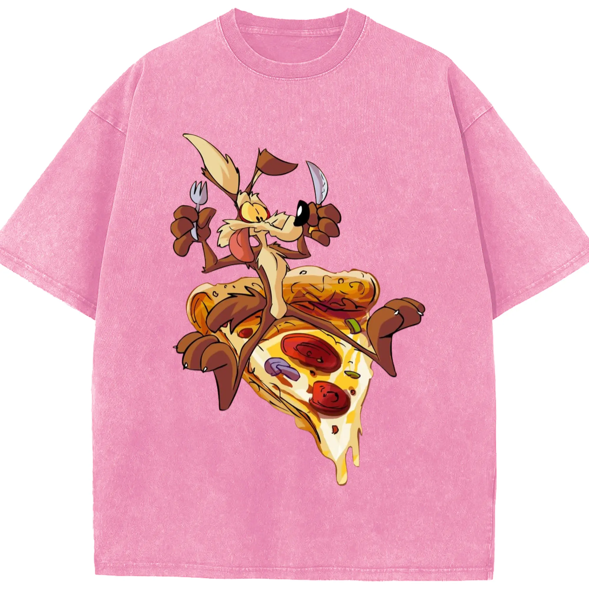 Wile e coyote funny tee - Washed Vintage Look 230g Cotton Oversized T-Shirt With Front Heat Transfer Print – Soft, Lightweight, Stylish Fit – Comfortable Casual Wear For Sports & Everyday Use