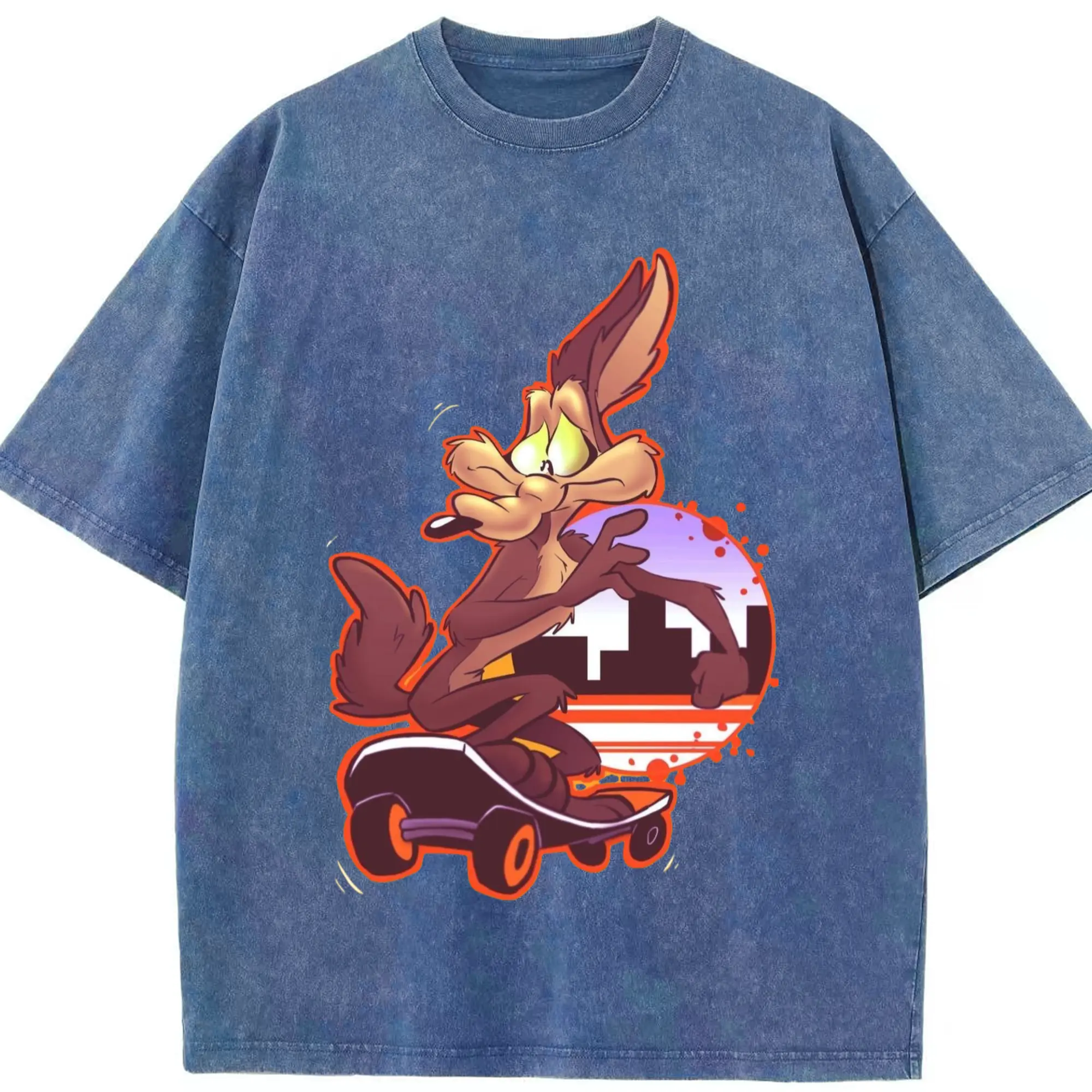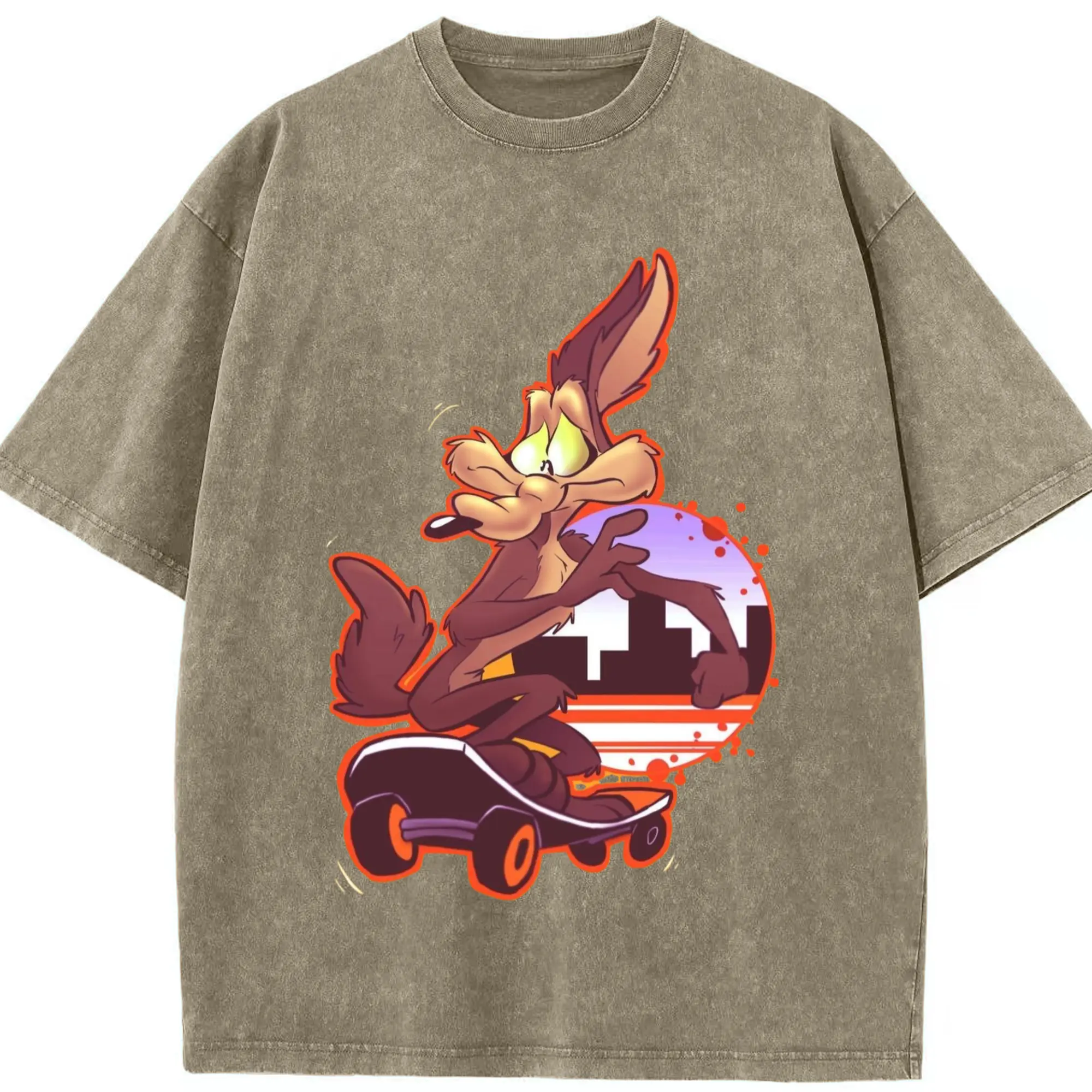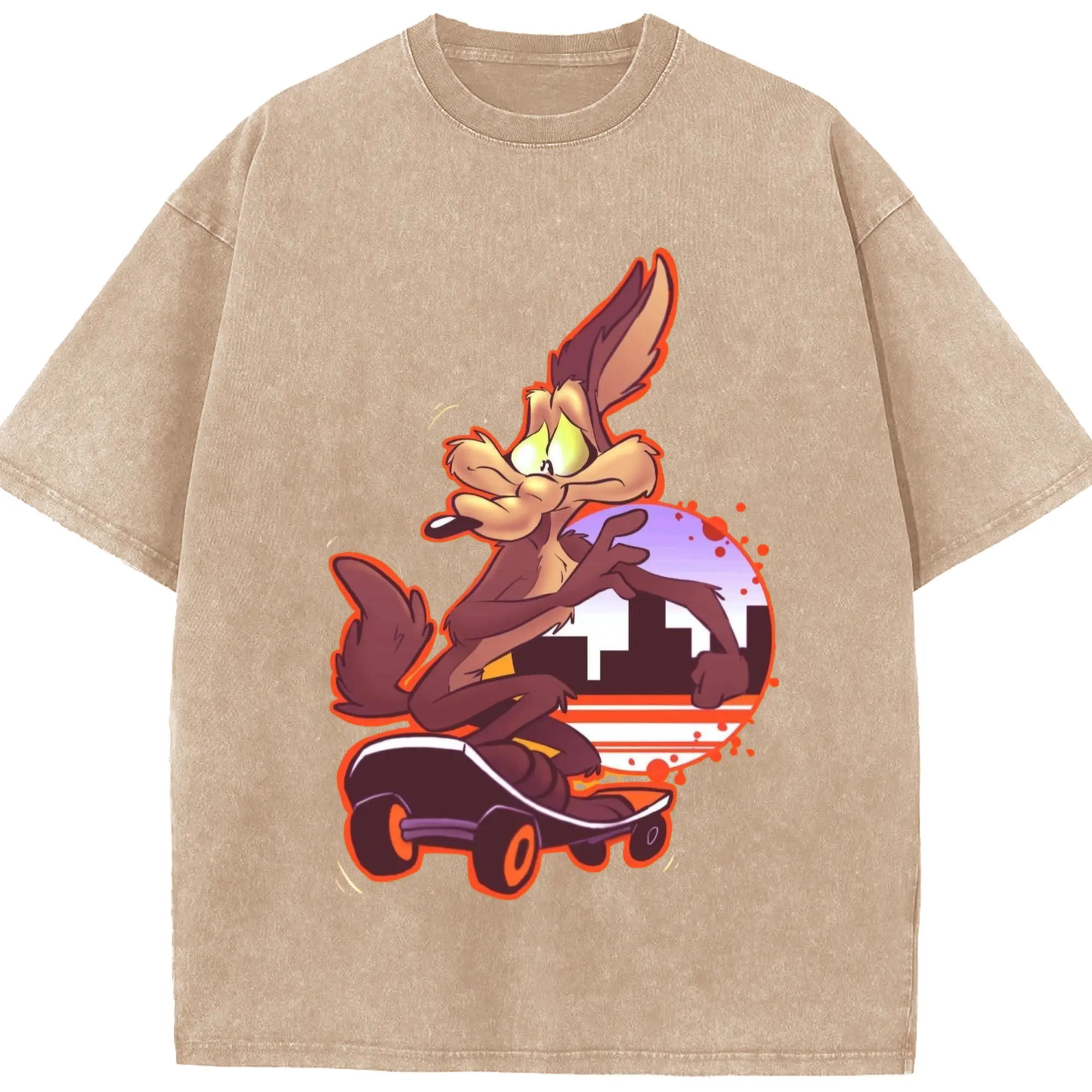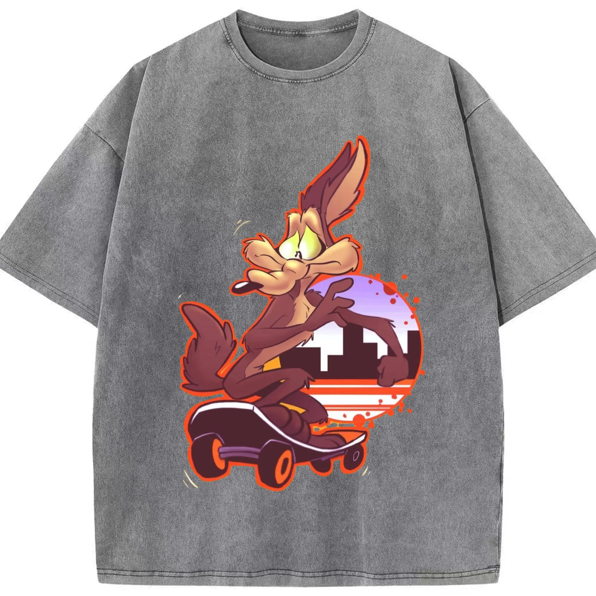 Wile E Coyote t-shirt - Washed Vintage Look 230g Cotton Oversized T-Shirt With Front Heat Transfer Print – Soft, Lightweight, Stylish Fit – Comfortable Casual Wear For Sports & Everyday Use