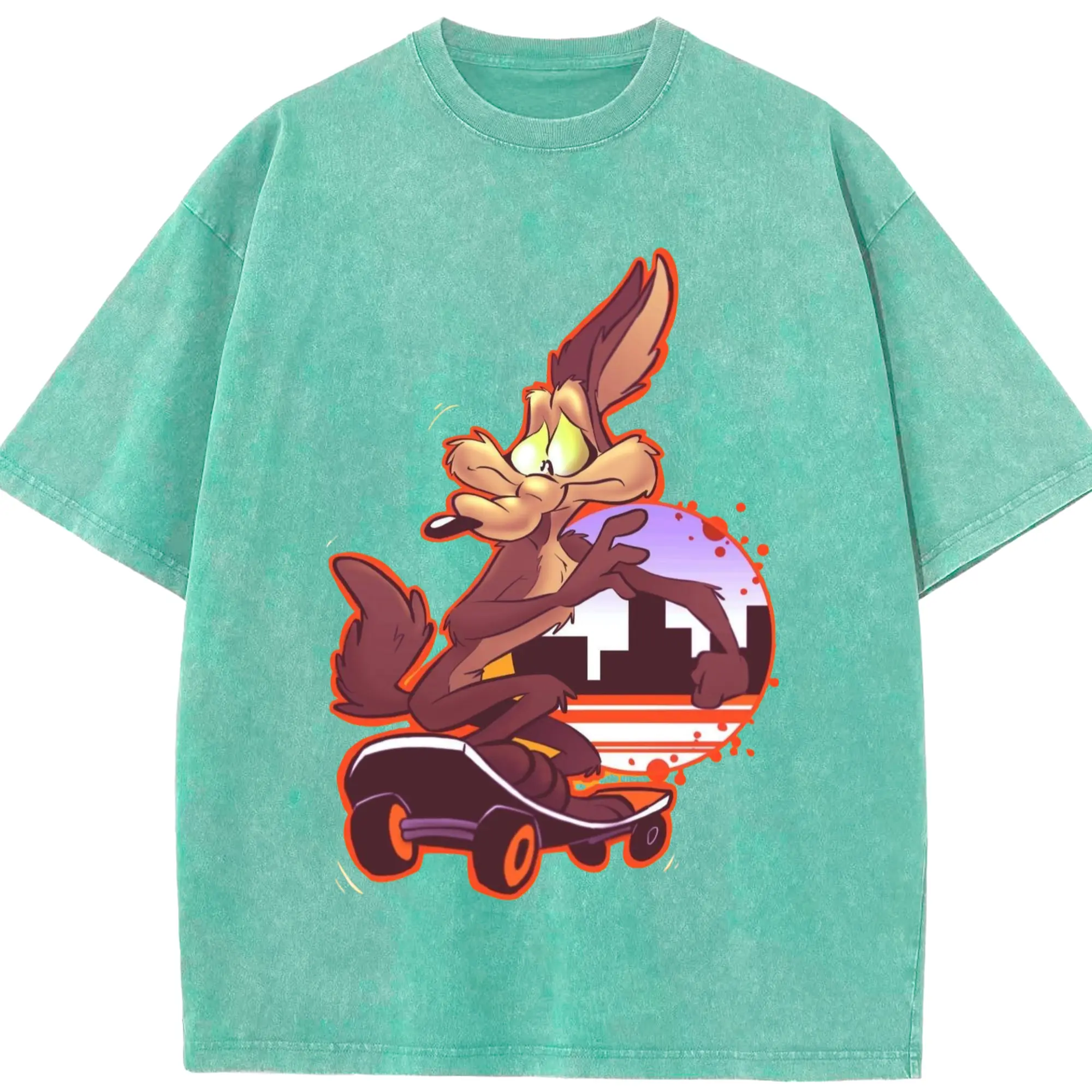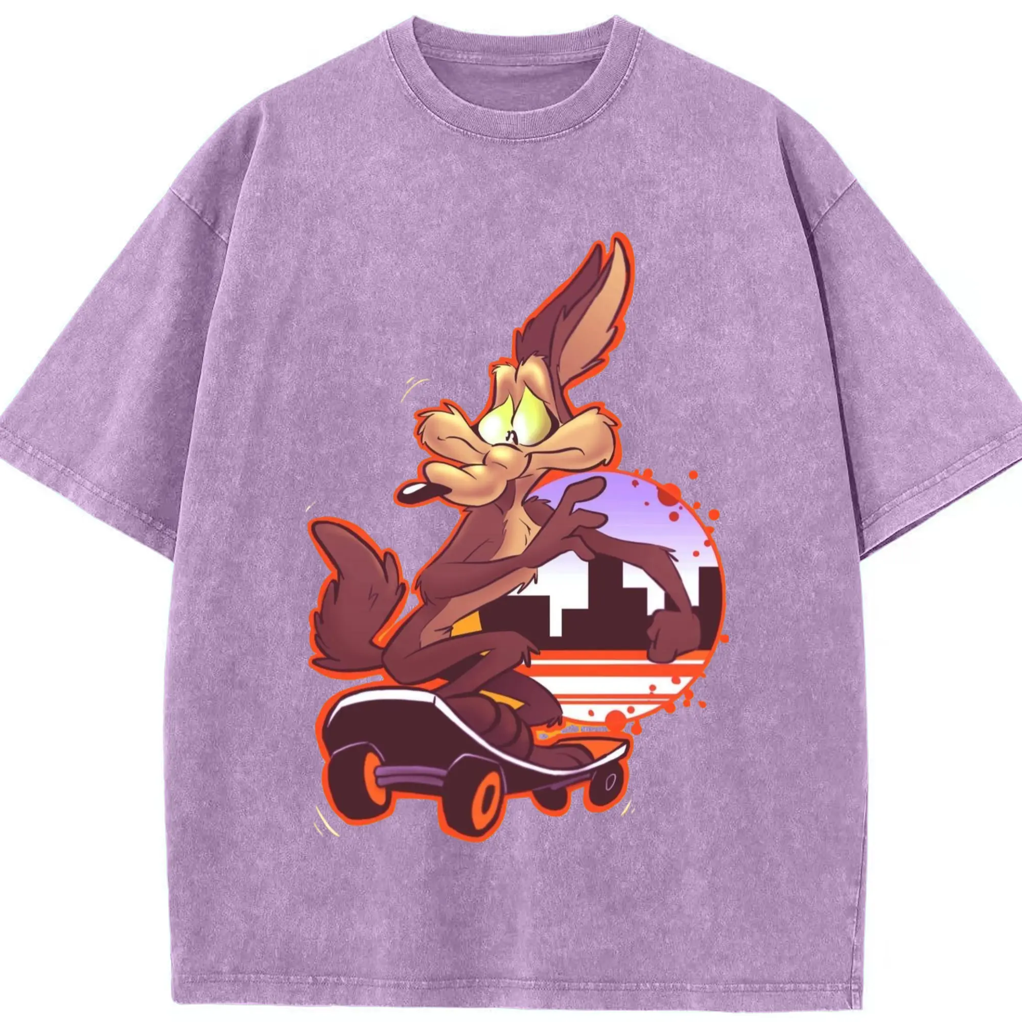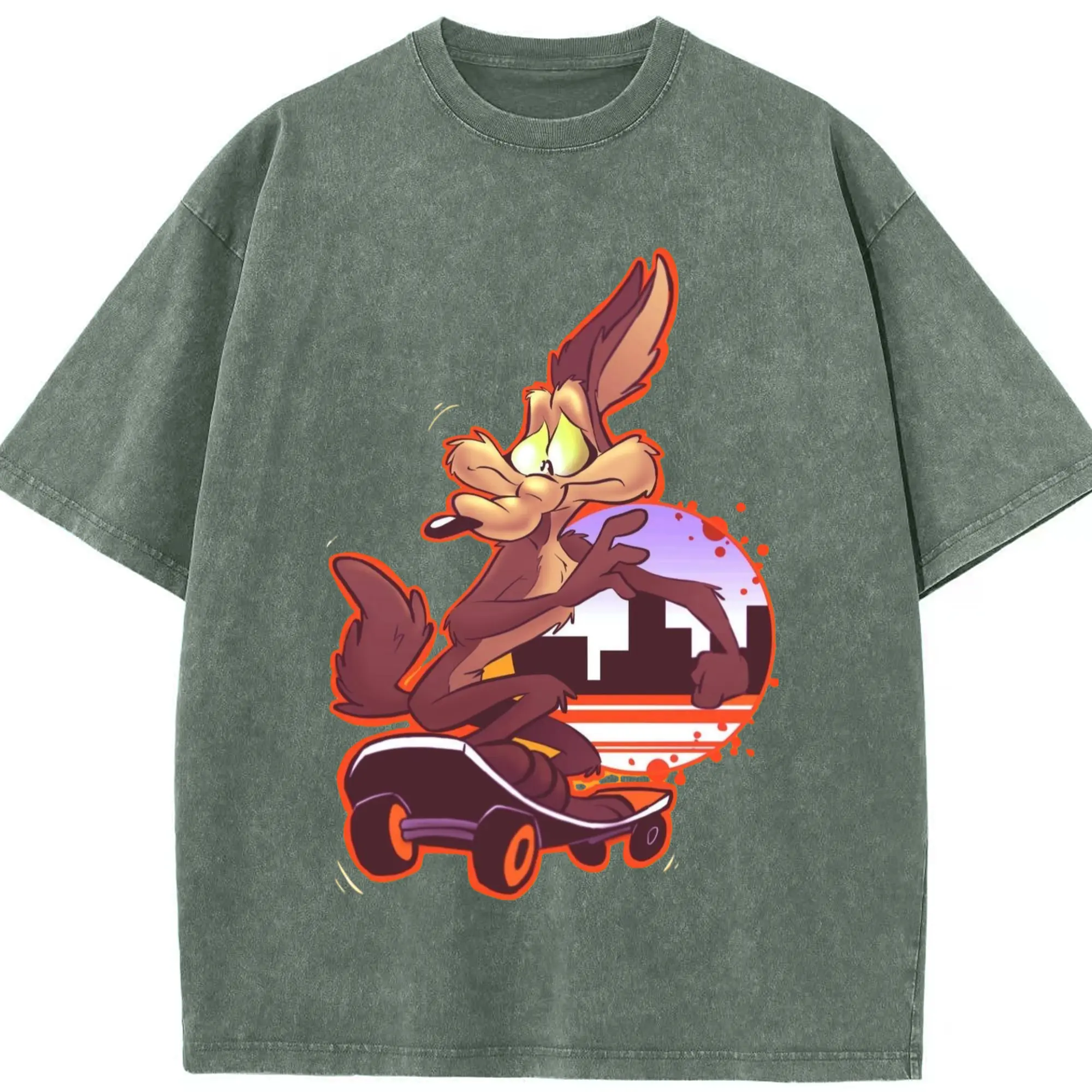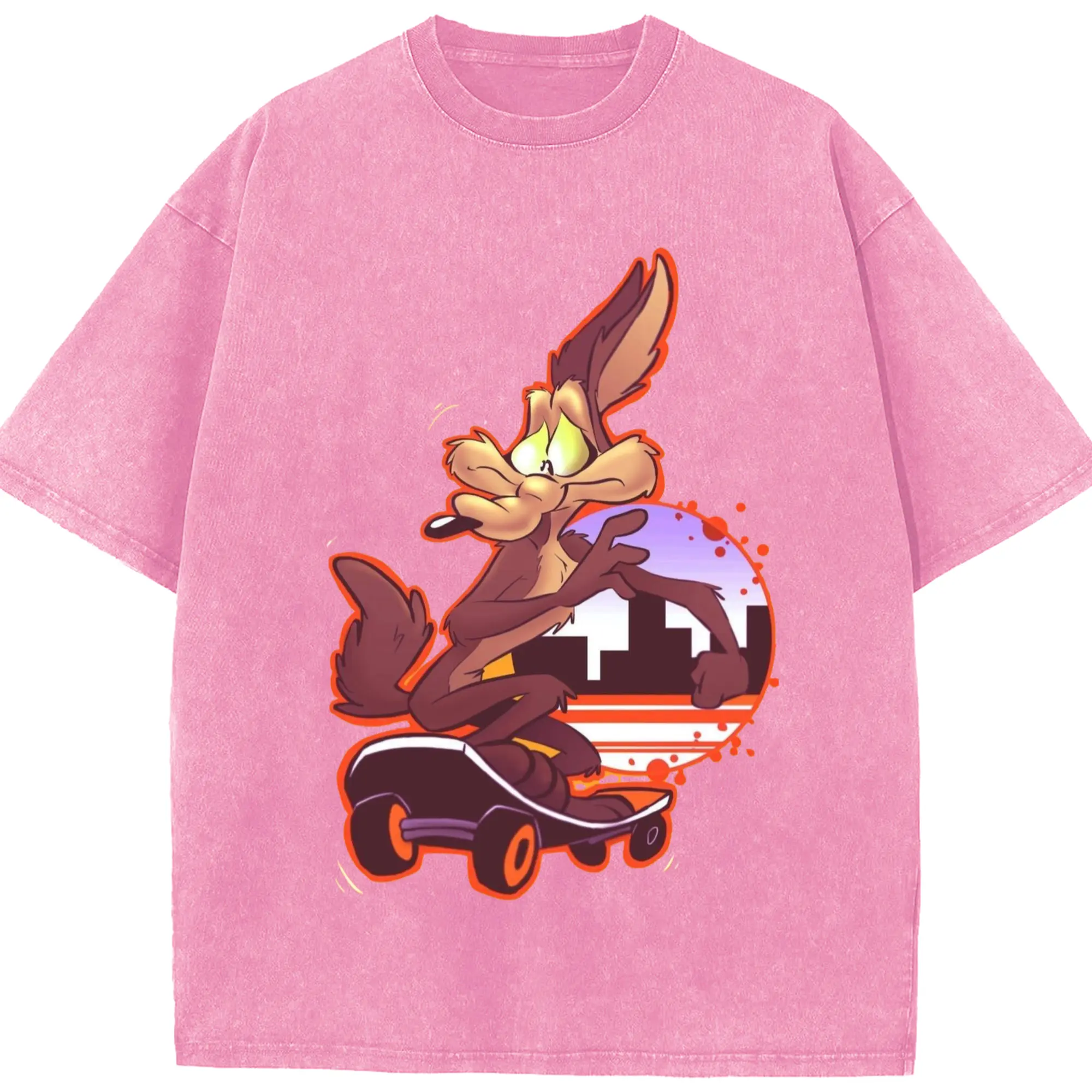 Wile E Coyote t-shirt - Washed Vintage Look 230g Cotton Oversized T-Shirt With Front Heat Transfer Print – Soft, Lightweight, Stylish Fit – Comfortable Casual Wear For Sports & Everyday Use