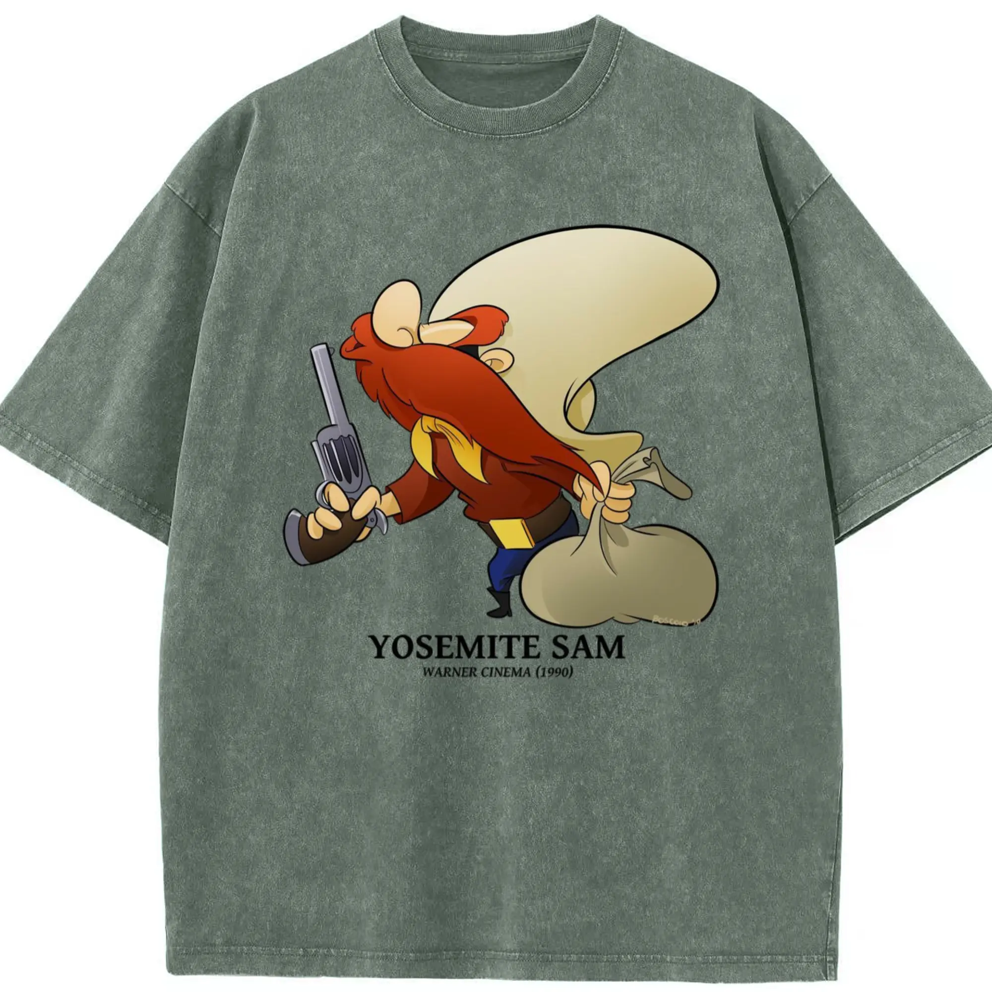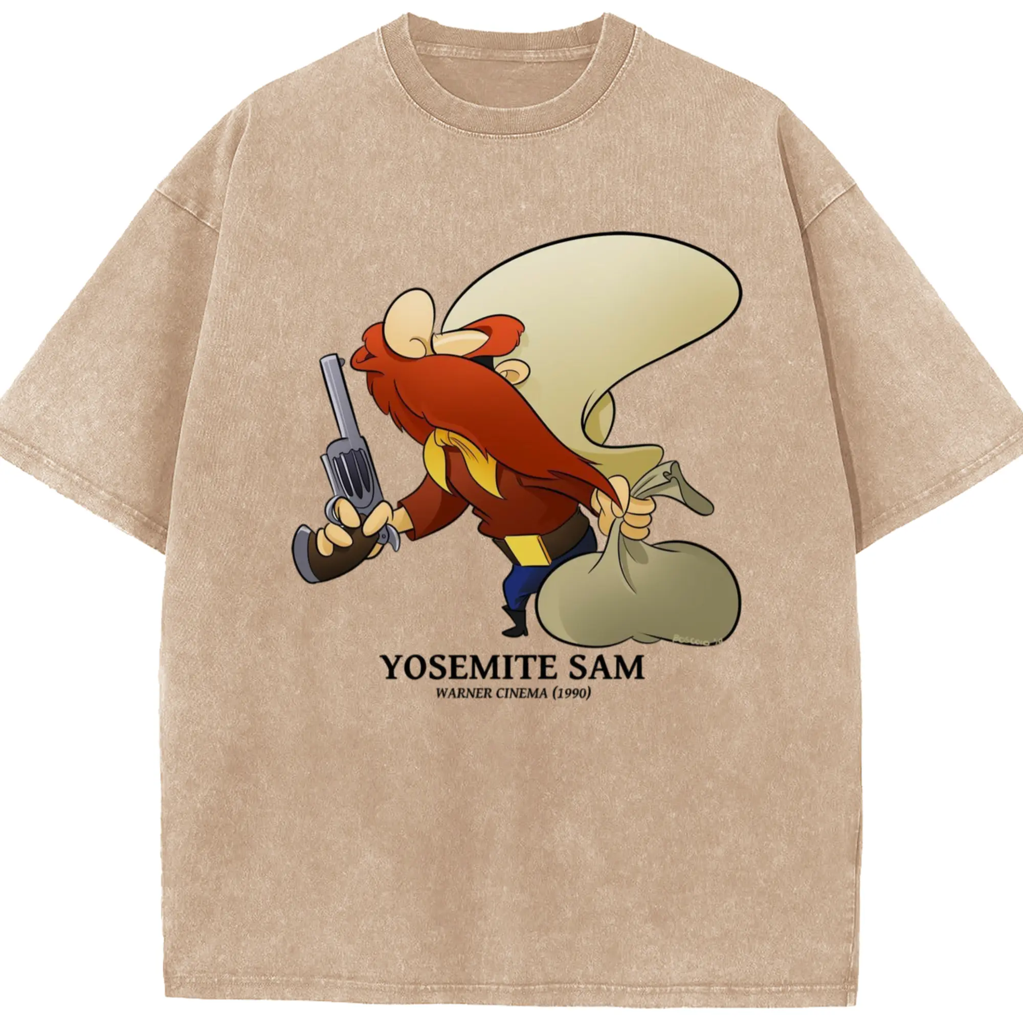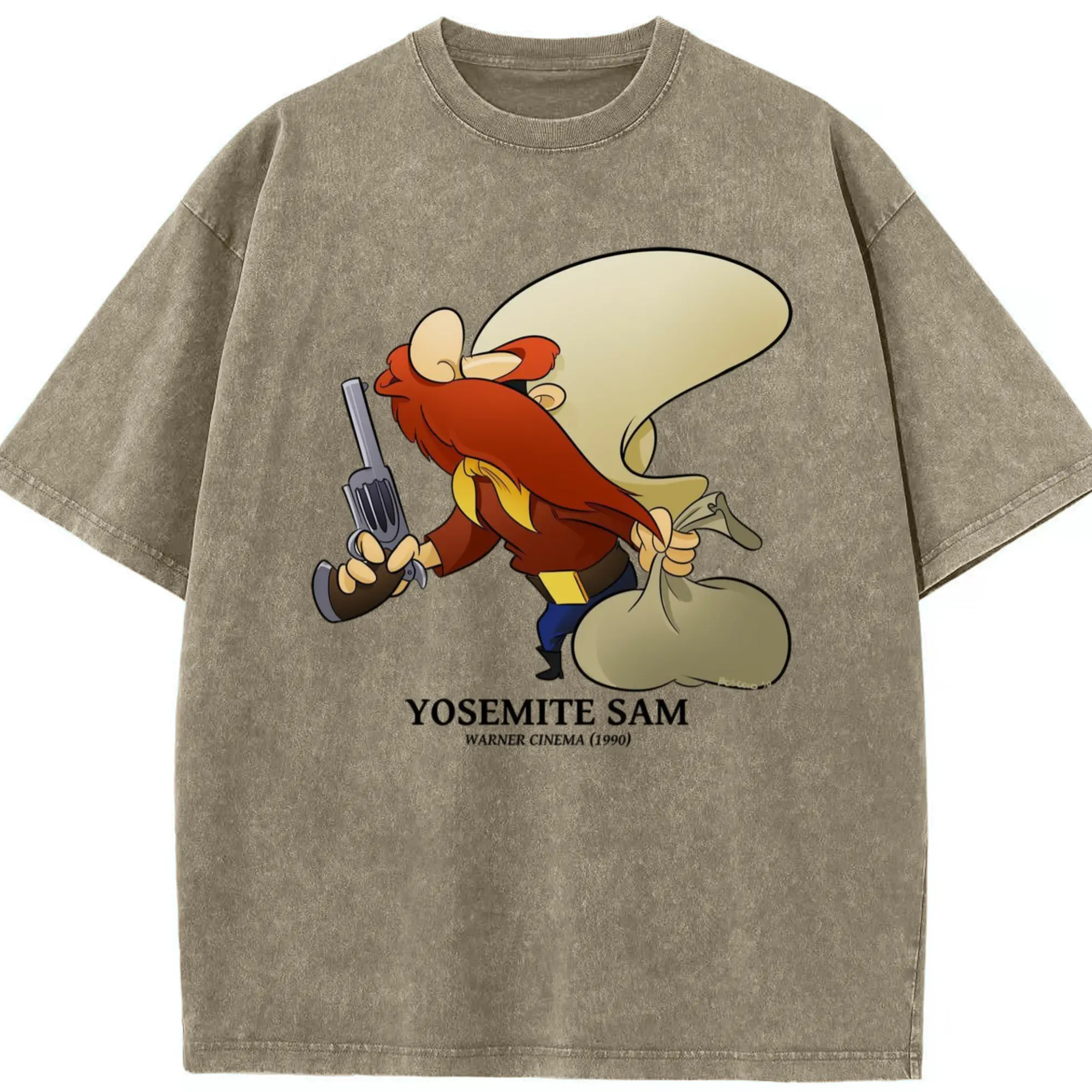 Yosemite sam t shirt - Washed Vintage Look 230g Cotton Oversized T-Shirt With Front Heat Transfer Print – Soft, Lightweight, Stylish Fit – Comfortable Casual Wear For Sports & Everyday Use