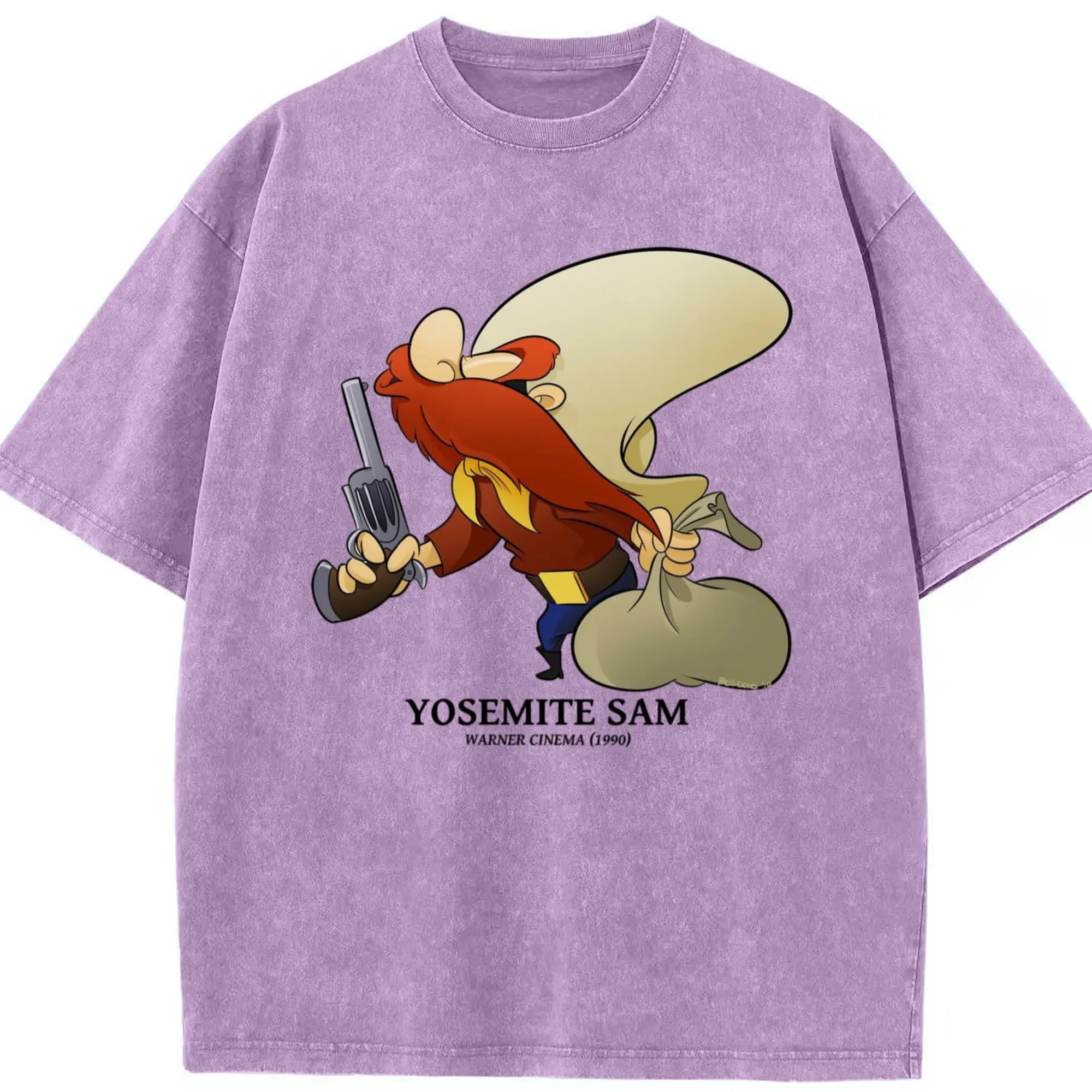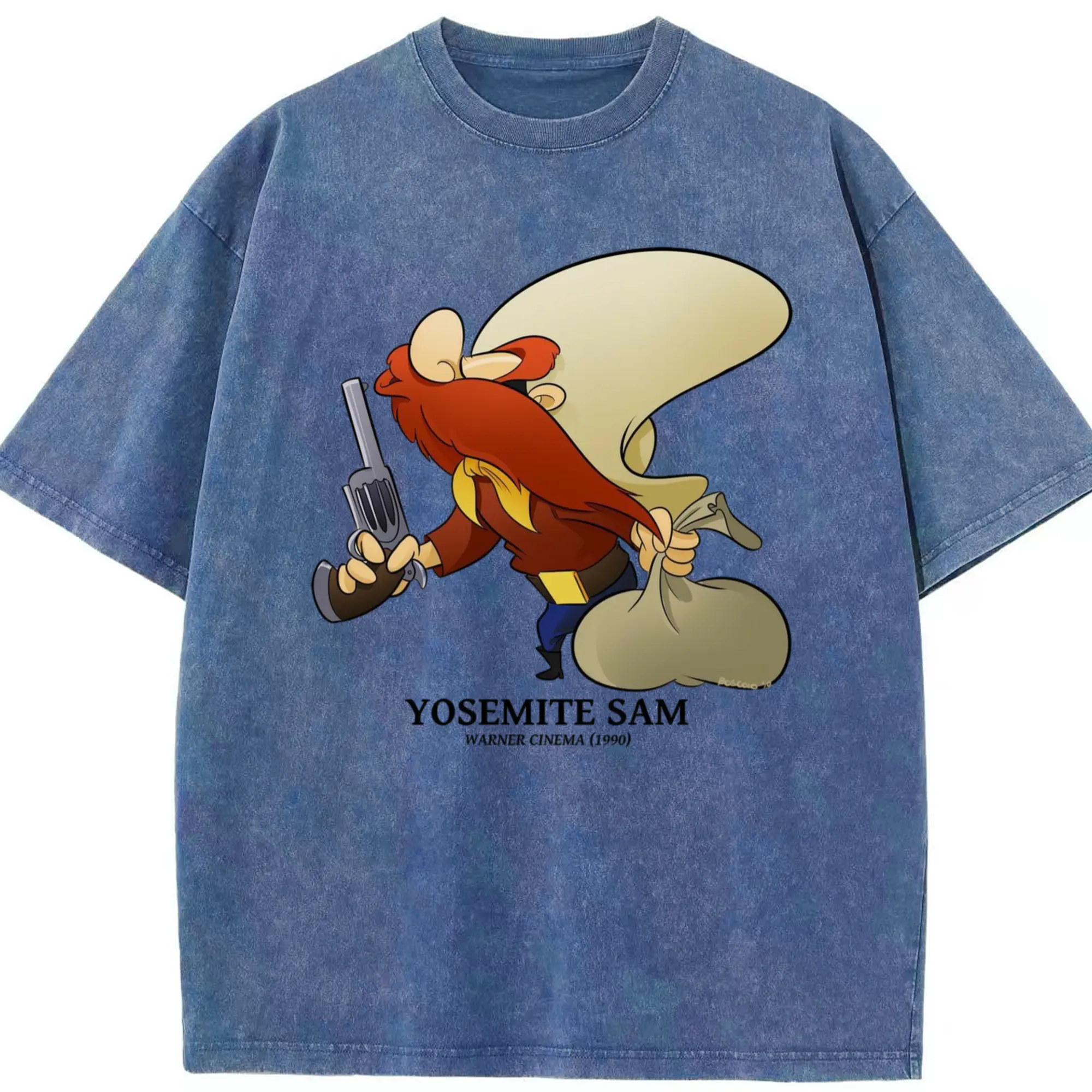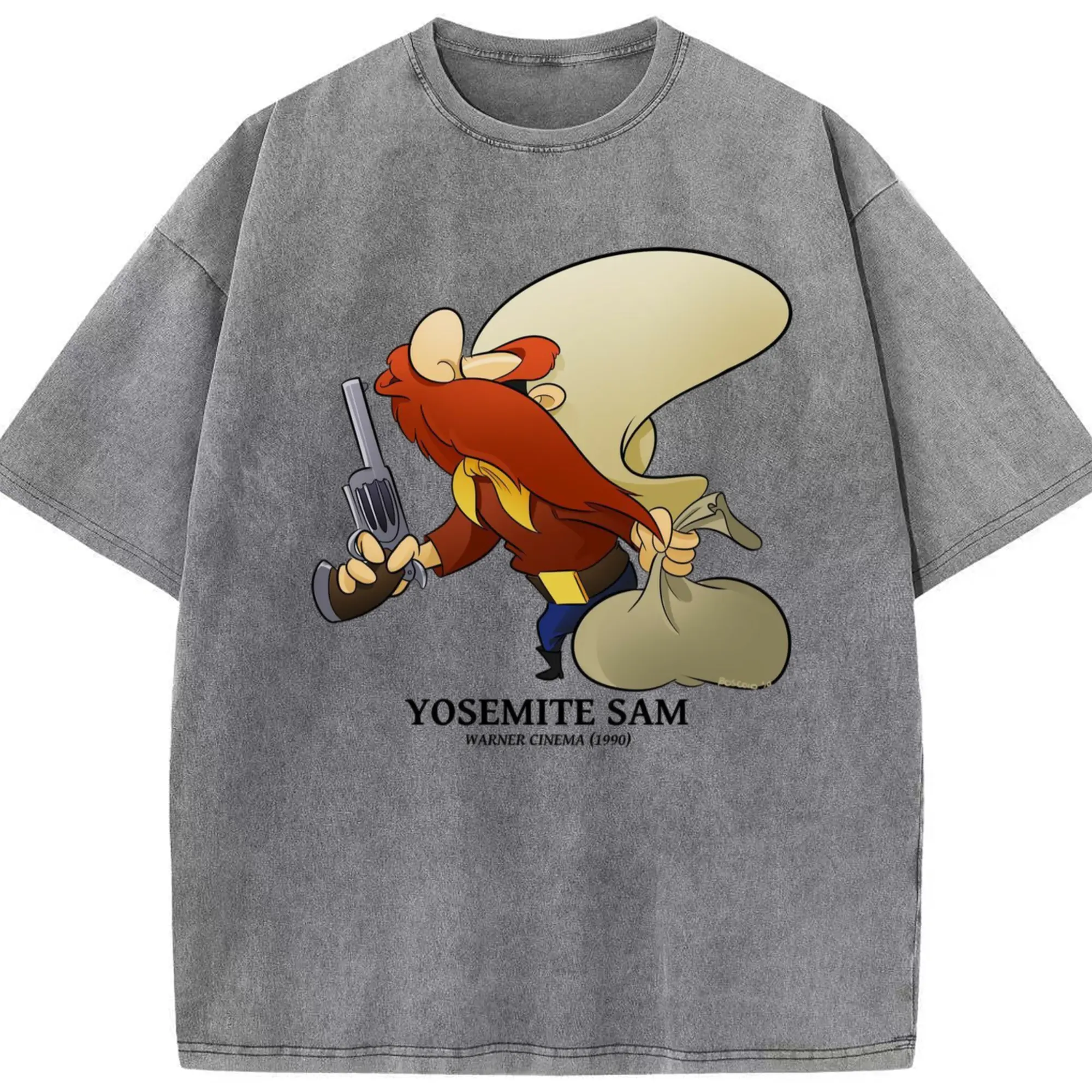 Yosemite sam t shirt - Washed Vintage Look 230g Cotton Oversized T-Shirt With Front Heat Transfer Print – Soft, Lightweight, Stylish Fit – Comfortable Casual Wear For Sports & Everyday Use