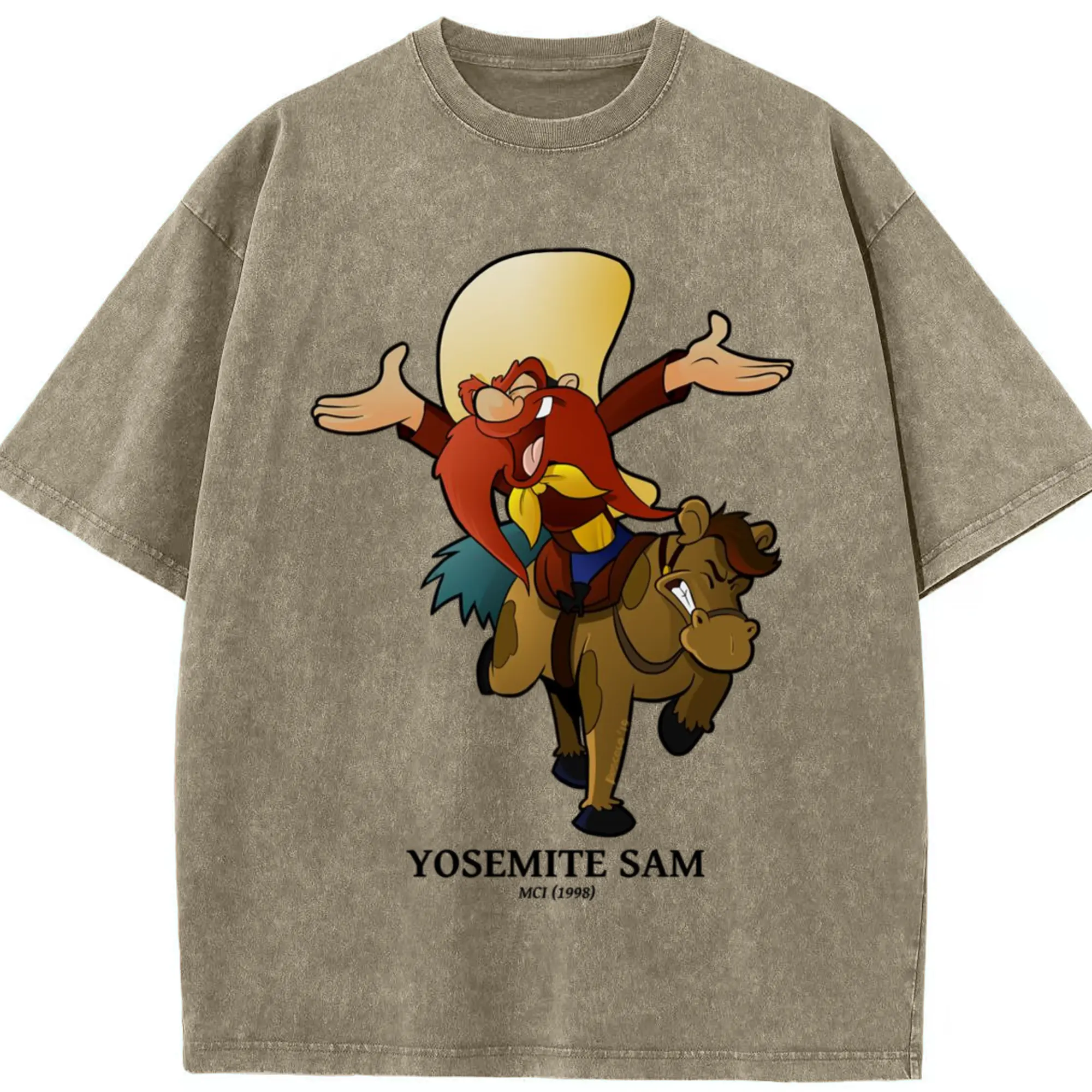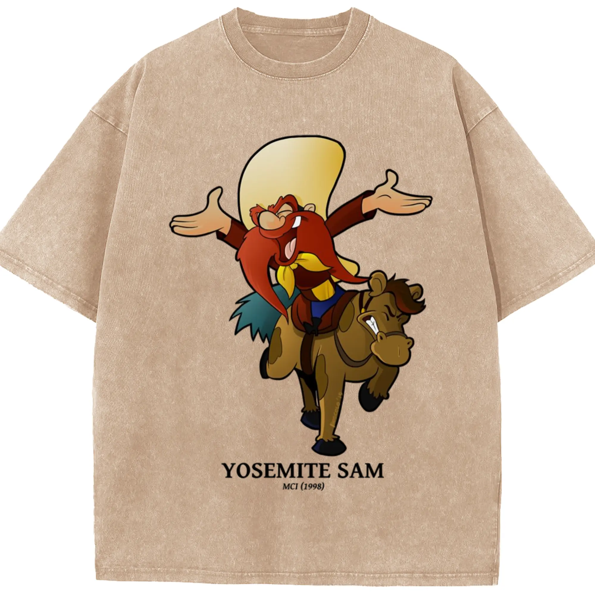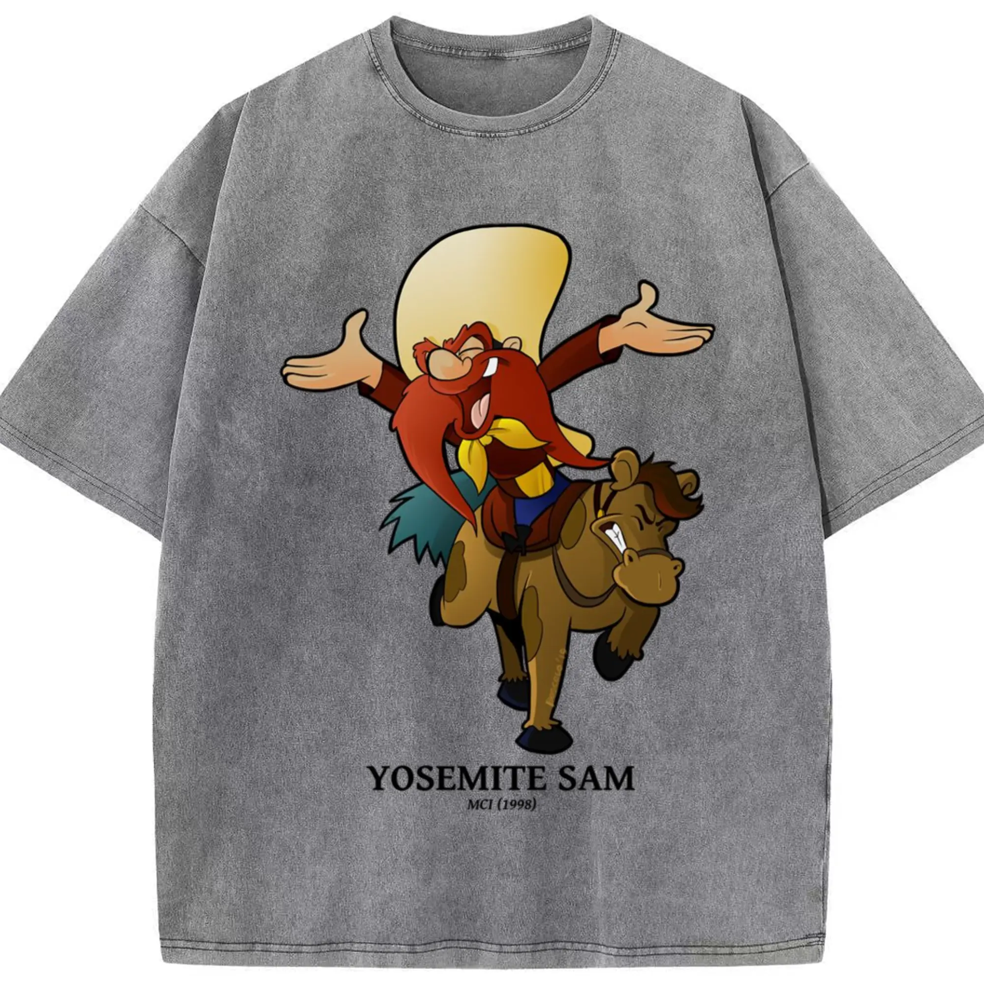 Yosemite sam tee shirts - Washed Vintage Look 230g Cotton Oversized T-Shirt With Front Heat Transfer Print – Soft, Lightweight, Stylish Fit – Comfortable Casual Wear For Sports & Everyday Use
