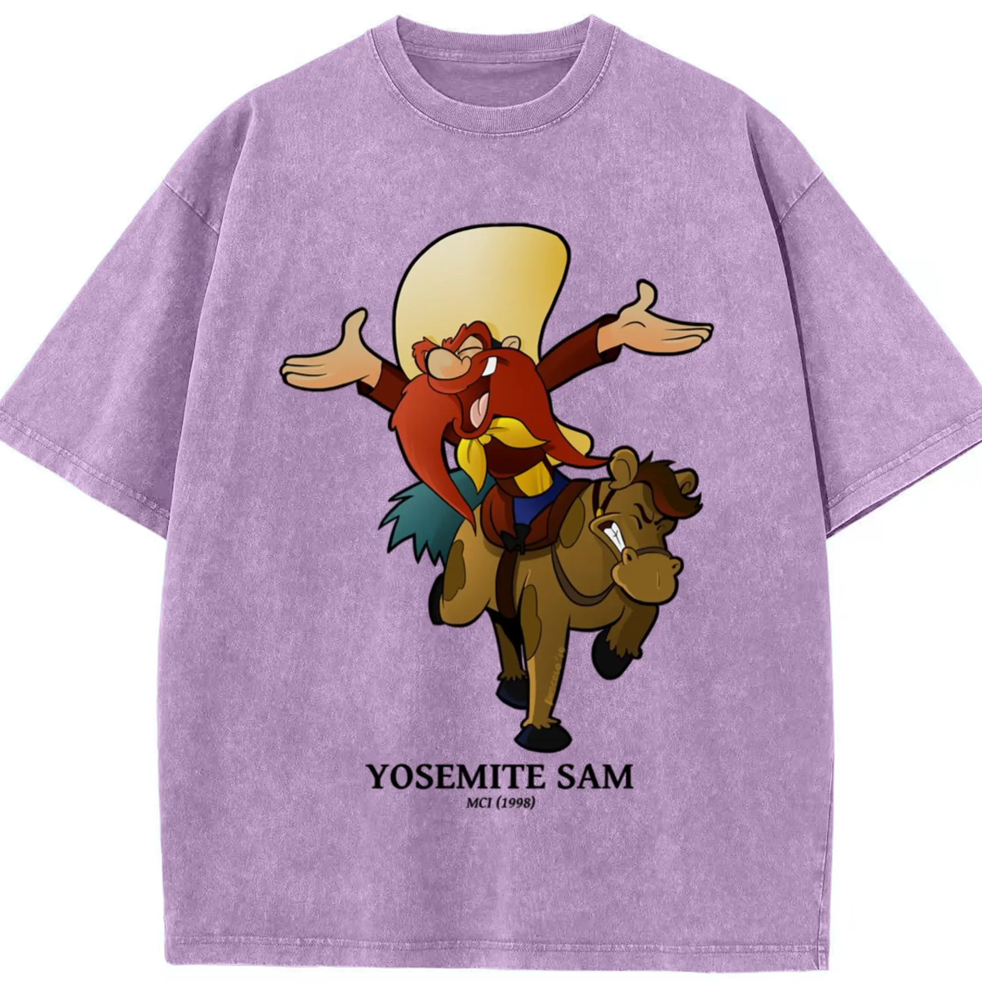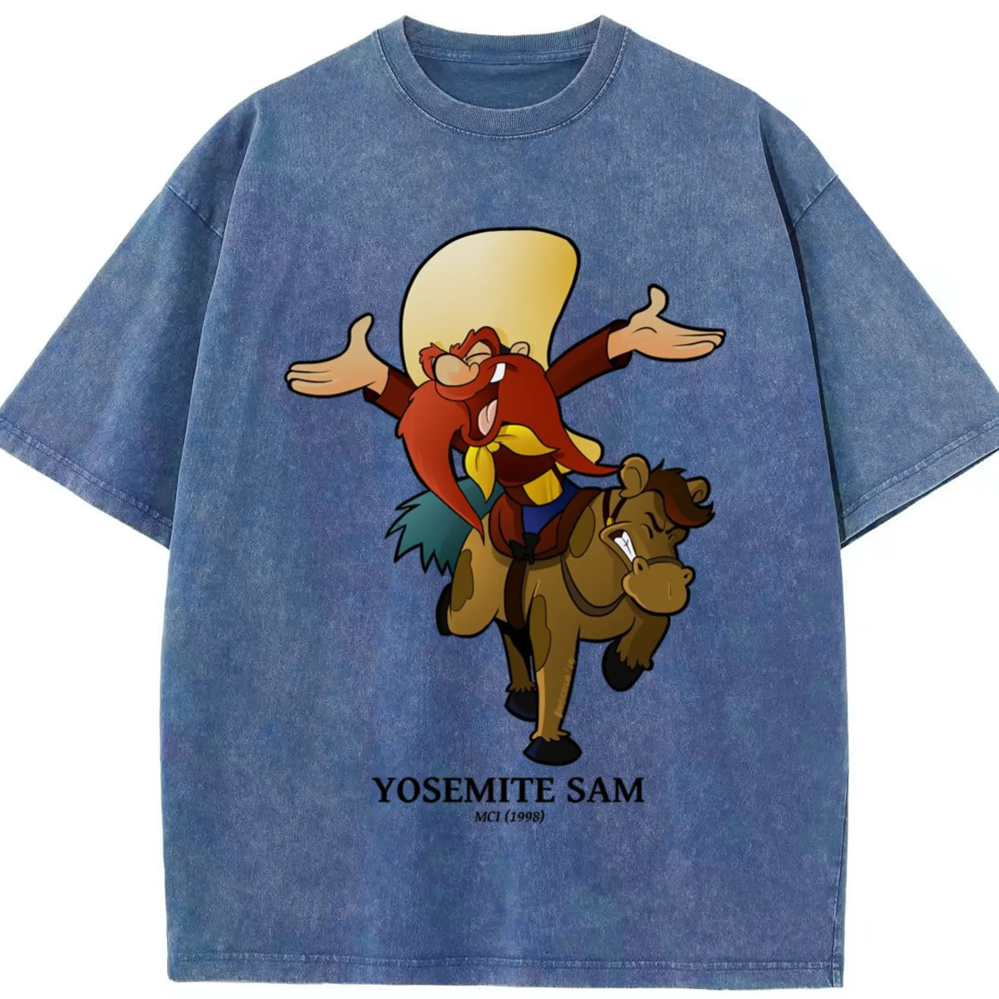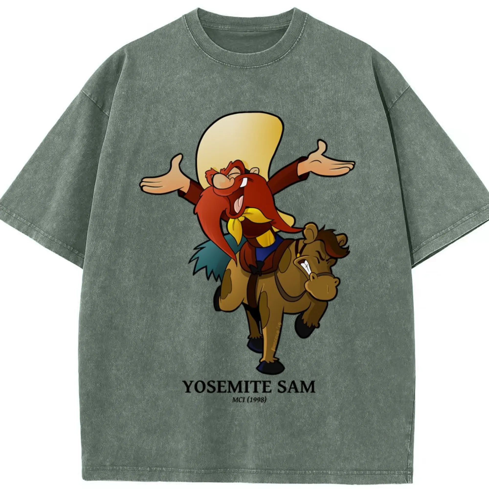 Yosemite sam tee shirts - Washed Vintage Look 230g Cotton Oversized T-Shirt With Front Heat Transfer Print – Soft, Lightweight, Stylish Fit – Comfortable Casual Wear For Sports & Everyday Use