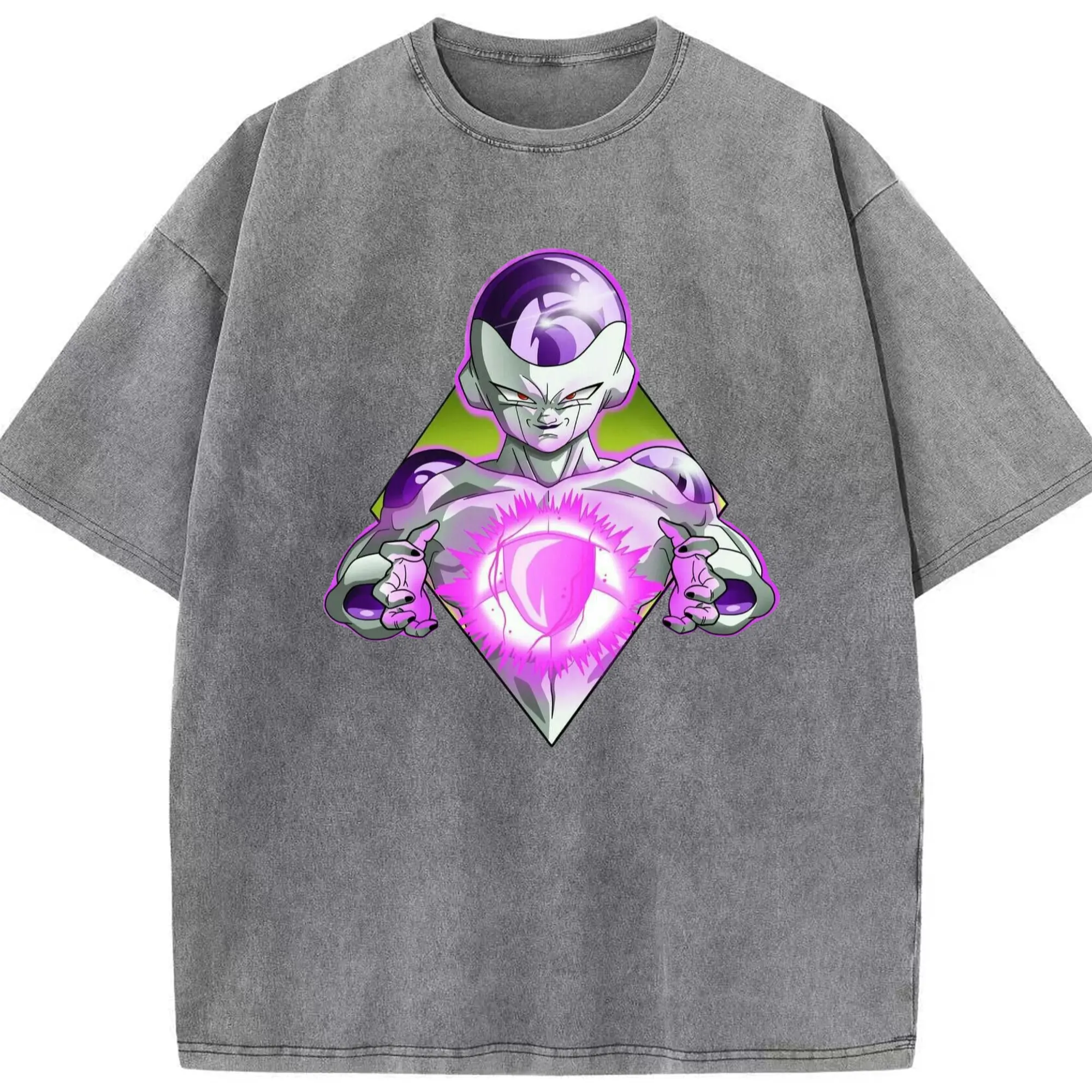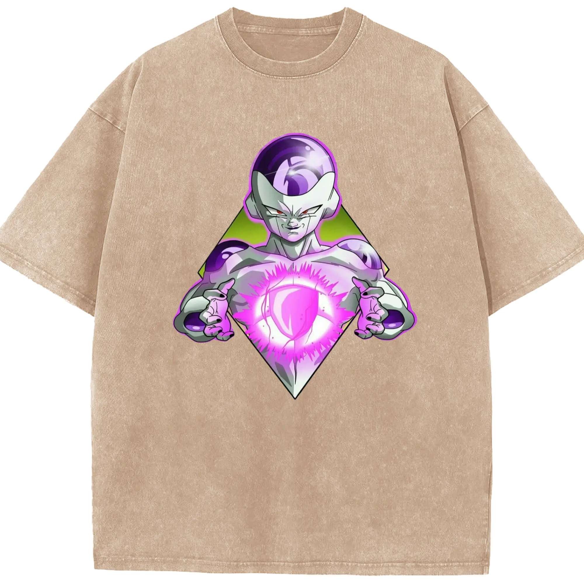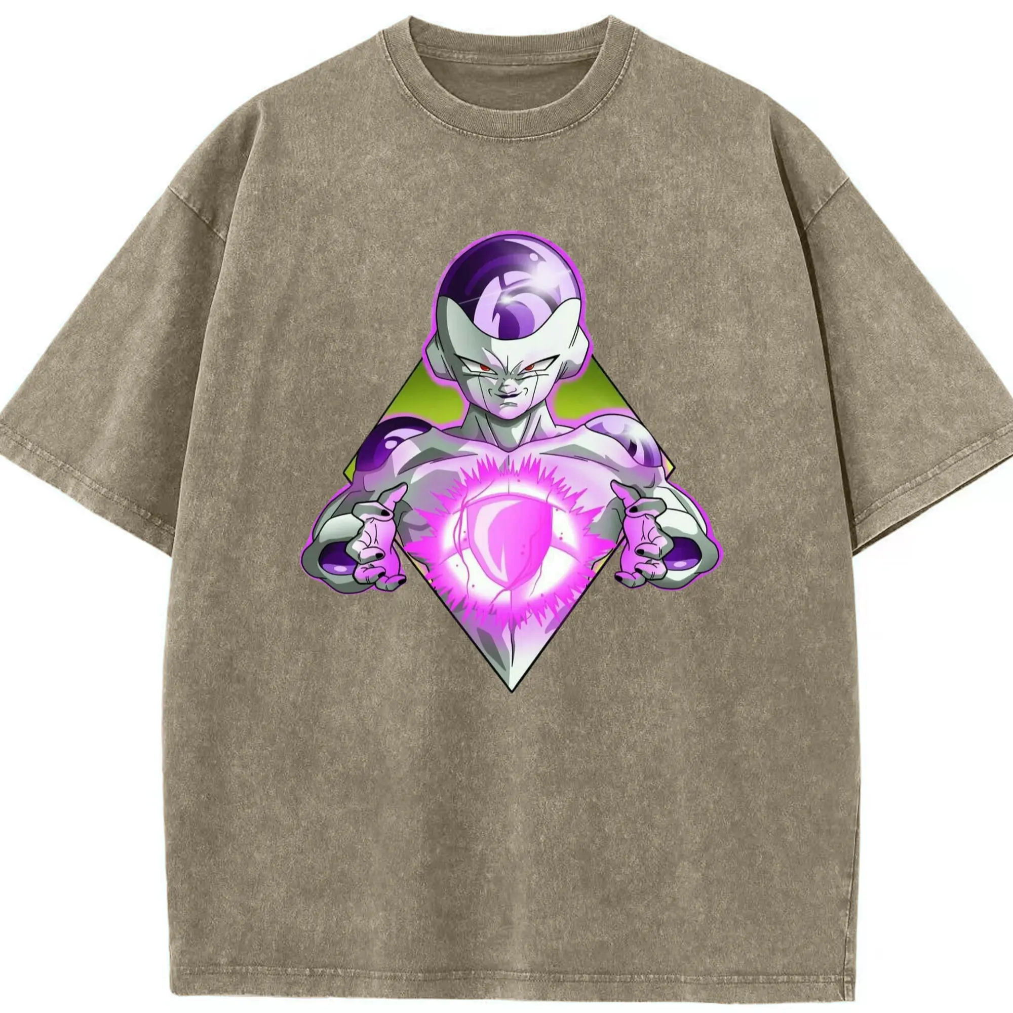 Youth Dragon Ball Freeza tee - Washed Vintage Look 230g Cotton Oversized T-Shirt With Front Heat Transfer Print – Soft, Lightweight, Stylish Fit – Comfortable Casual Wear For Sports & Everyday Use